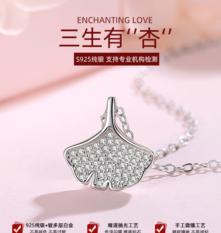 S925 plata esterlina ginkgo hoja collar mujer plata esterlina popular Red rojo elegante simple clavícula cadena ins viento frío para novia