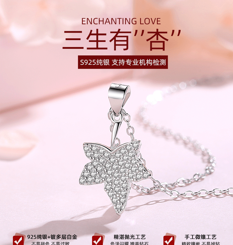 S925 plata esterlina ginkgo hoja collar mujer clavícula cadena online celebridad colgante hoja de arce regalo de cumpleaños para novia regalo de San Valentín