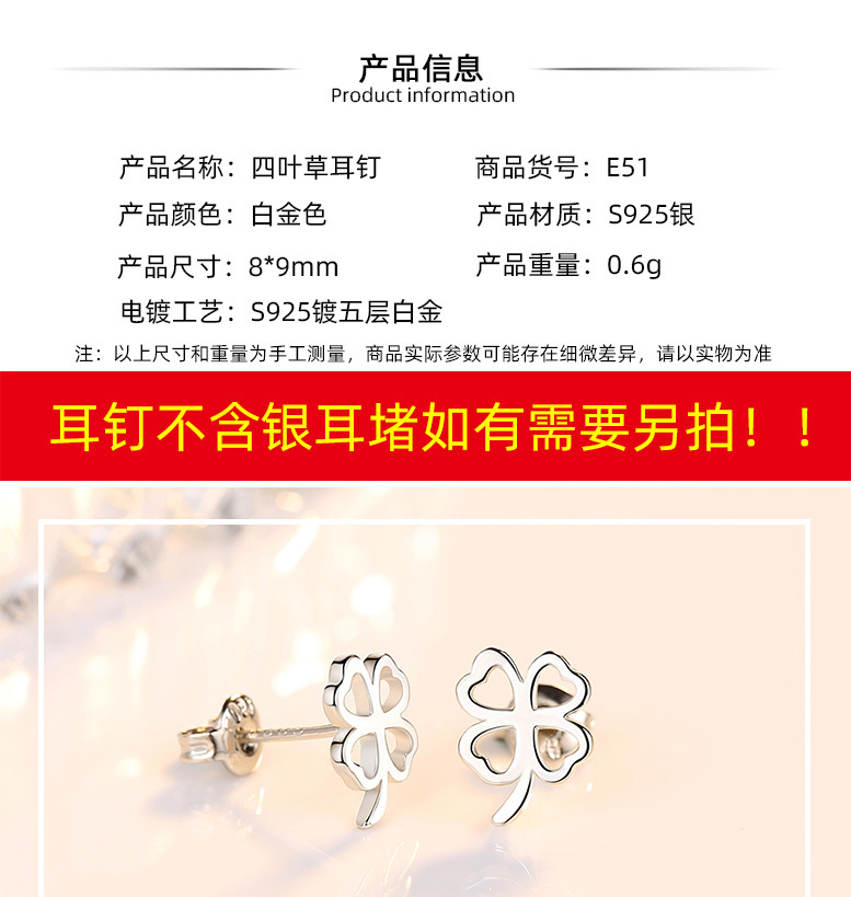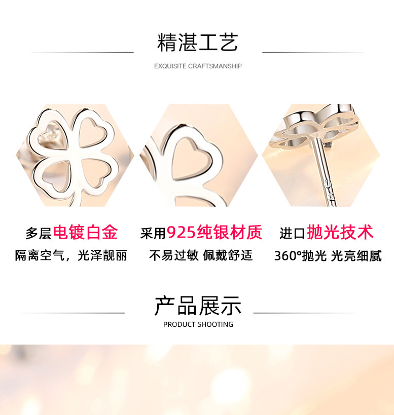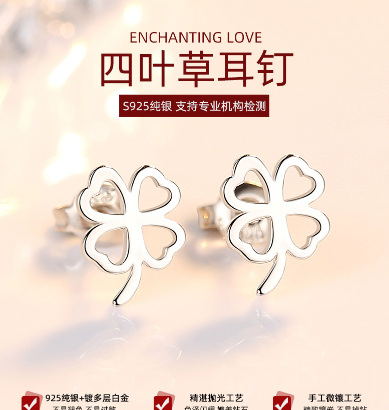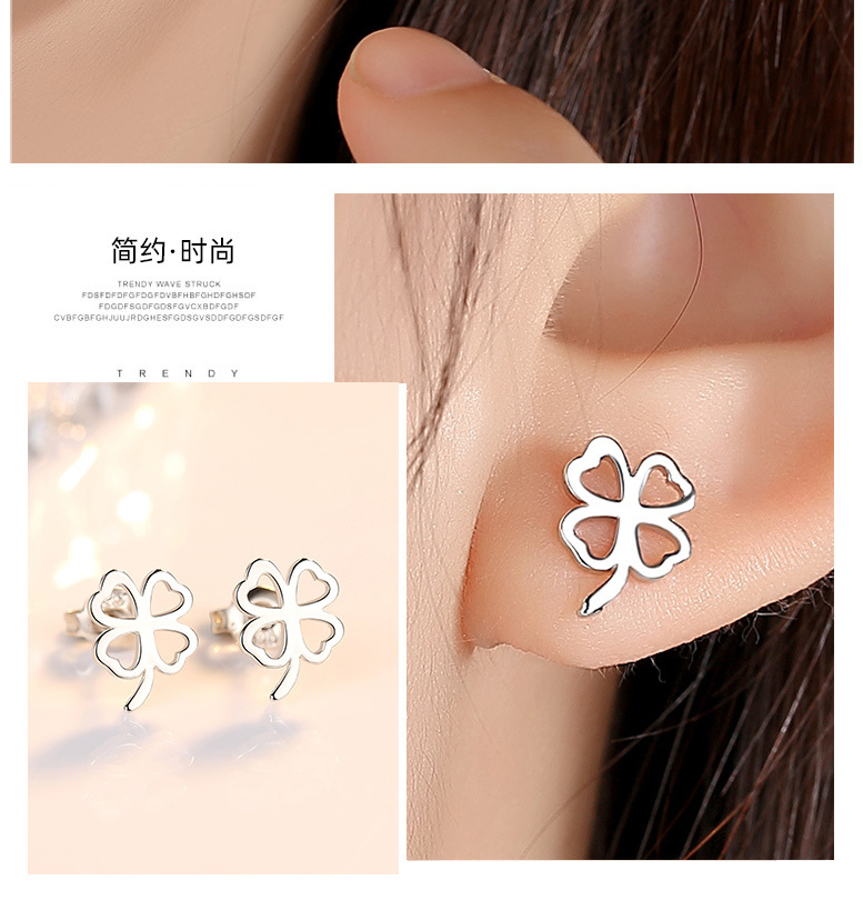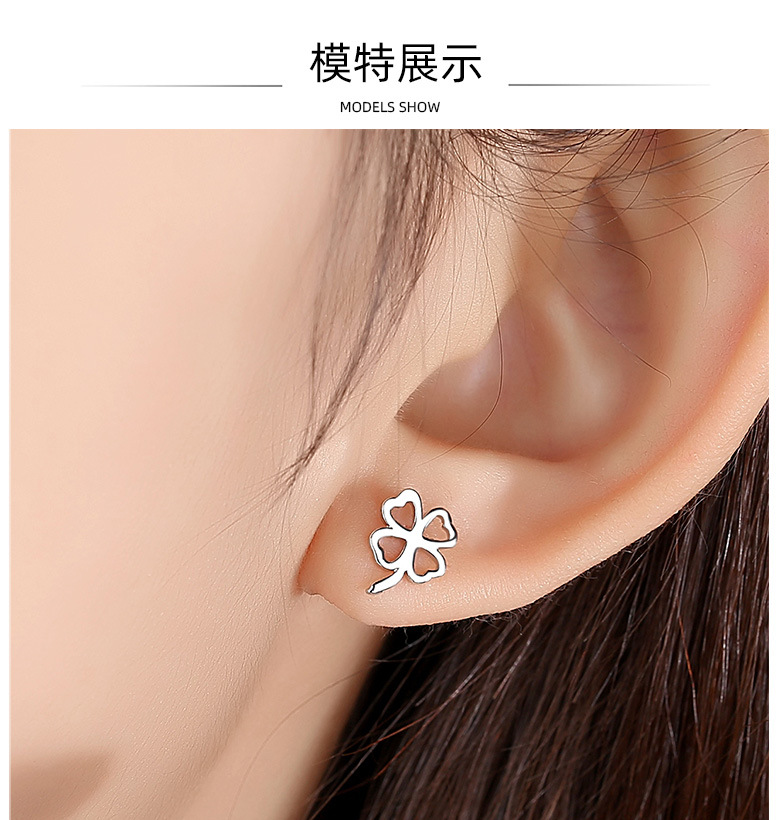 925 trébol de plata esterlina personalizada Stud pendientes para niñas elegante japonés y coreano pequeños pendientes huecos simples suerte hierba regalo