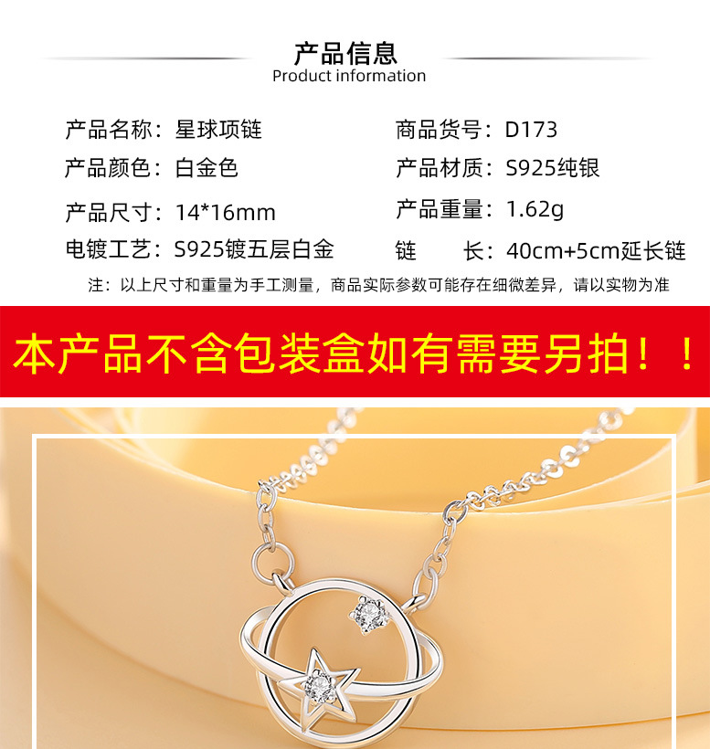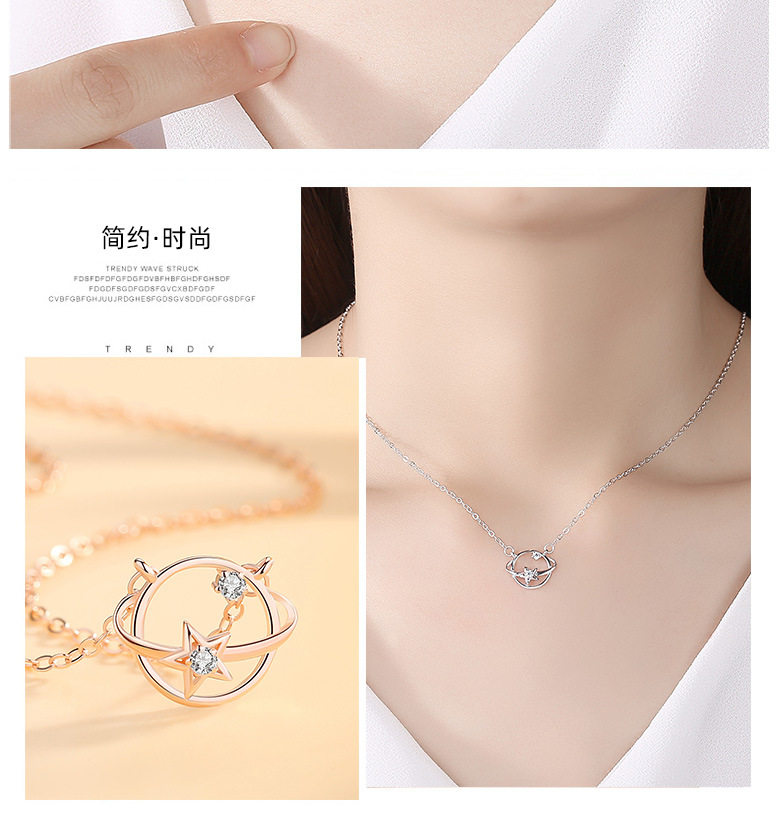 S925 plata esterlina planeta universo collar mujer clavícula cadena estilo coreano estudiante personalidad Mori simple Internet celebridad joyería