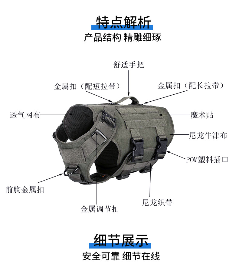 Transfronterizo para mascotas mediano y grande militar perro táctico correa de pecho correa de perro Cadena de perro al por mayor