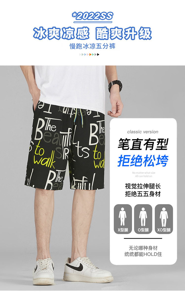 Pantalones de playa de verano, pantalones cortos sueltos para hombres, pantalones grandes de moda, pantalones casuales de hip-hop ligeros, pantalones de cinco puntos de secado rápido