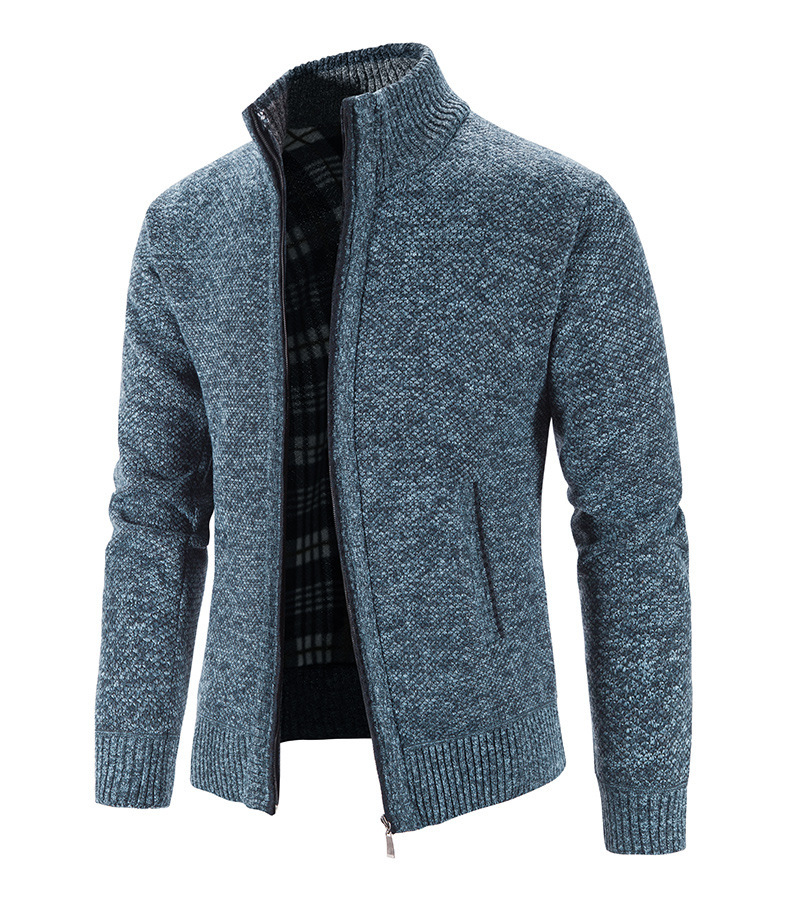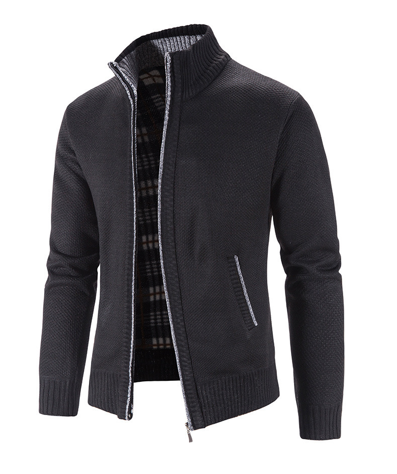 Excluido para una pieza de comercio exterior, cardigan de punto de otoño e invierno para hombres europeos y americanos, suéter grueso casual de gran tamaño con cuello alto abierto