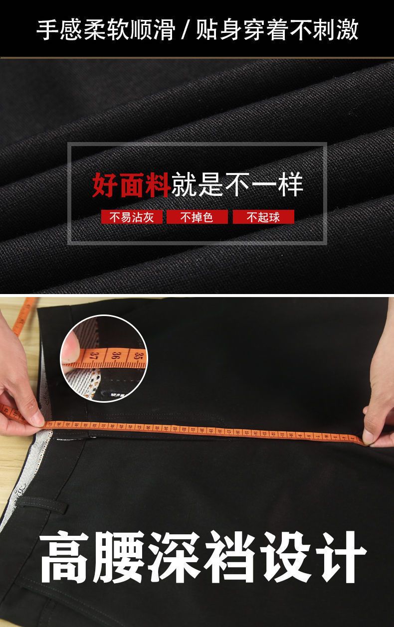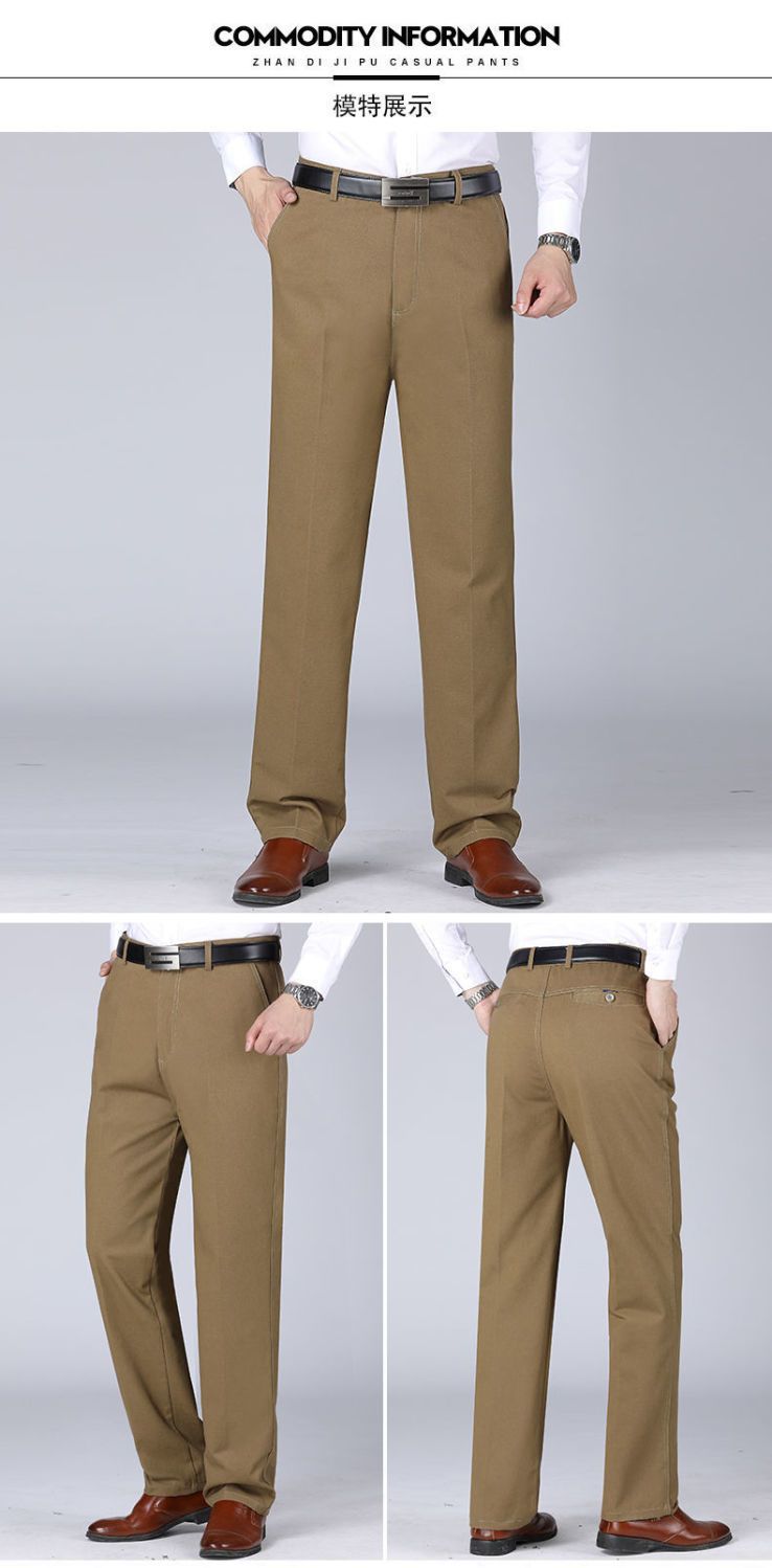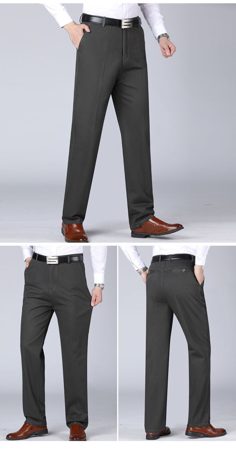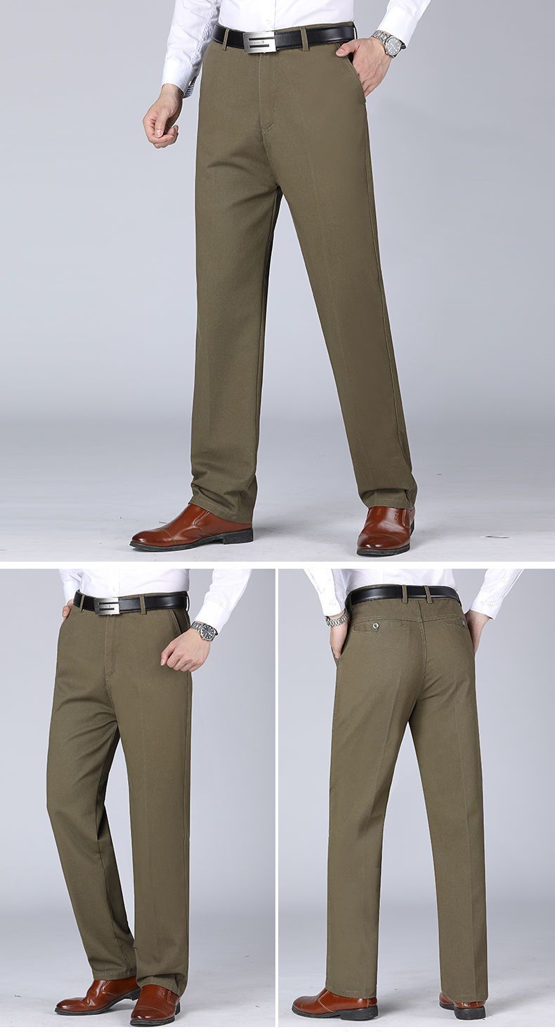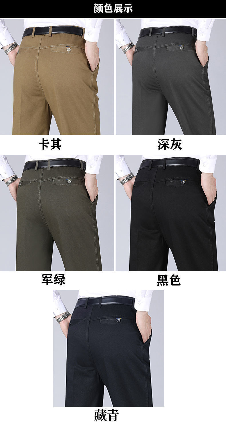 Otoño e invierno pantalones casuales gruesos de algodón para hombres cintura alta recta de mediana edad y ancianos sueltos de grado profundo papá desgaste pantalones largos de negocios