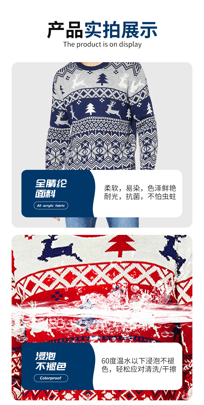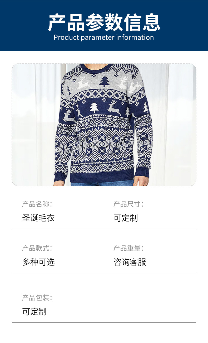 Suéter de punto americano retro personalizado ambiente navideño logo envolvente cuello redondo suéter de punto a rayas geométricas