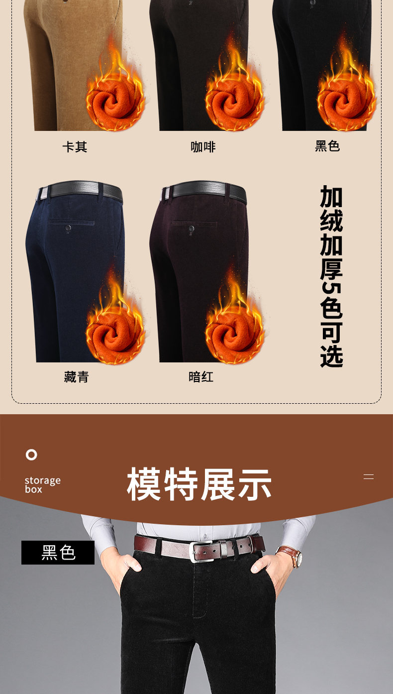 Pantalones casuales de pana gruesa con forro polar cintura alta entrepierna profunda pantalones de pana Hombre Pantalones casuales sueltos papá de mediana edad y anciano