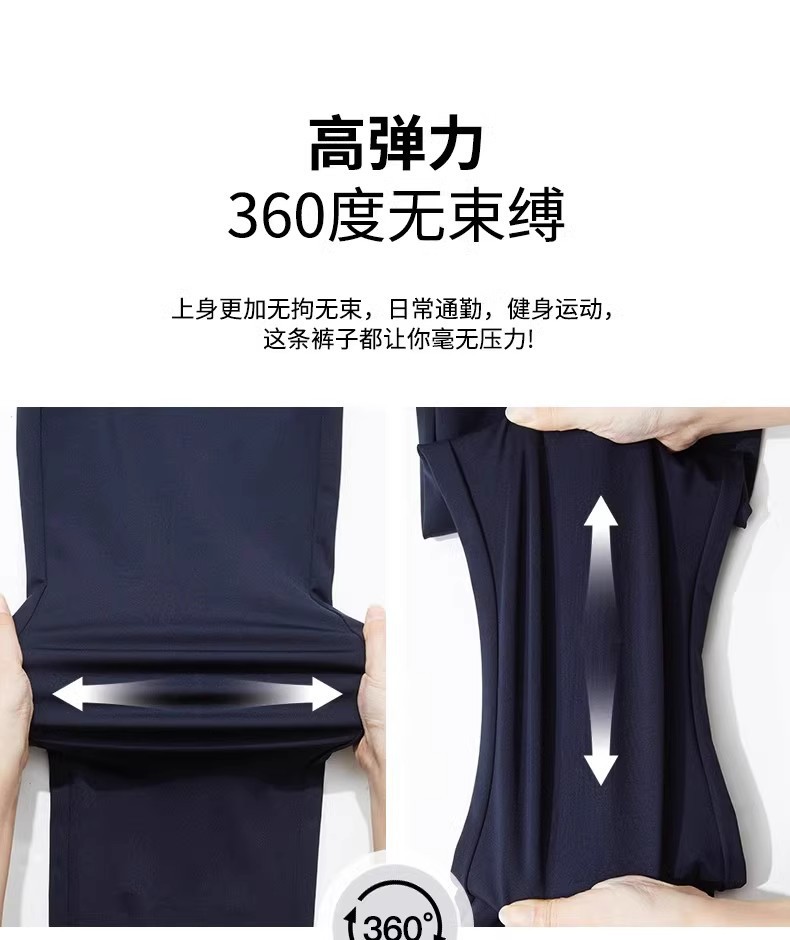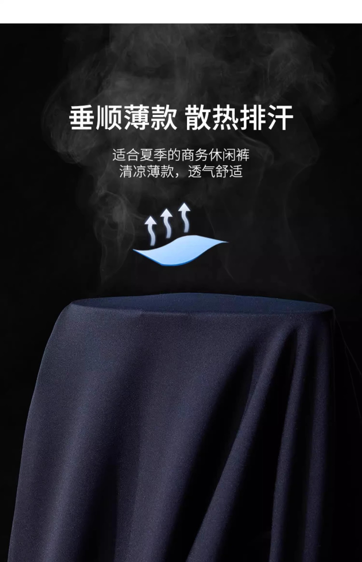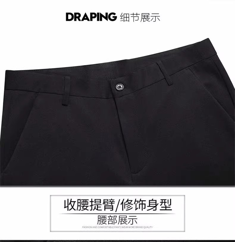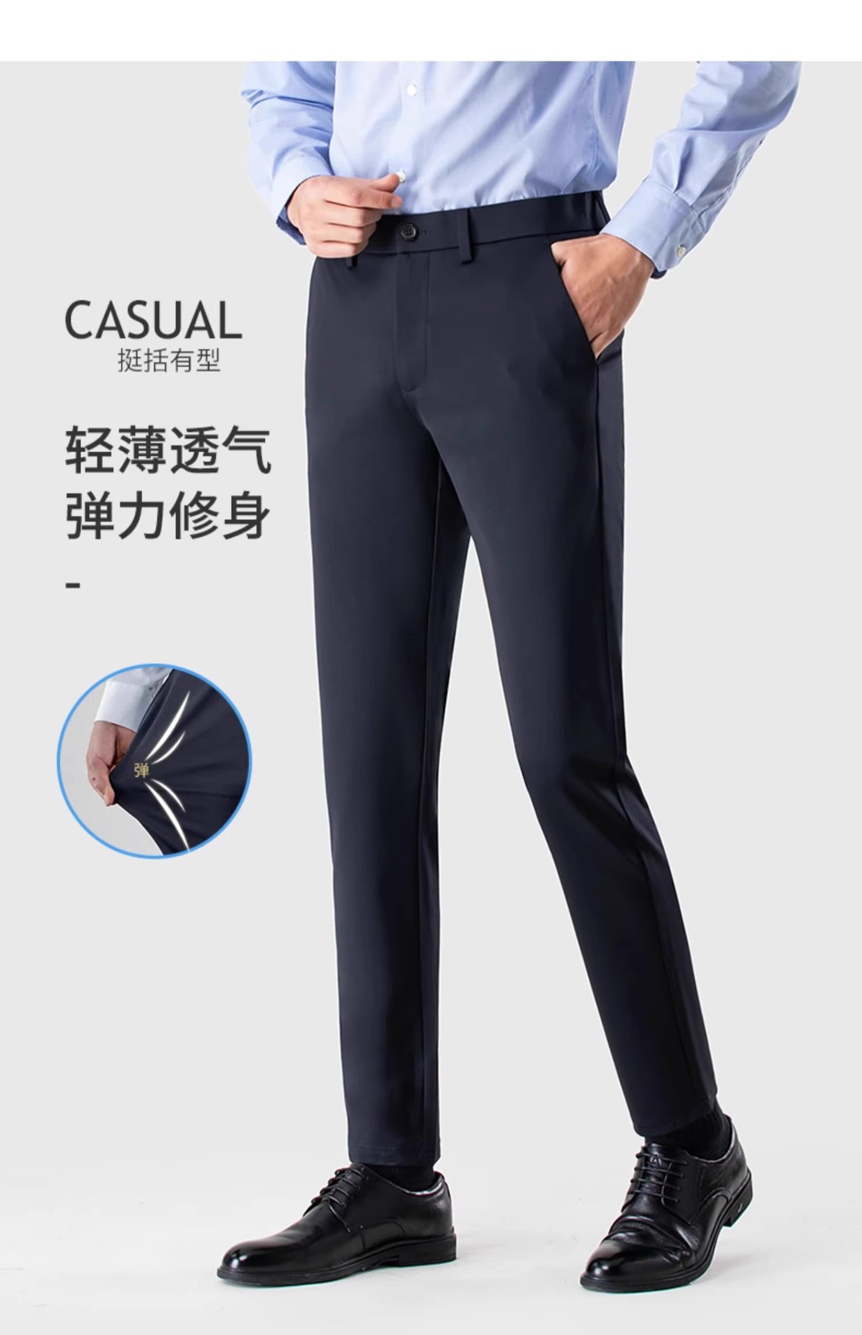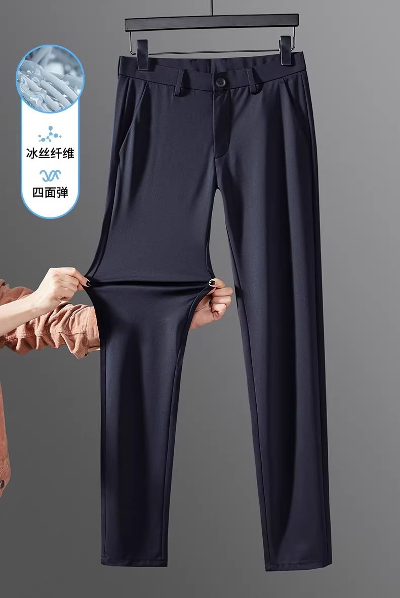 Una pieza de envío al por mayor pantalones sin planchar para hombres verano nuevo estilo de seda de hielo pantalones casuales elásticos para hombres rectos delgados negros