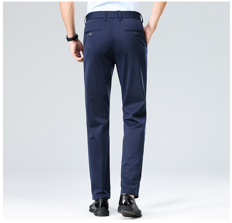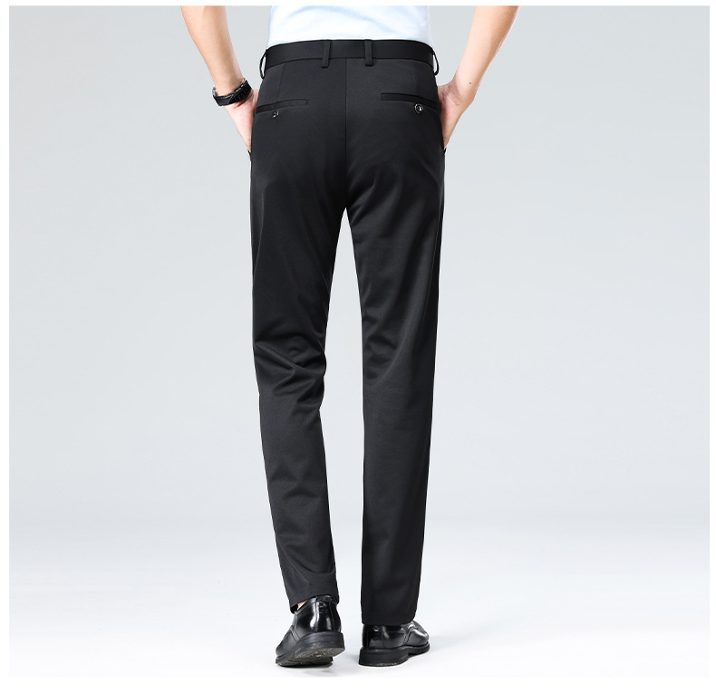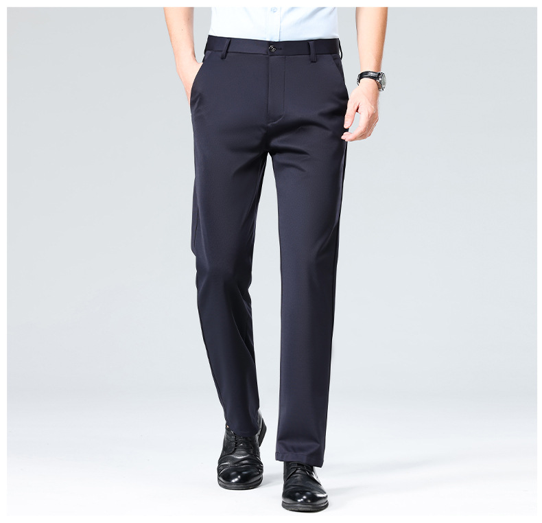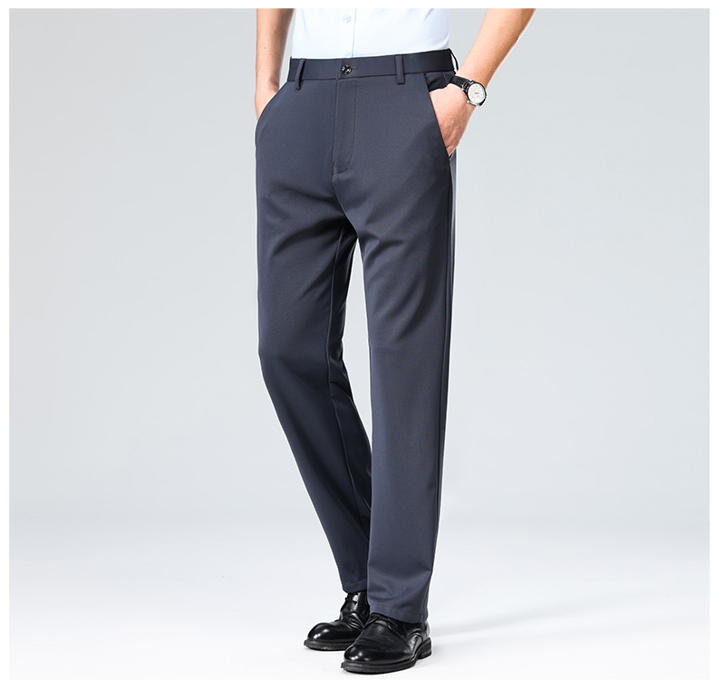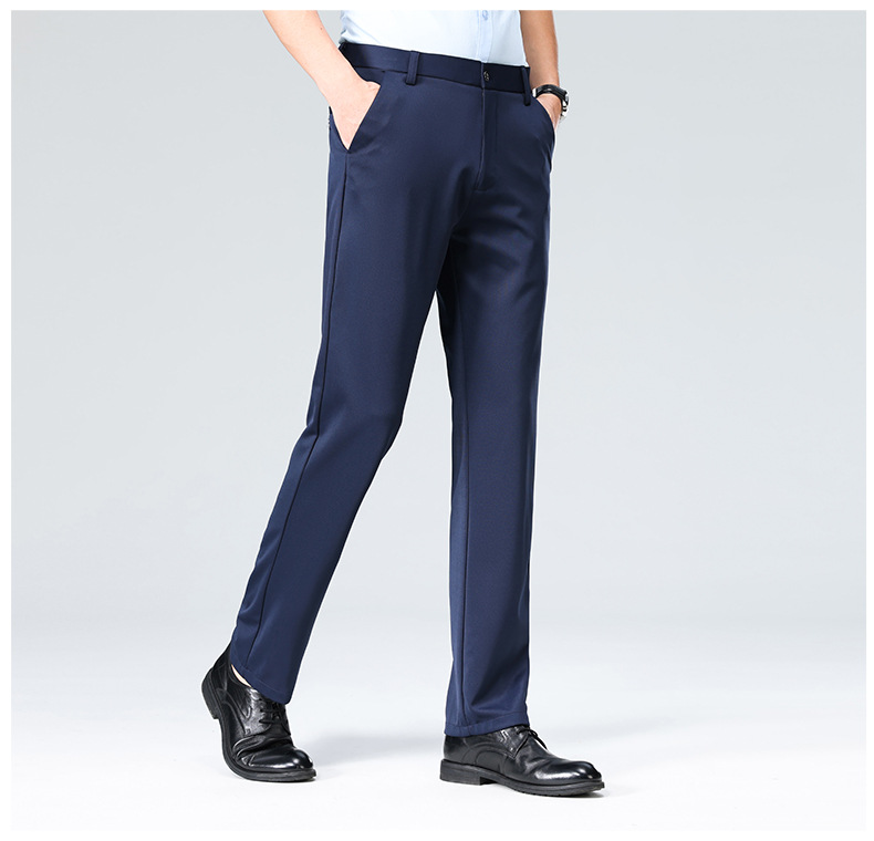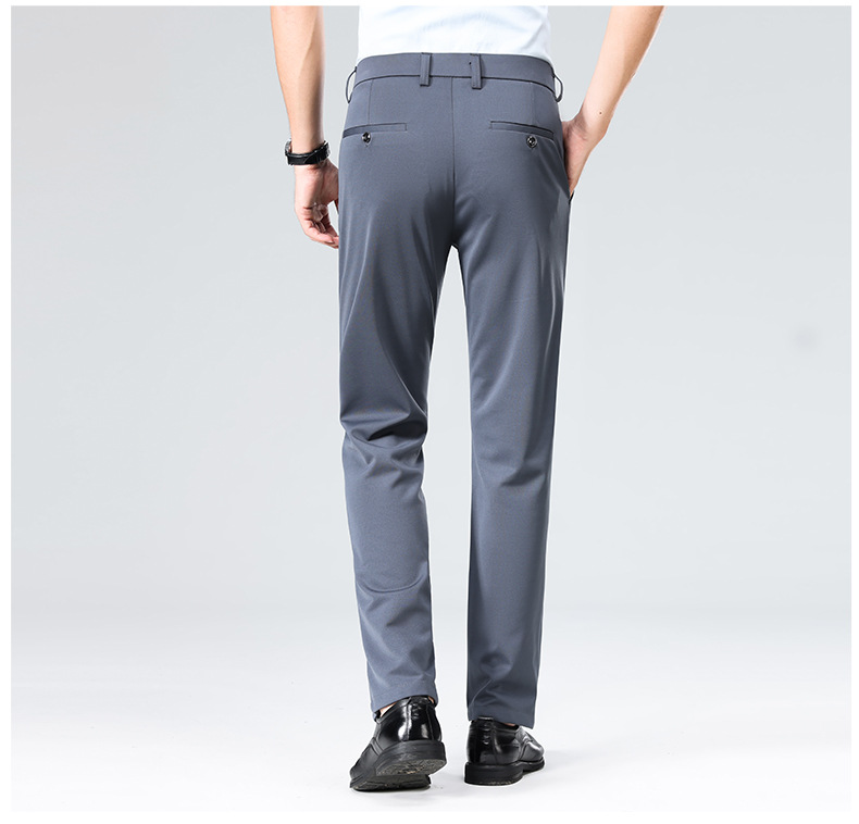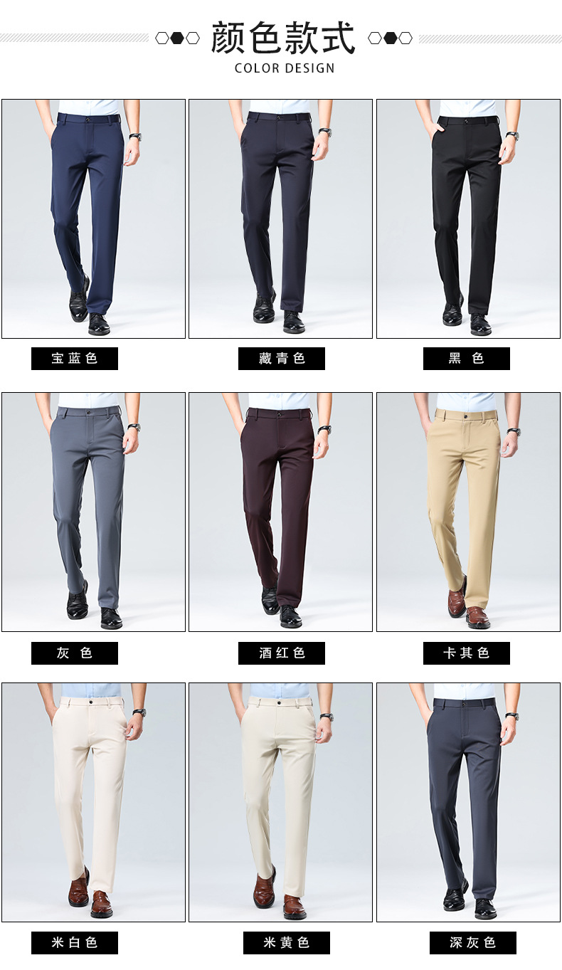 Suministro directo de fábrica, pantalones casuales para hombres elásticos de cuatro caras sin planchar, pantalones de negocios rectos delgados de seda de hielo de verano para hombres