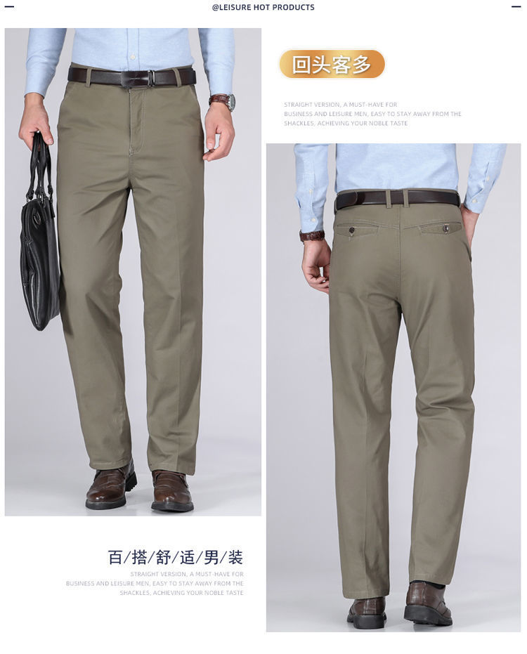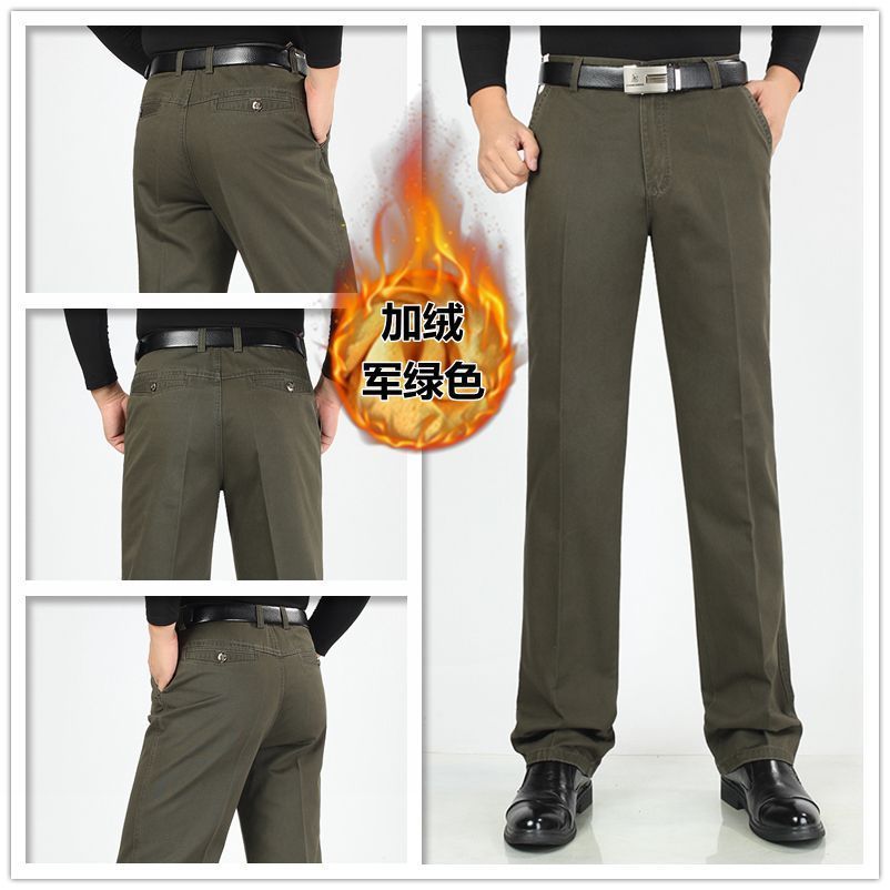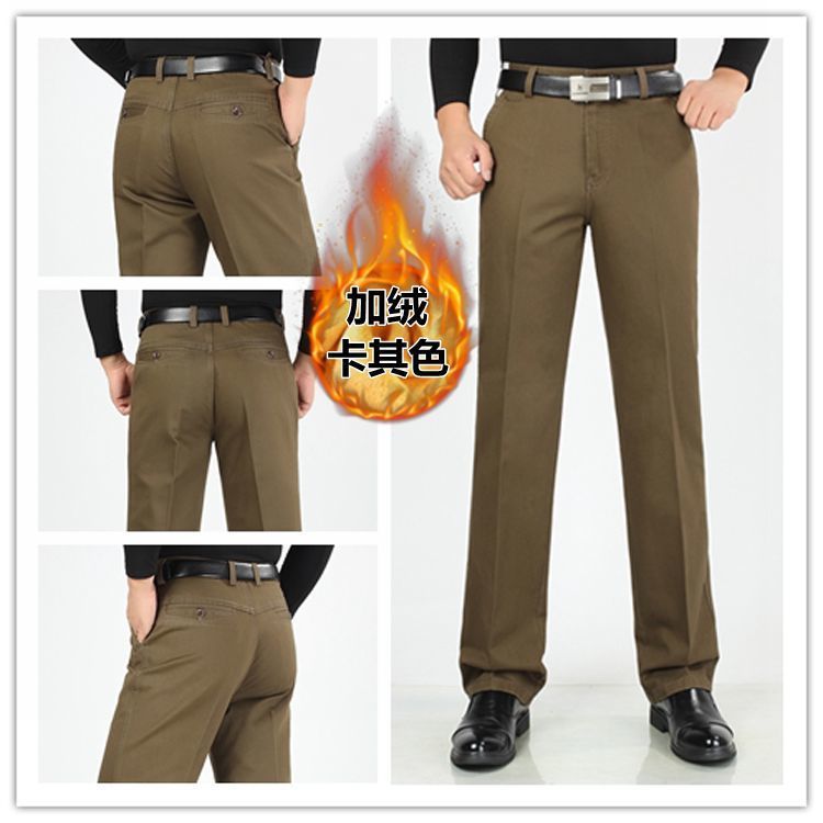 2 pantalones casuales de algodón de otoño e invierno para hombres de mediana edad y ancianos