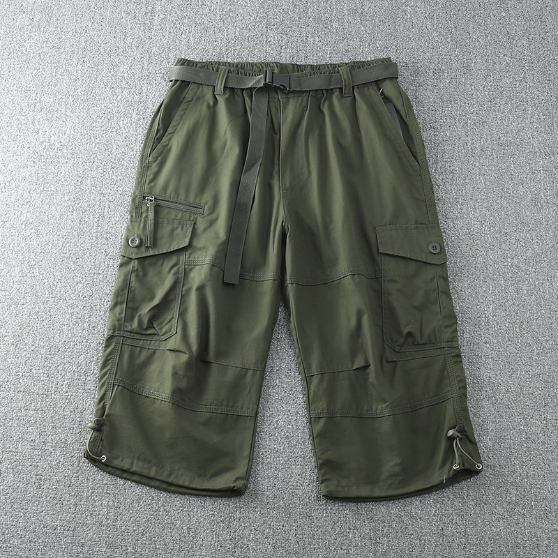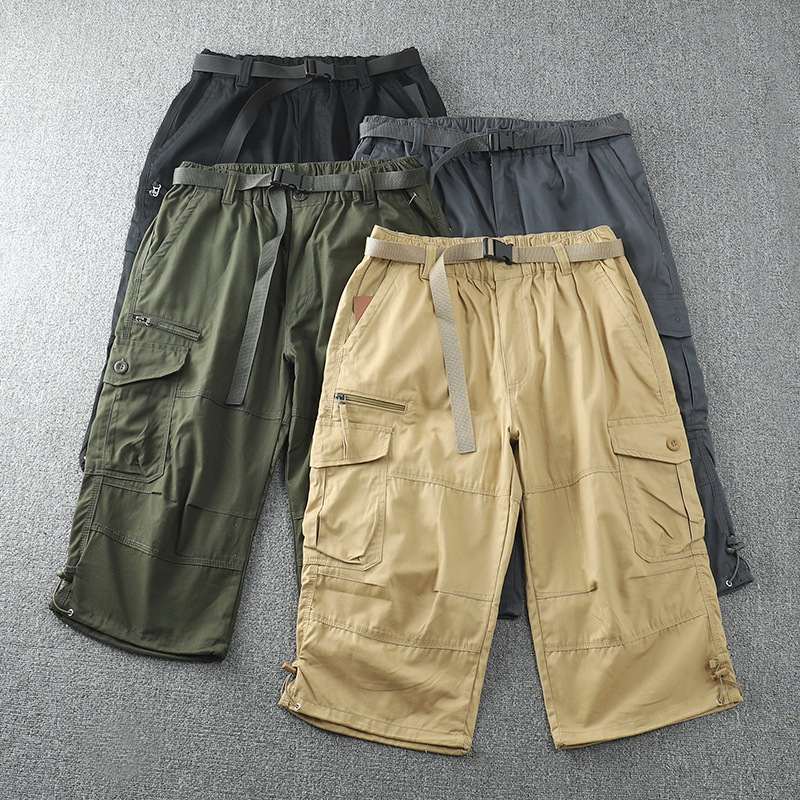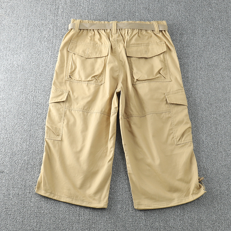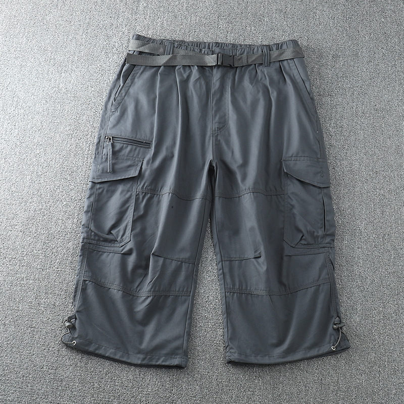 Exportación de comercio exterior pantalones recortados hombres sueltos más gordos de talla grande monos pantalones casuales americanos de algodón puro estilo fino de verano