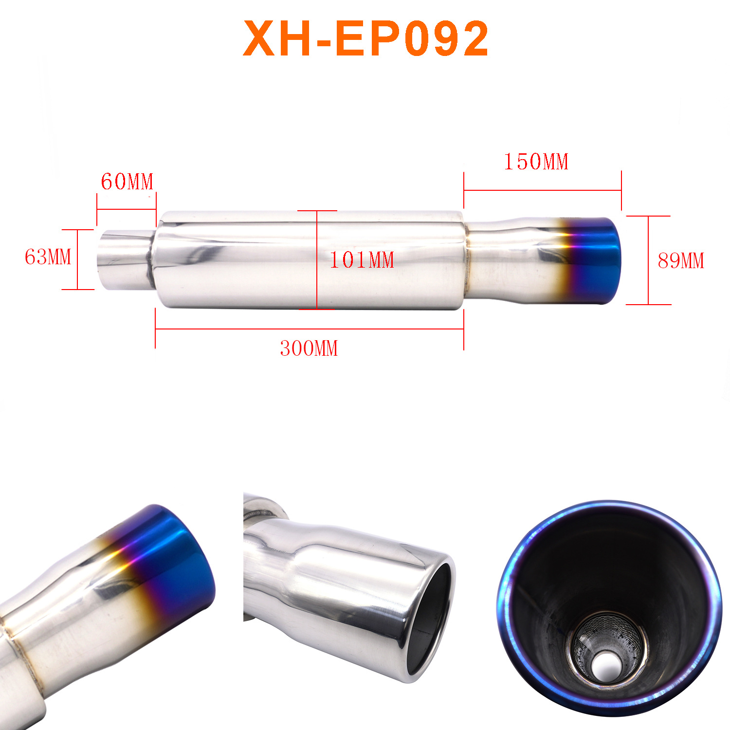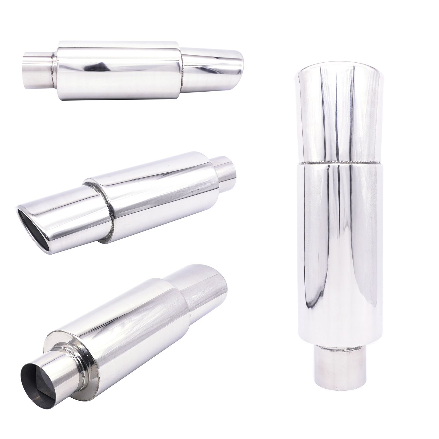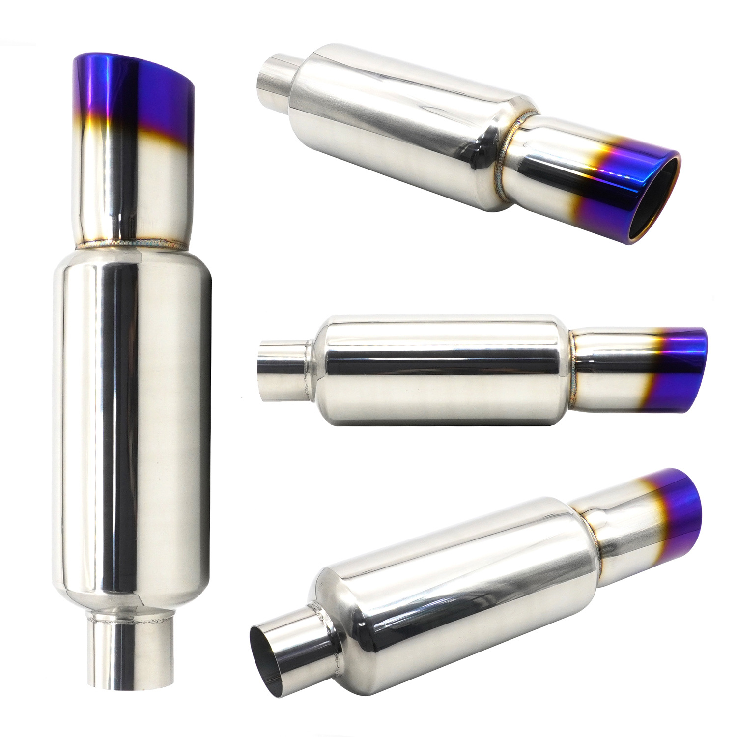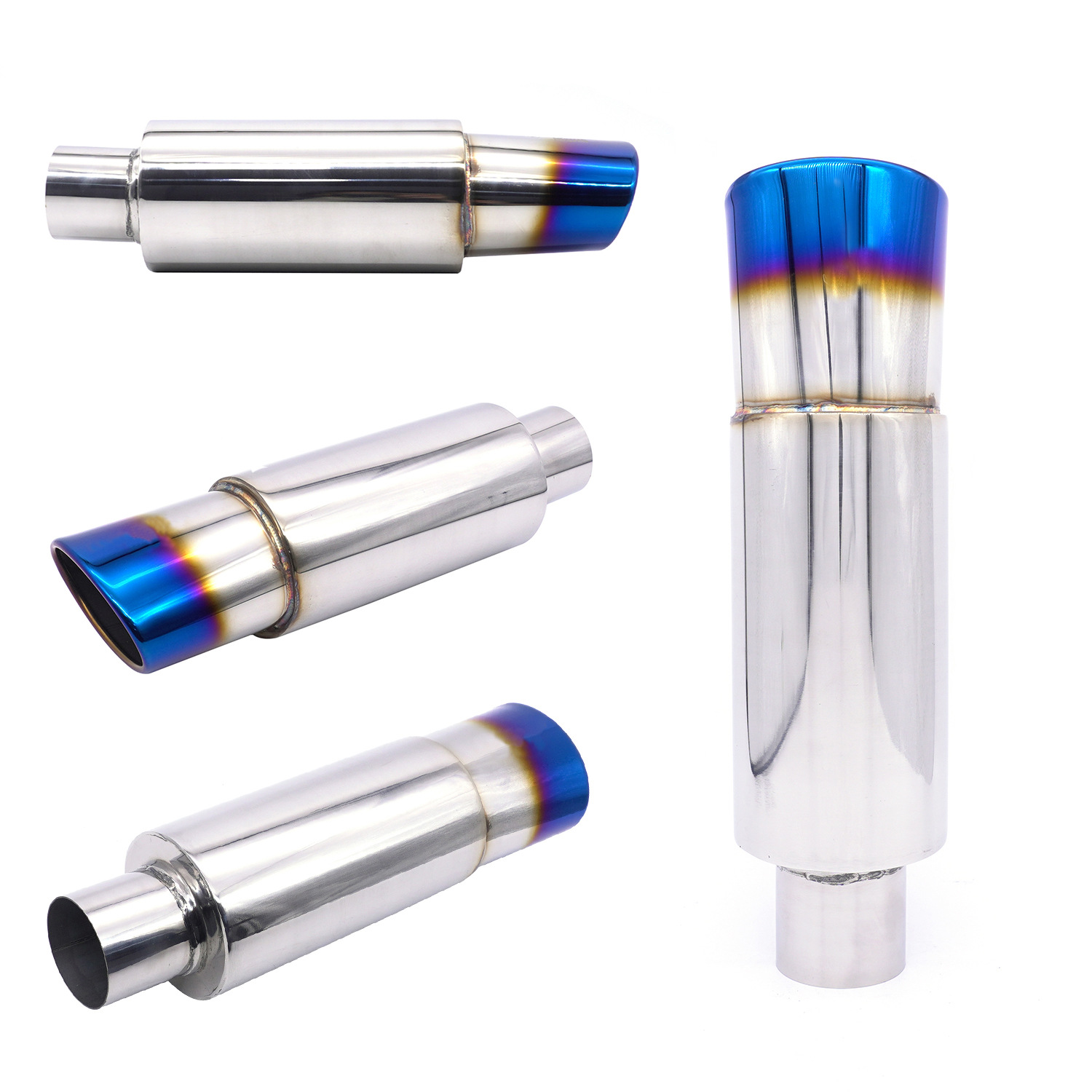 Modificación del coche tubo de escape tambor de cola de acero inoxidable tambor redondo tambor de sonido fila recta Universal con Garganta de cola chapado azul para hornear Azul Plata