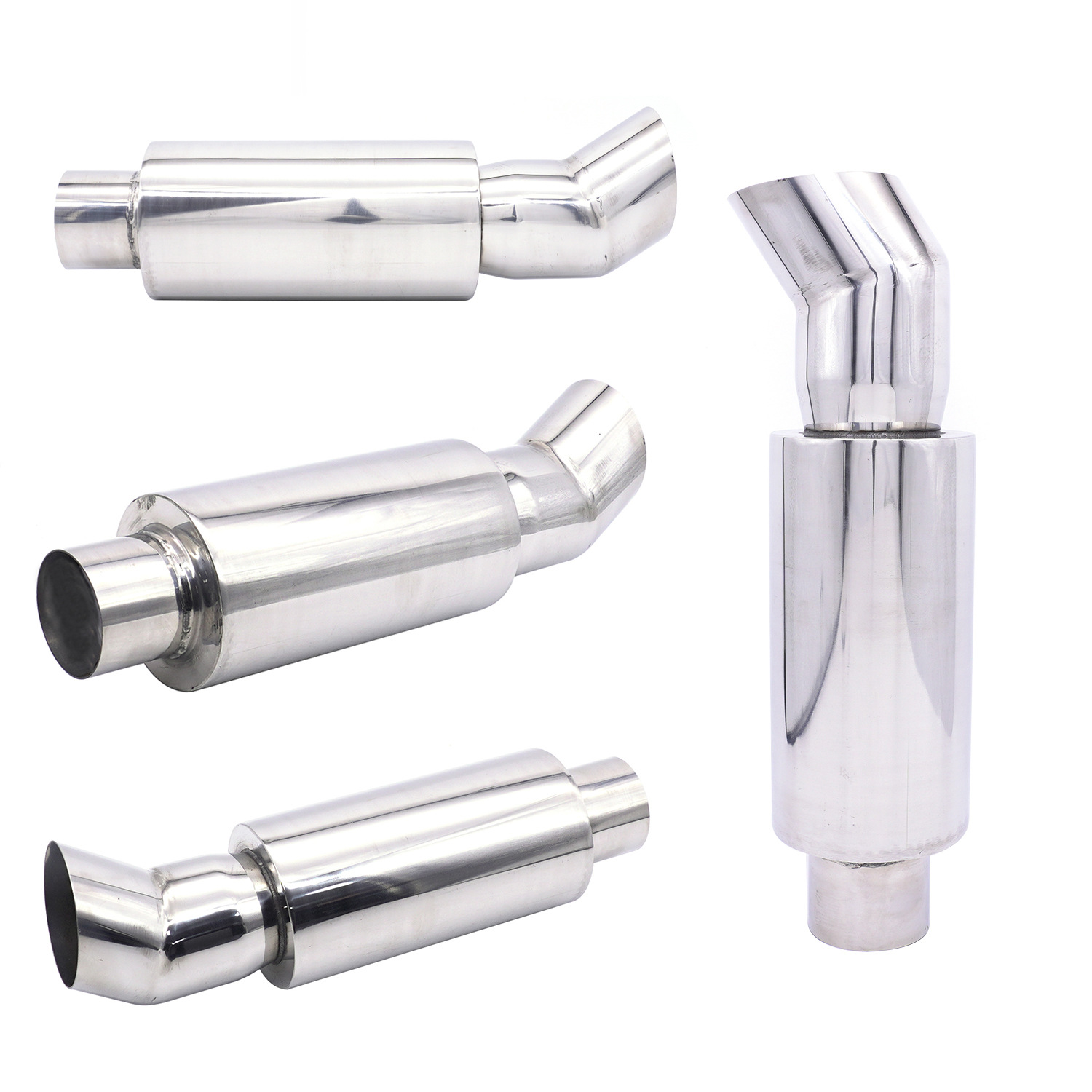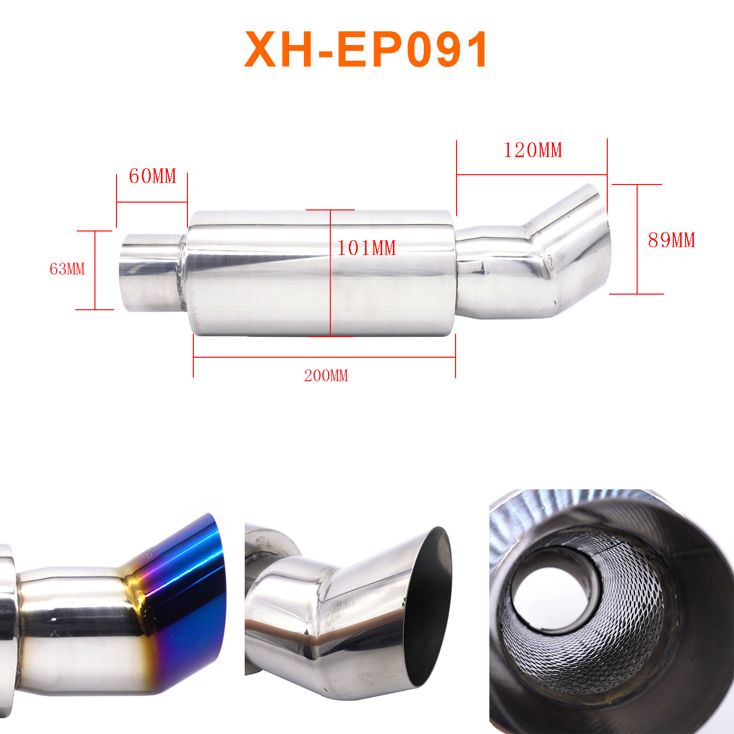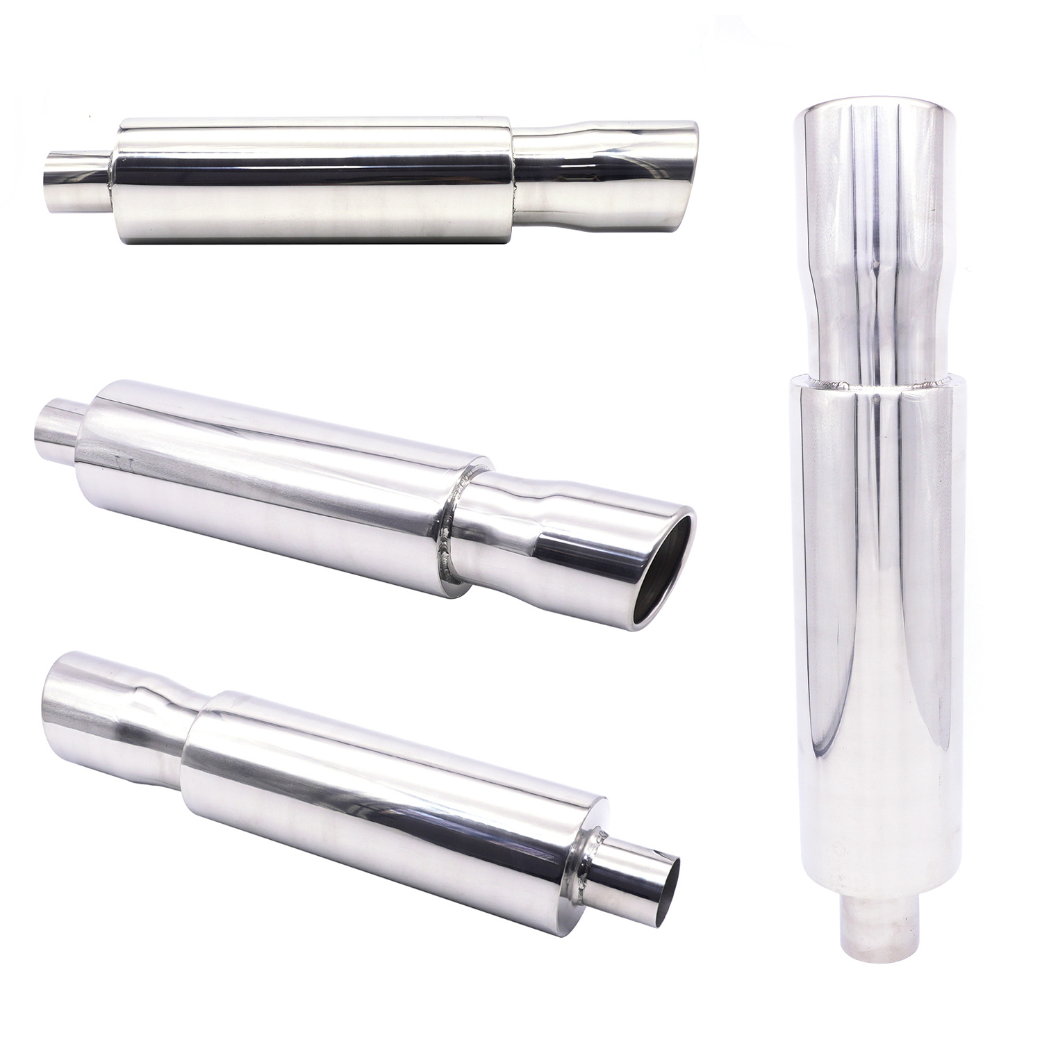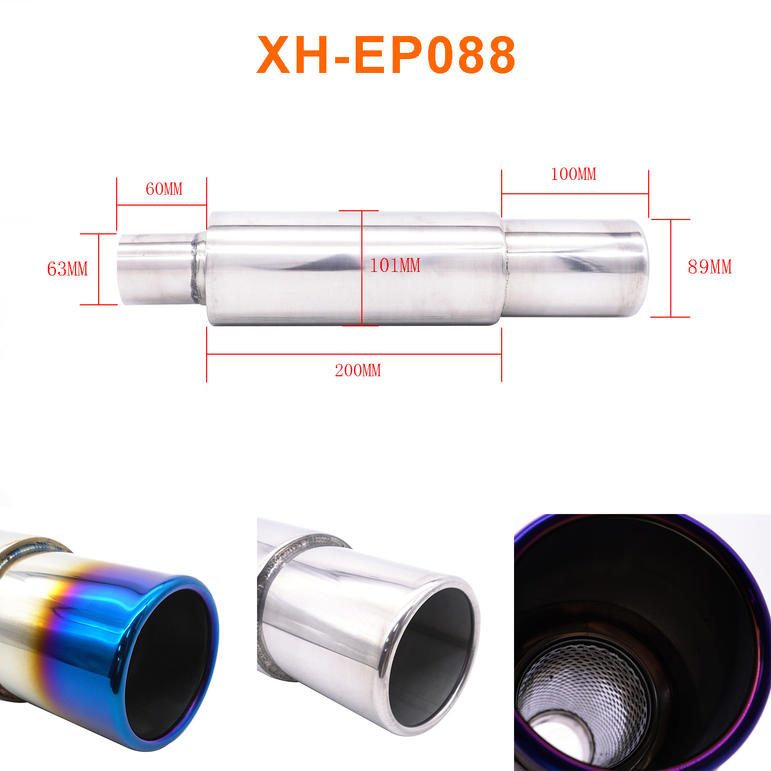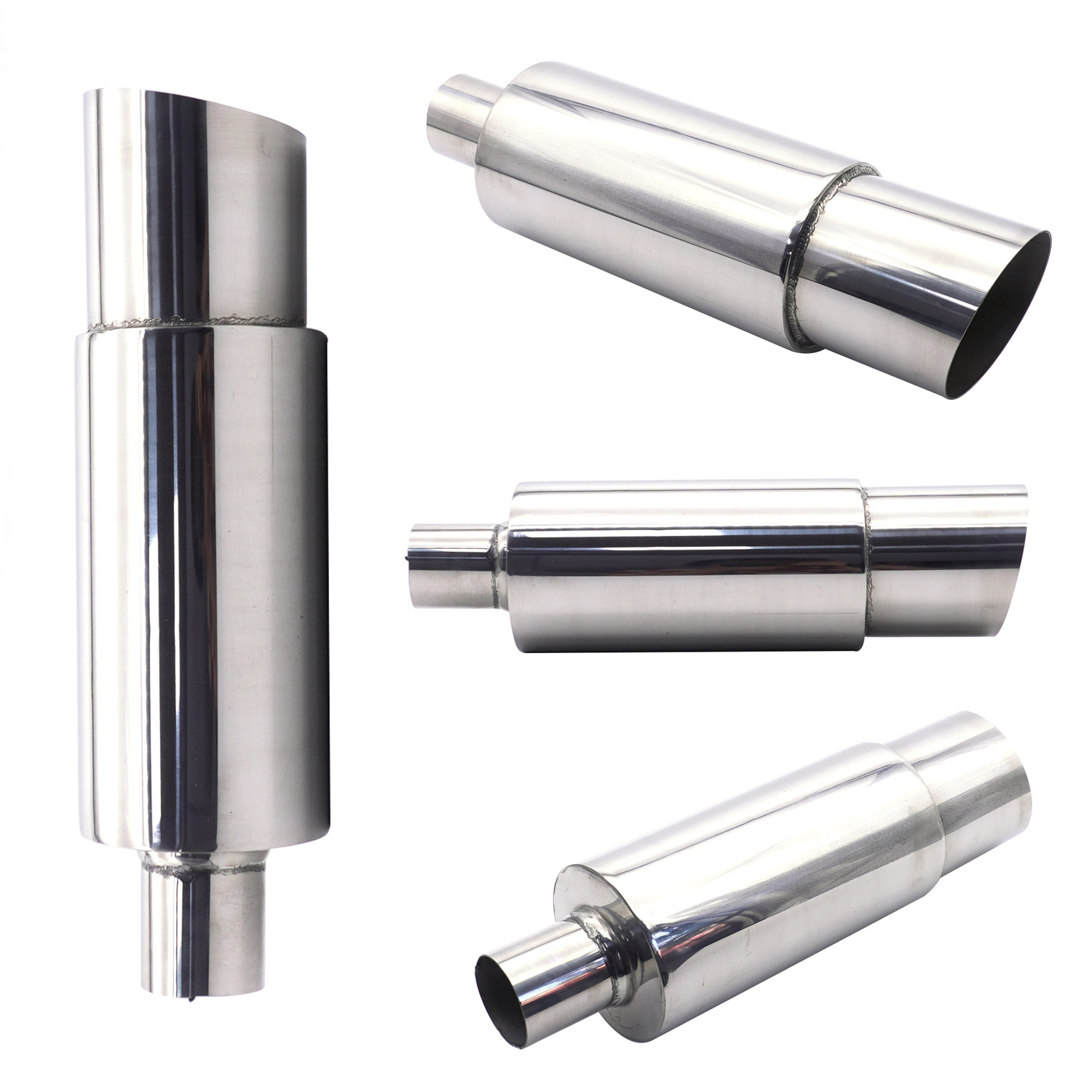 Modificación del coche tubo de escape tambor de cola de acero inoxidable tambor redondo tambor de sonido fila recta Universal con Garganta de cola chapado azul para hornear Azul Plata