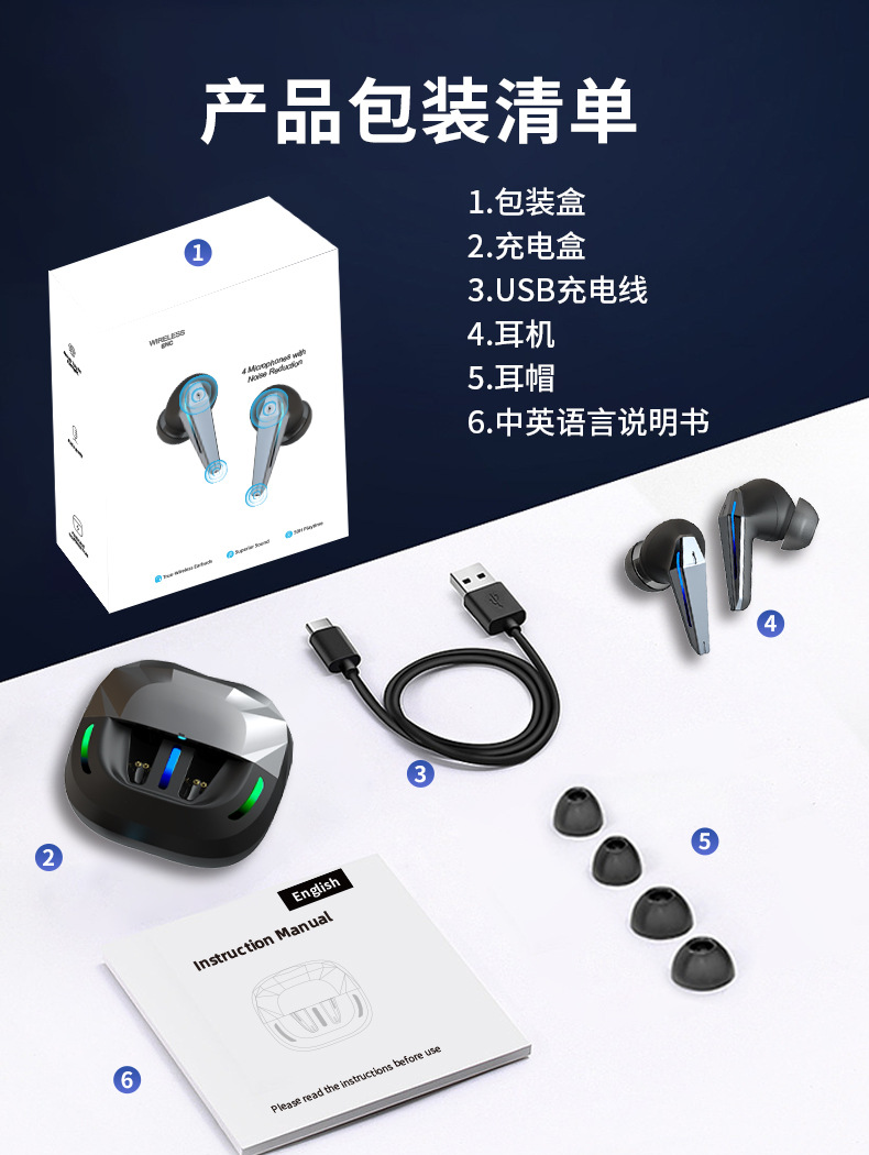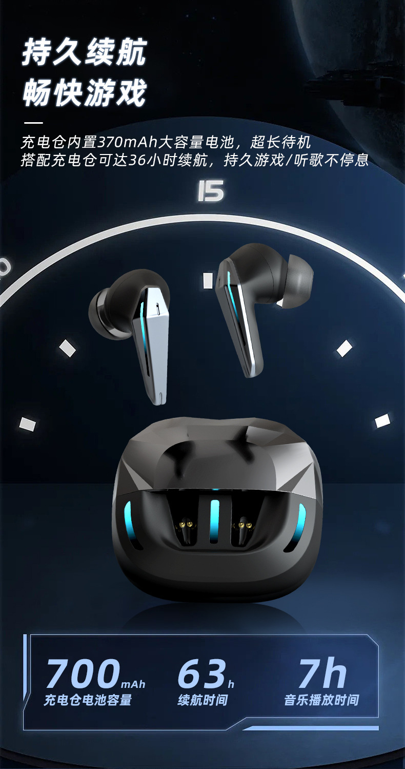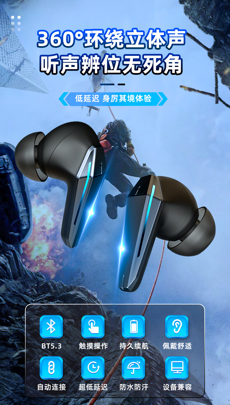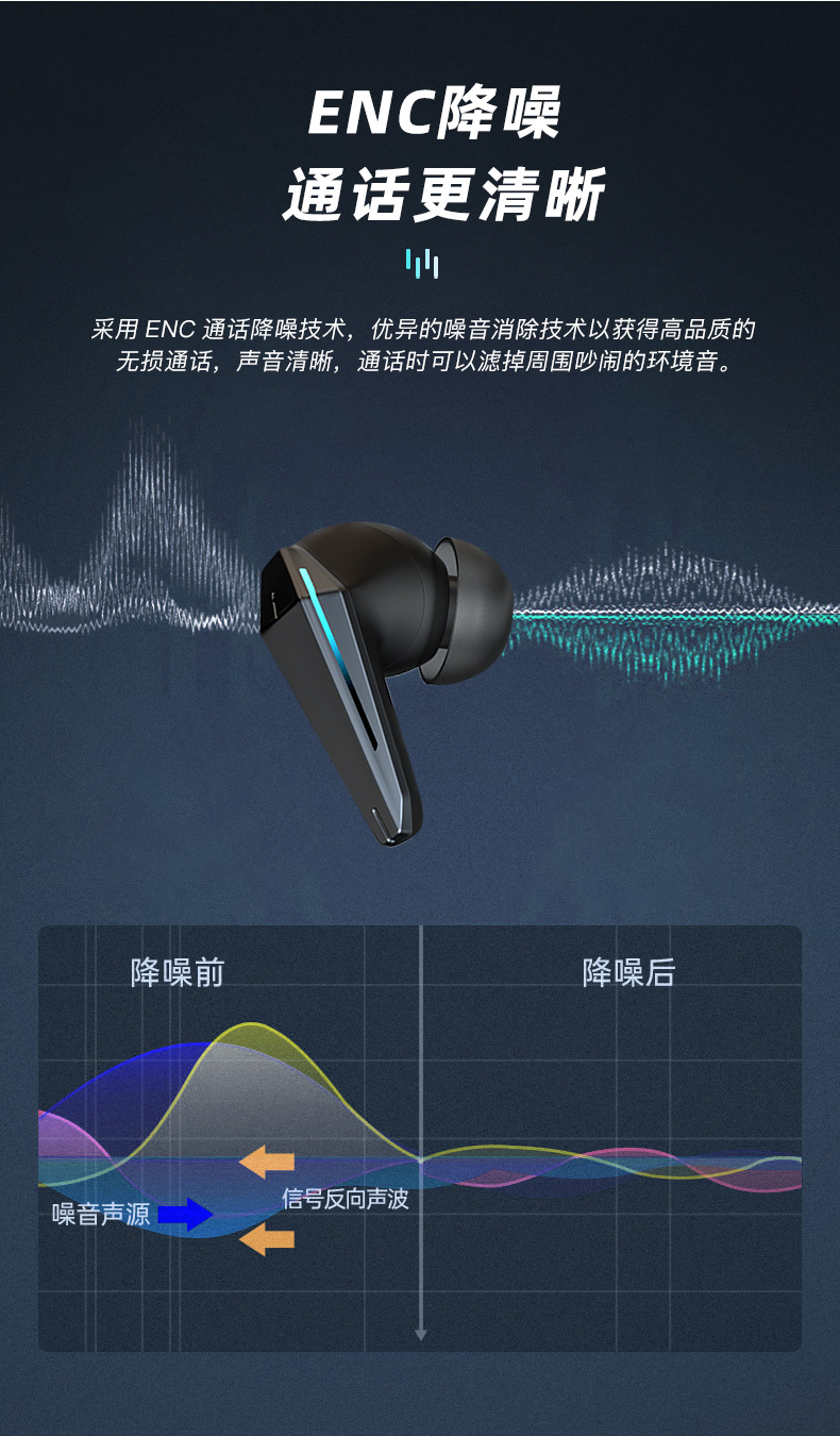 Nuevo auricular inalámbrico en la oreja con reducción de ruido digital inteligente de baja latencia, luz de respiración, auricular Bluetooth para juegos de deportes electrónicos