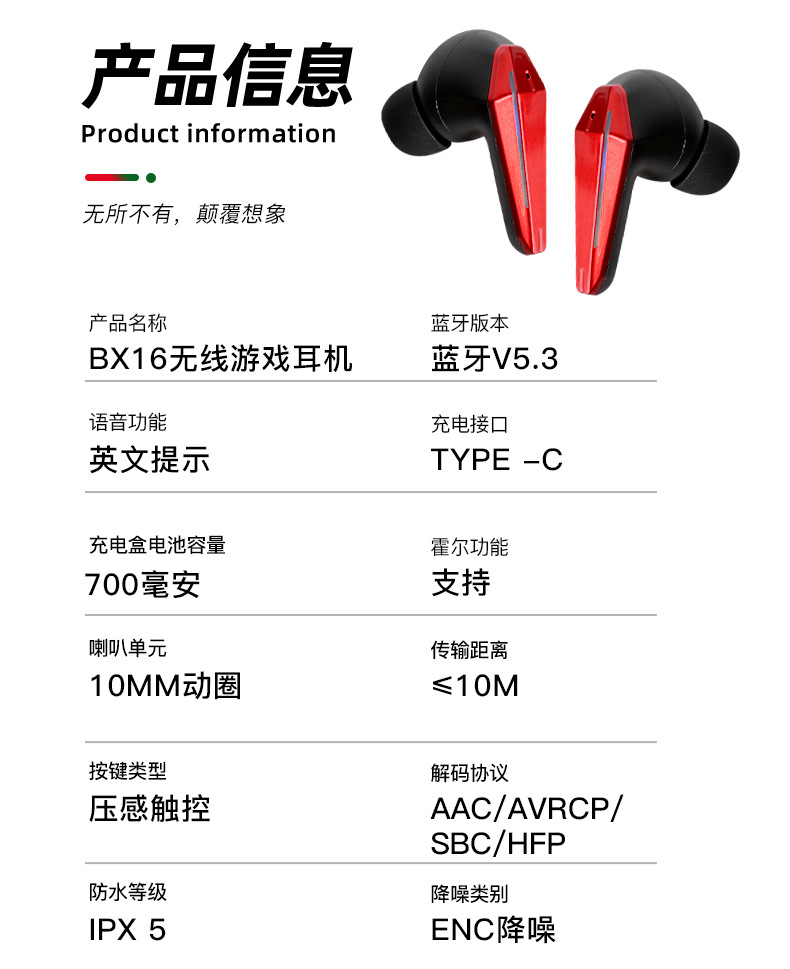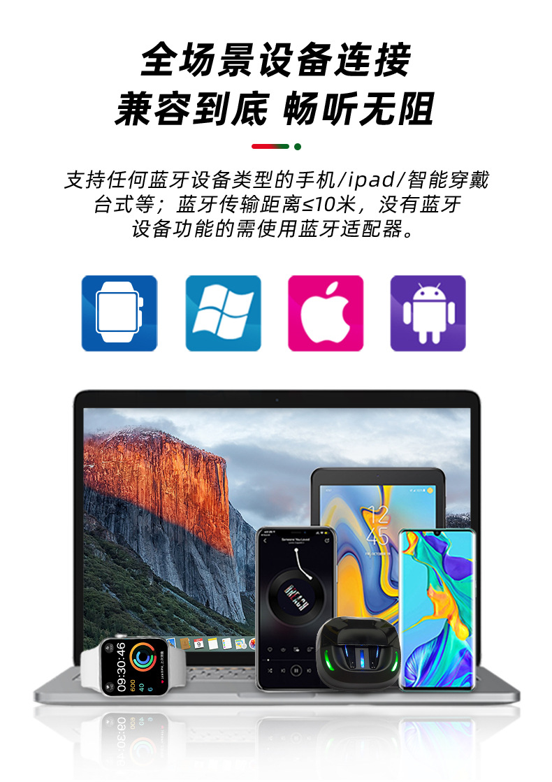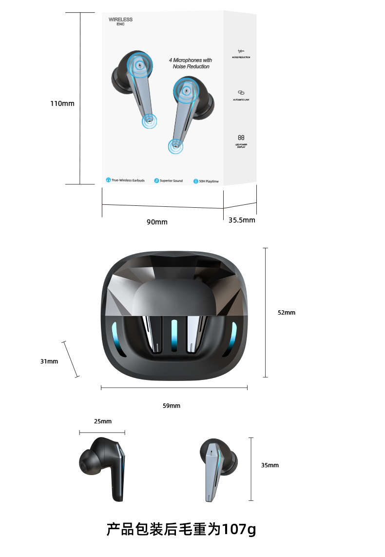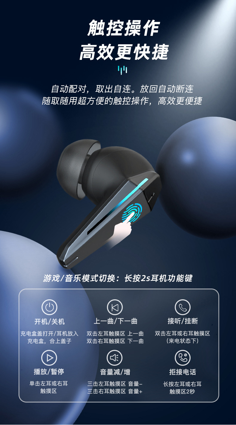 Nuevo auricular inalámbrico en la oreja con reducción de ruido digital inteligente de baja latencia, luz de respiración, auricular Bluetooth para juegos de deportes electrónicos