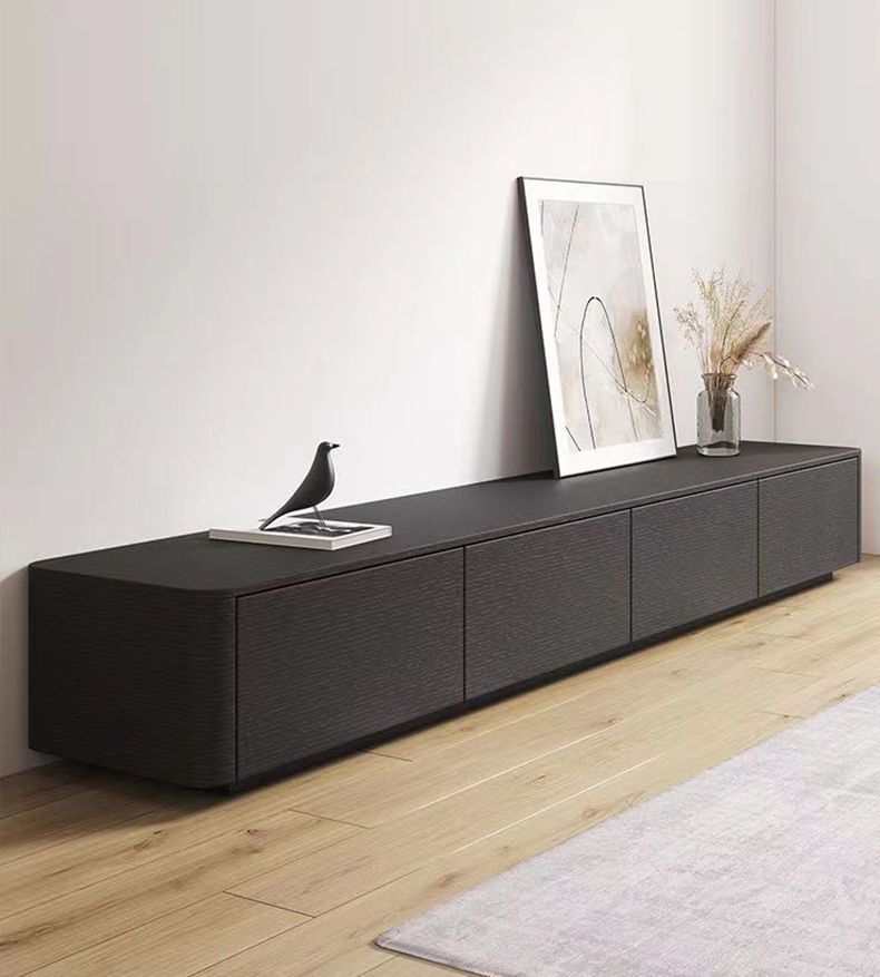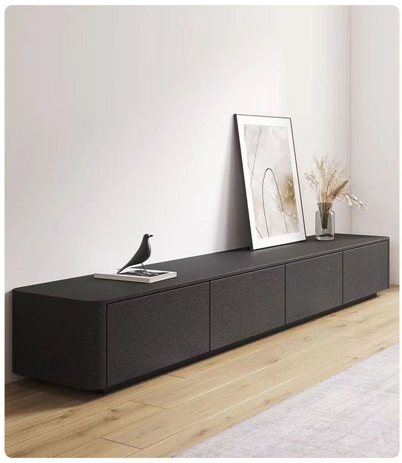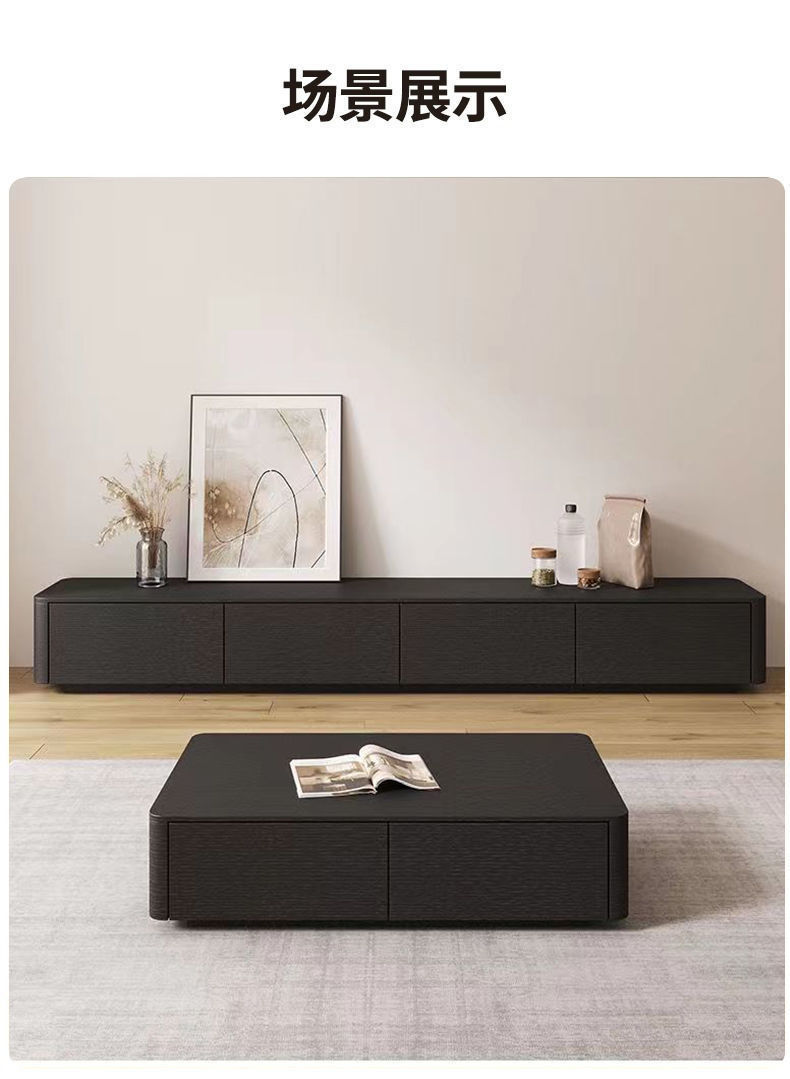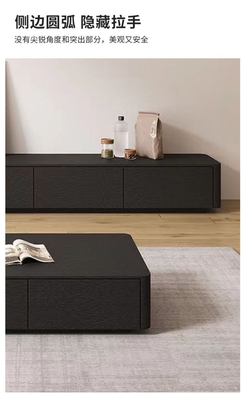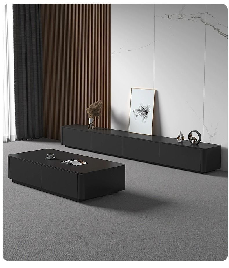 Mueble de TV negro, combinación de mesa de centro, hogar moderno y simple, apartamento pequeño, minimalista, sala de estar de lujo, gabinete de TV de piso a techo