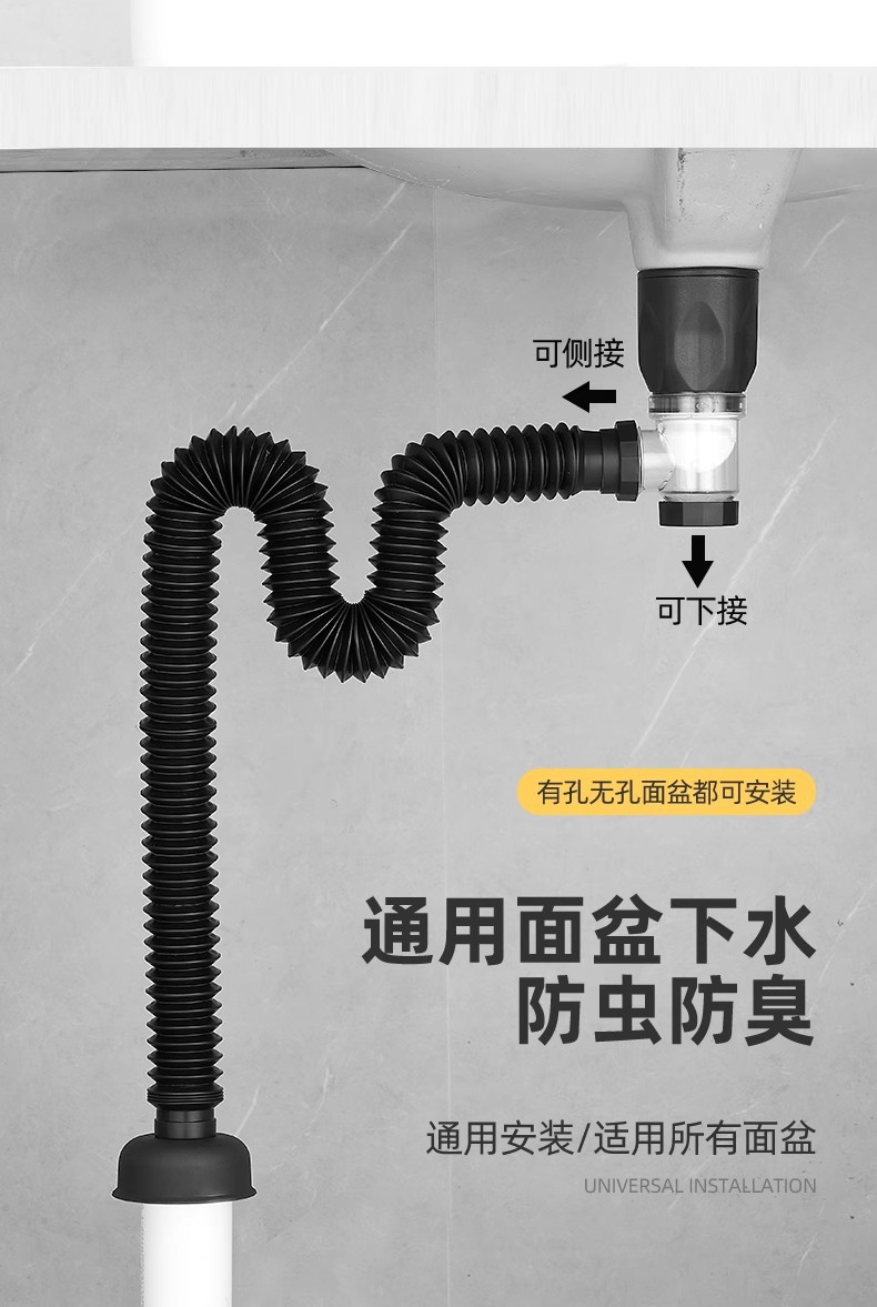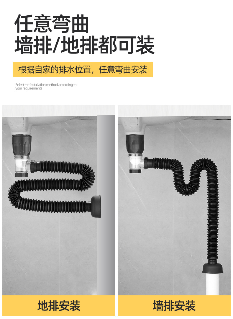 Tapa grande de acero inoxidable, tubería de drenaje, tubería de doble uso, tubería de pared y tierra, juego de desagüe de lavabo