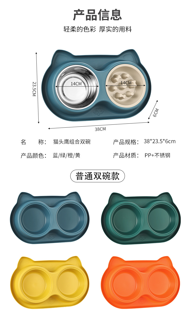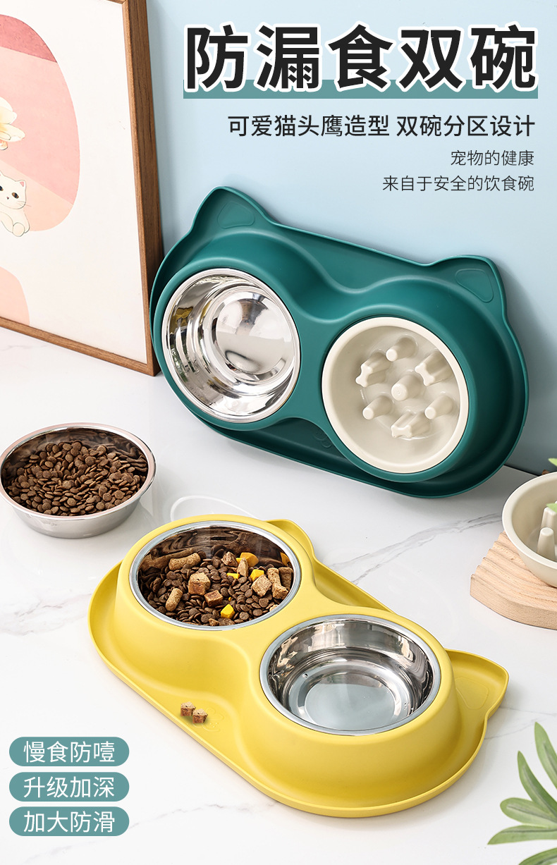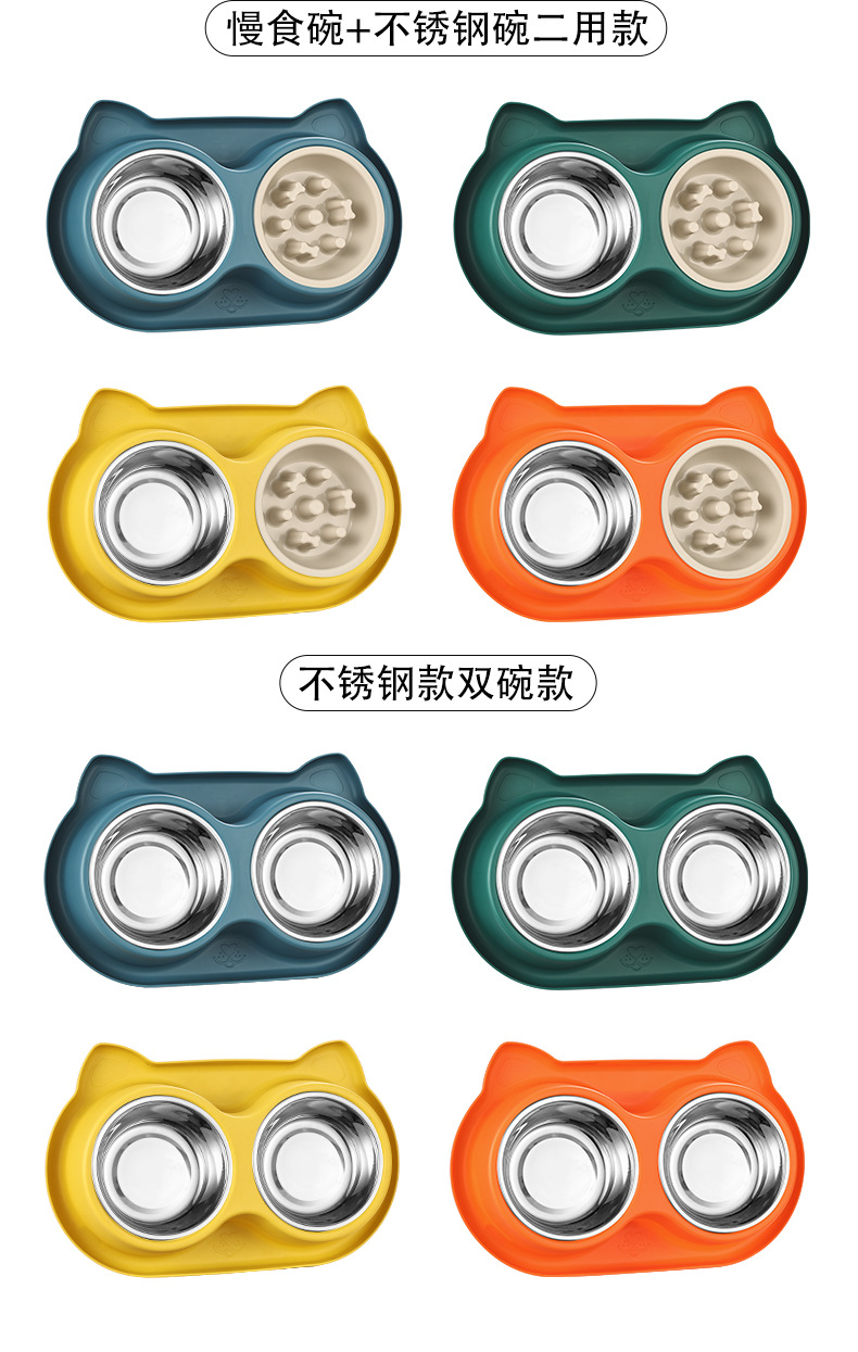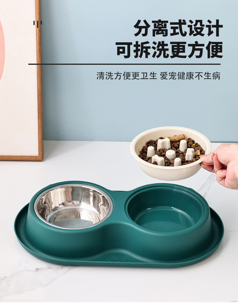 Dibujos animados anti-hormiga mascota tazón doble gato perro tazón de comida antideslizante tazón doble Teddy tazón de plástico a prueba de fugas gato tazón doble
