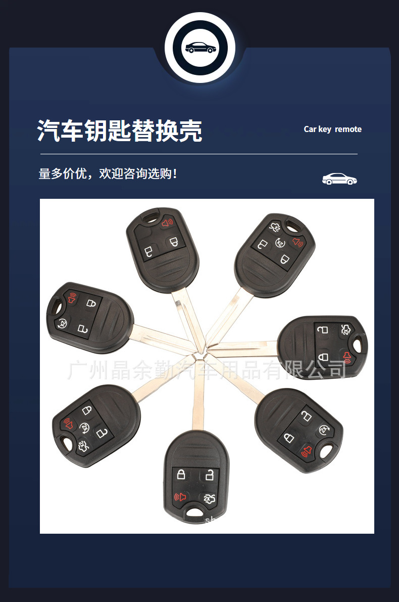 Adecuado para el viejo Ford Raptor Sharp World Mustang Maverick 5 teclas barra de control remoto de coche carcasa de reemplazo de llave