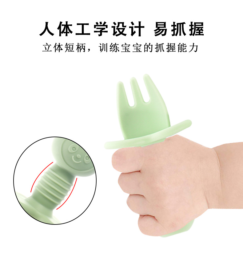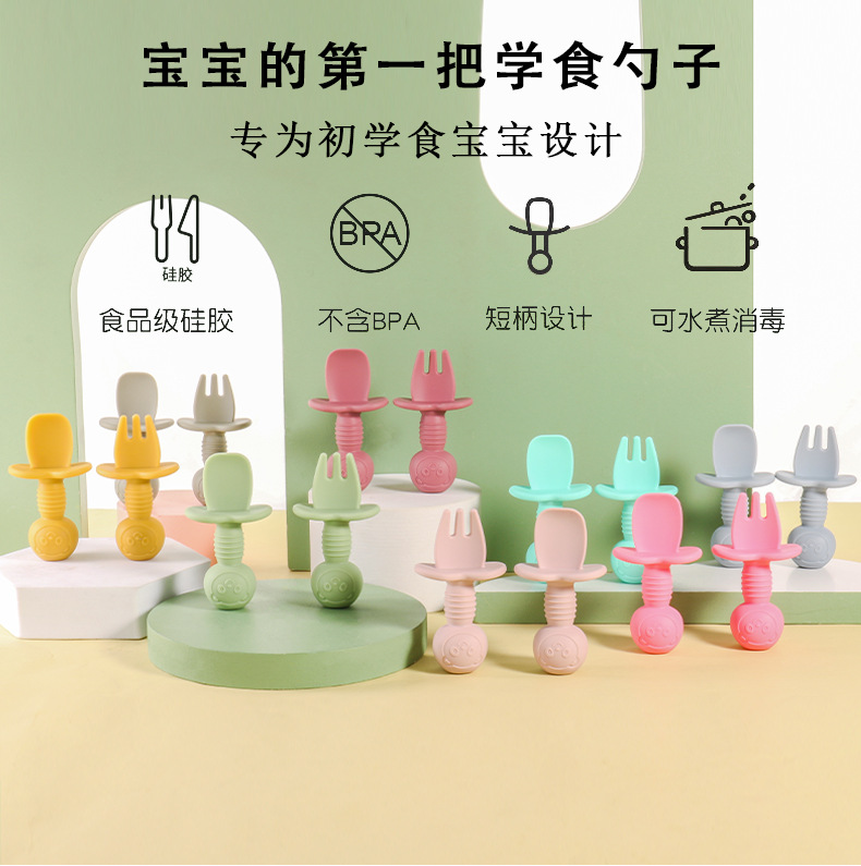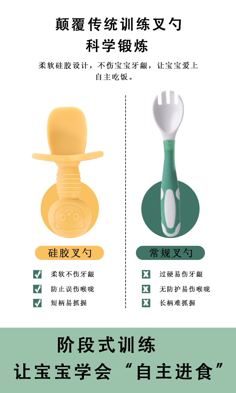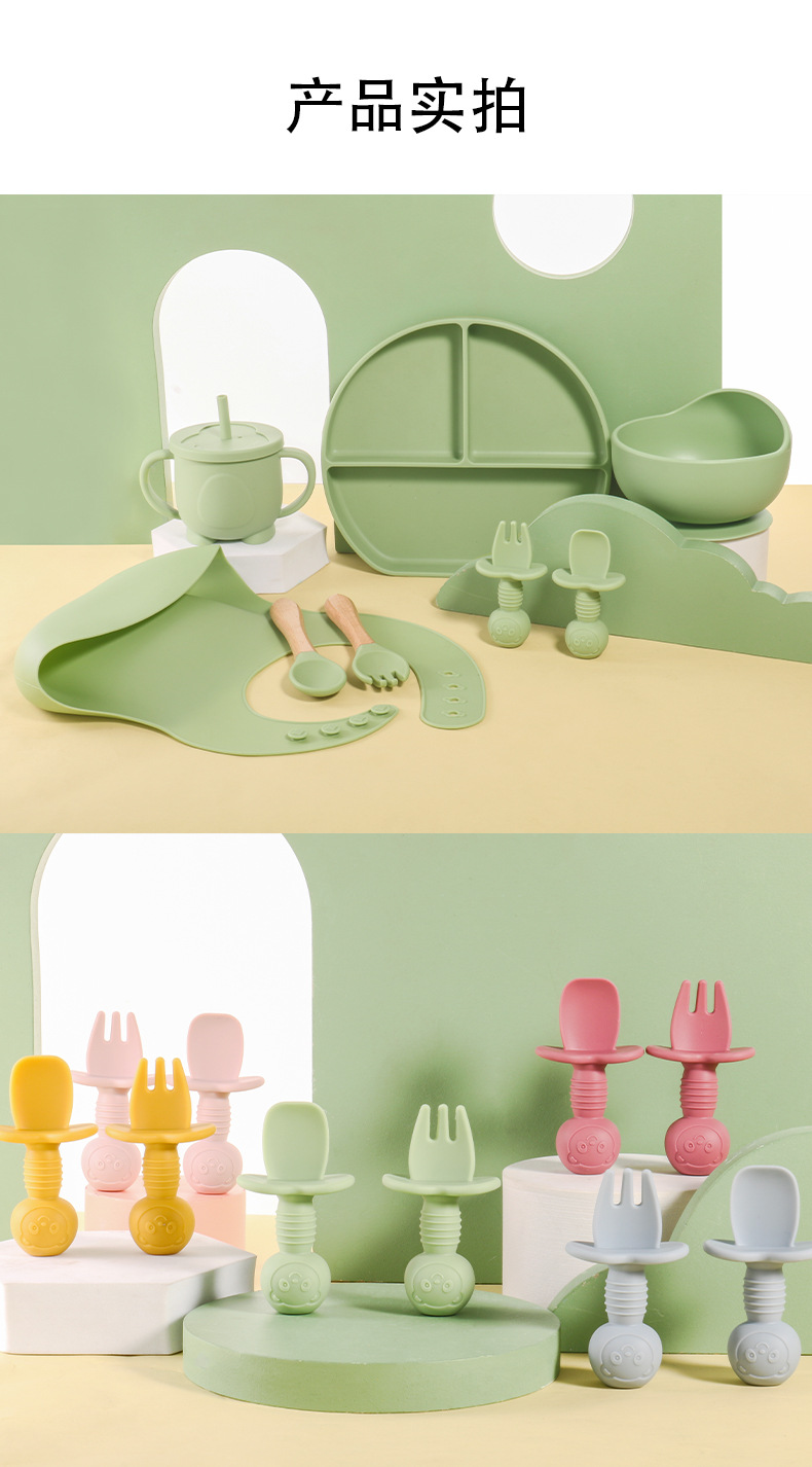 Juego de cuchara de tenedor de oso para niños entrenamiento de alimentación para bebés Cuchara de lamer de silicona Cuchara de tenedor de silicona Cuchara de vajilla complementaria para bebés