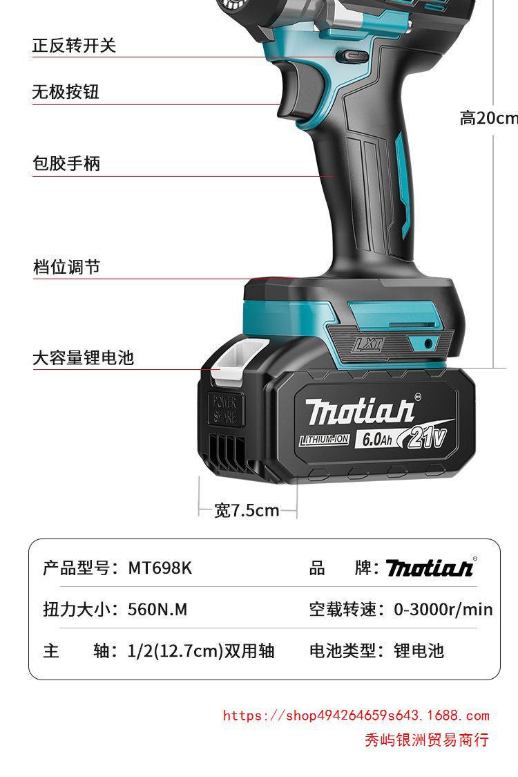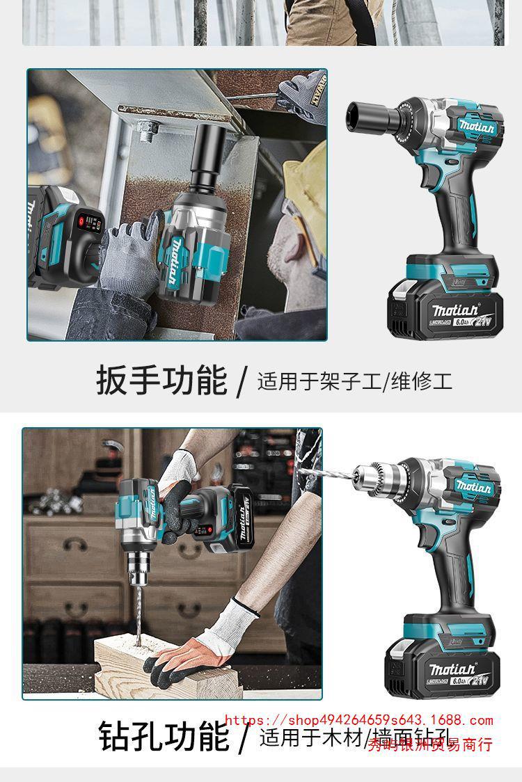 Batería de litio Makita Llave eléctrica sin escobillas Llave recargable multifunción Estante de reparación de automóviles original Carpintería potente cañón de viento
