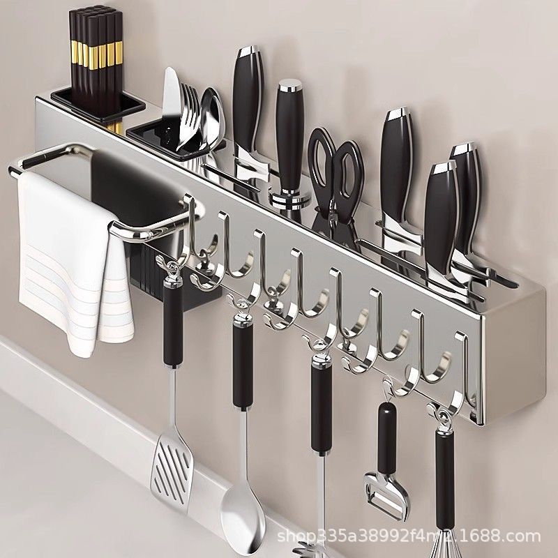 Soporte para cuchillos de acero inoxidable, estante para cuchillos de cocina, sin perforación, cuchillo de cocina multifuncional, estante de almacenamiento de palillos, estante para cuchillos de pared
