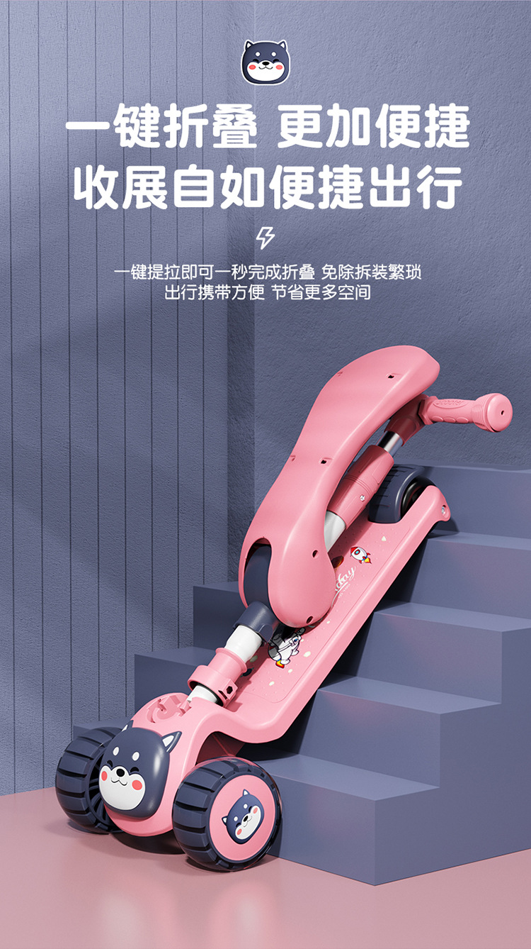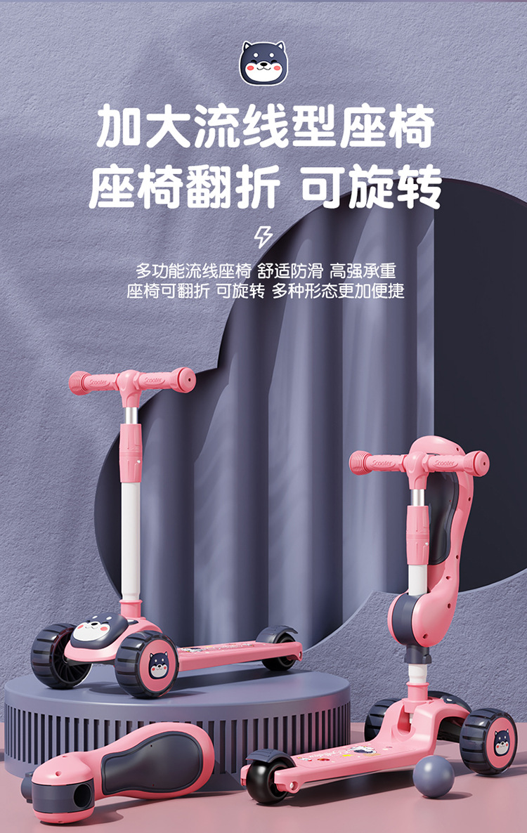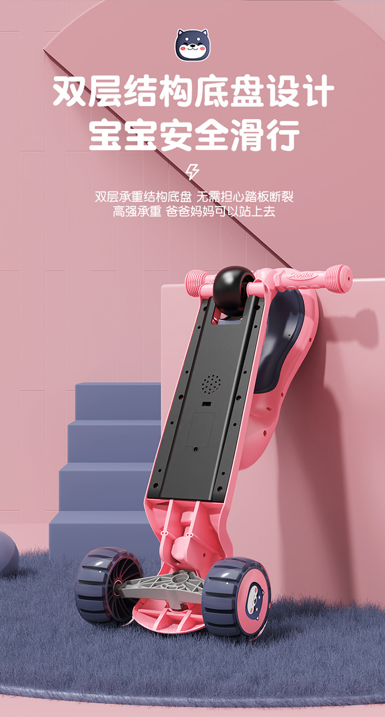 Spot de comercio exterior al por mayor scooter para niños, puede sentarse, niños y niñas, asientos deslizantes para bebés, música plegable
