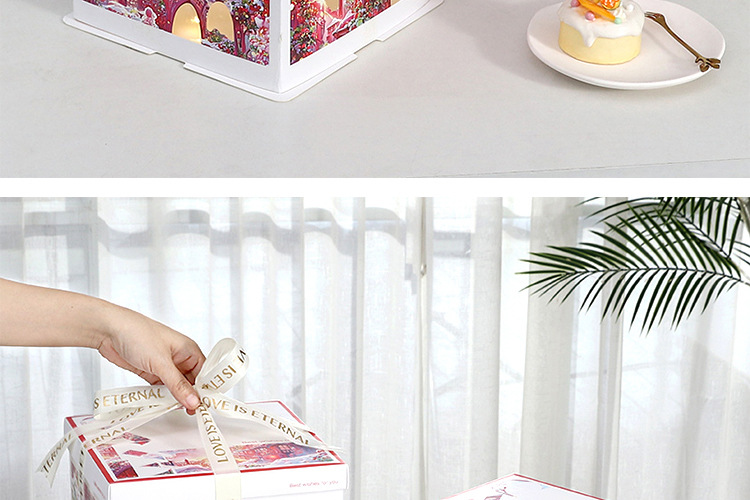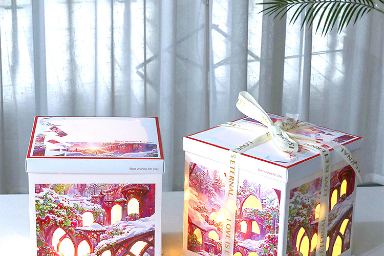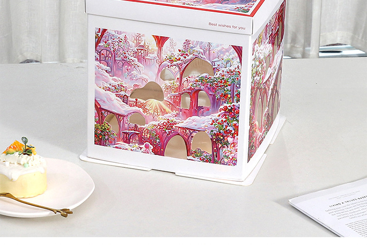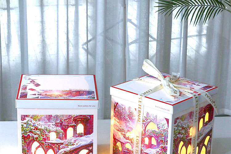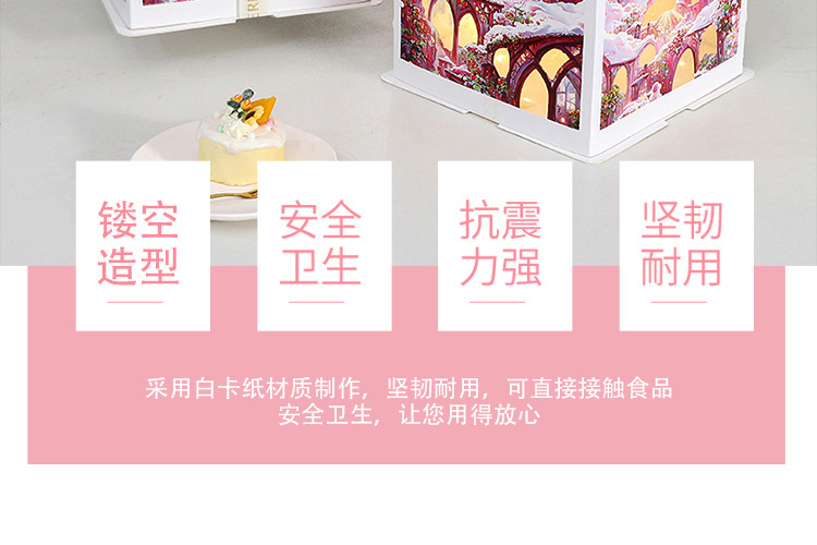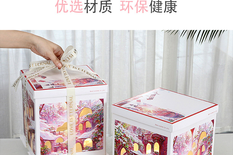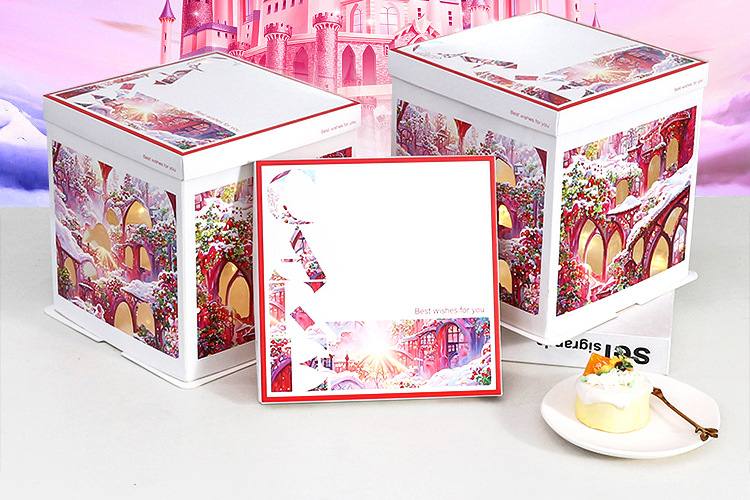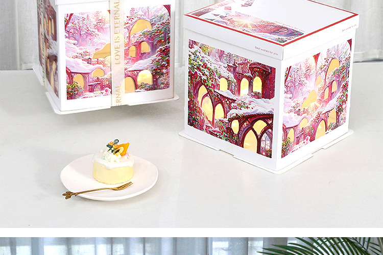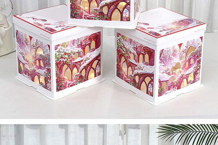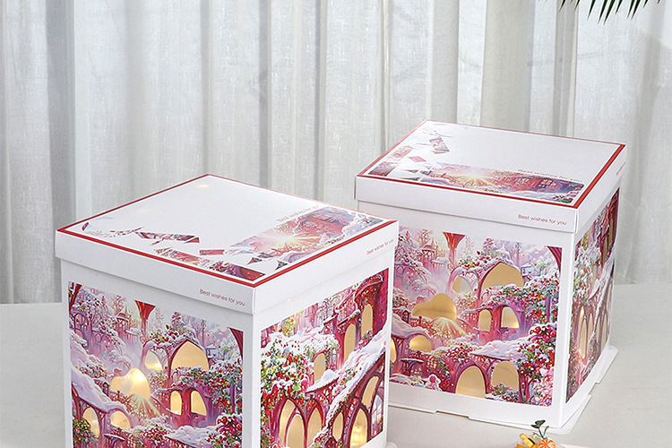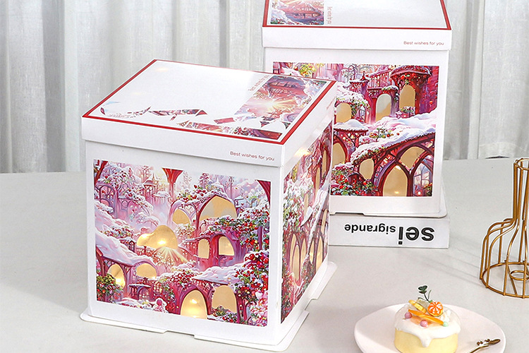 Caja para Pastel de Cumpleaños, Caja de Embalaje para Pastel de 6, 8 y 10 Pulgadas, Caja para Pastel con Luces Navideñas, Caja de Regalo para Fiestas