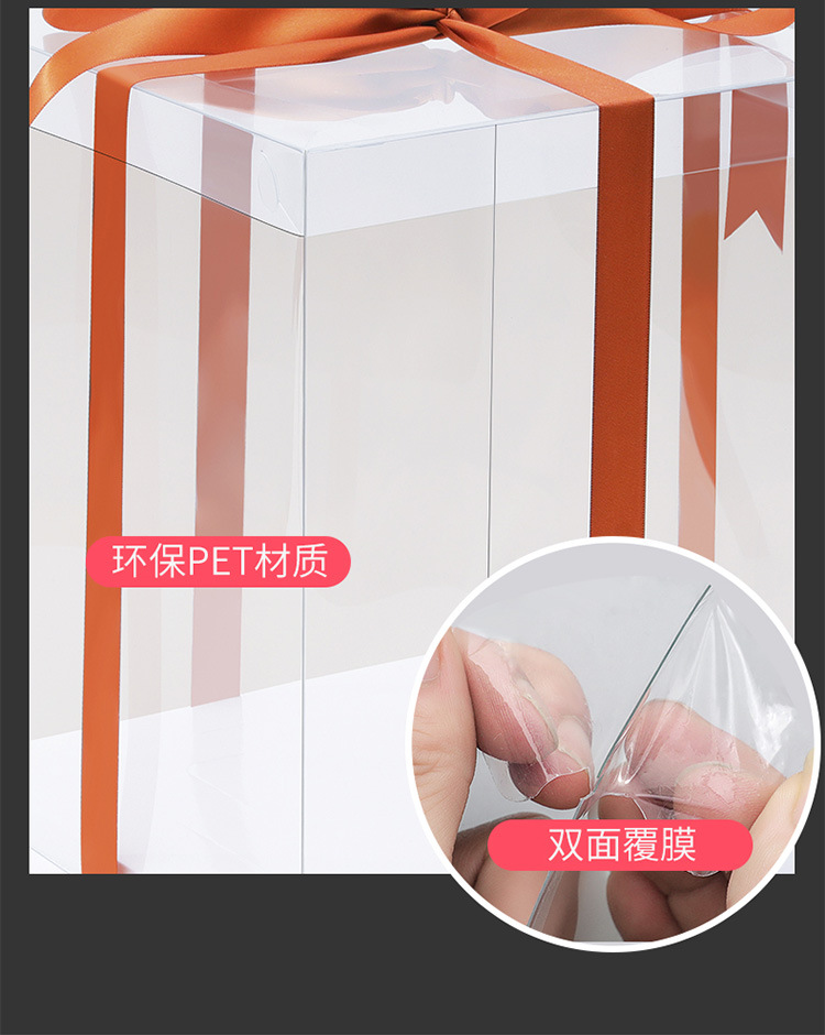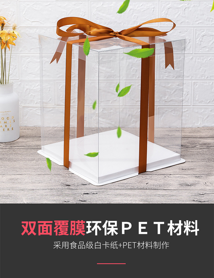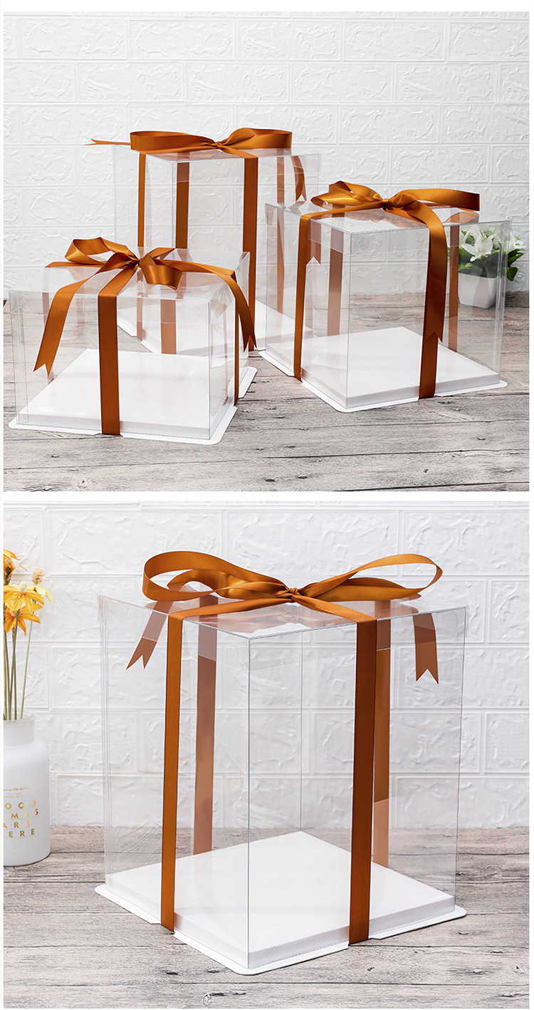 Caja de caja de caja de pastel transparente de alta transparencia 4 4 6 6 8 8 8 10 10 12 pulgadas fondo simple y de doble capa de moda simple y grueso