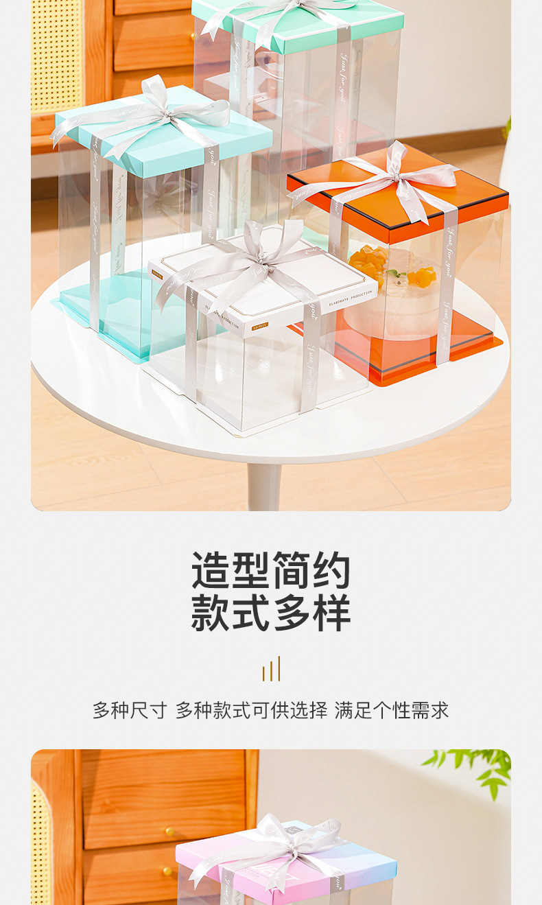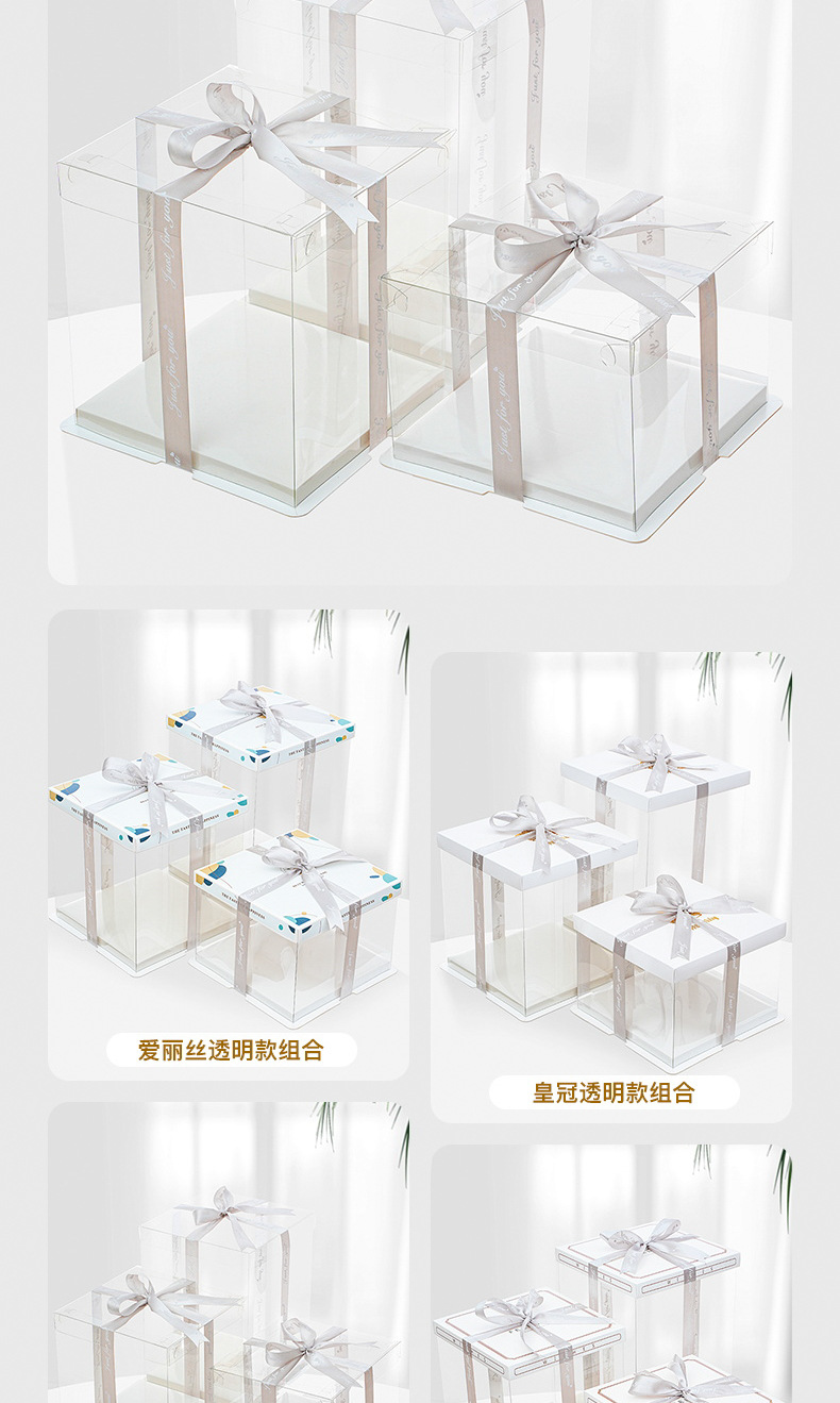 Caja de caja de pastel de cumpleaños totalmente transparente 4 4 6 6 6 8 8 10 pulgadas 12 caja de embalaje de pastel simple y doble engrosada