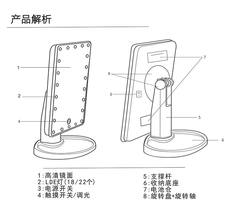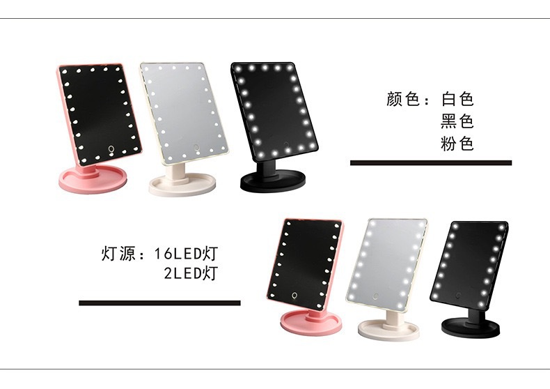 Espejo de luz LED espejo de maquillaje espejo de tocador giratorio de 360 grados escritorio de escritorio 16 luces espejo de maquillaje 22 luces toque de escritorio