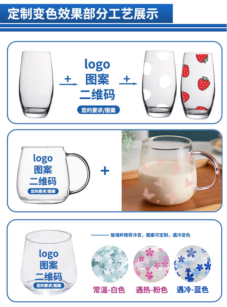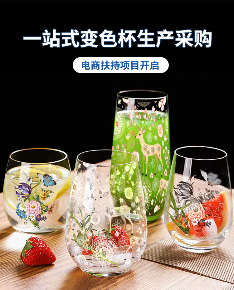 Creativo transfronterizo patrón de vidrio que cambia de color sensible a la temperatura impresión personalizada jarra de cerveza fría para el hogar taza de alto valor