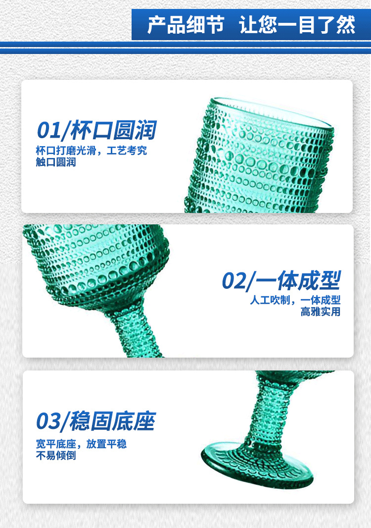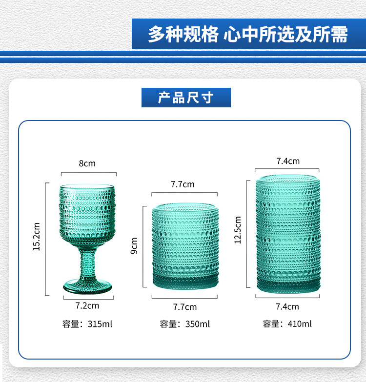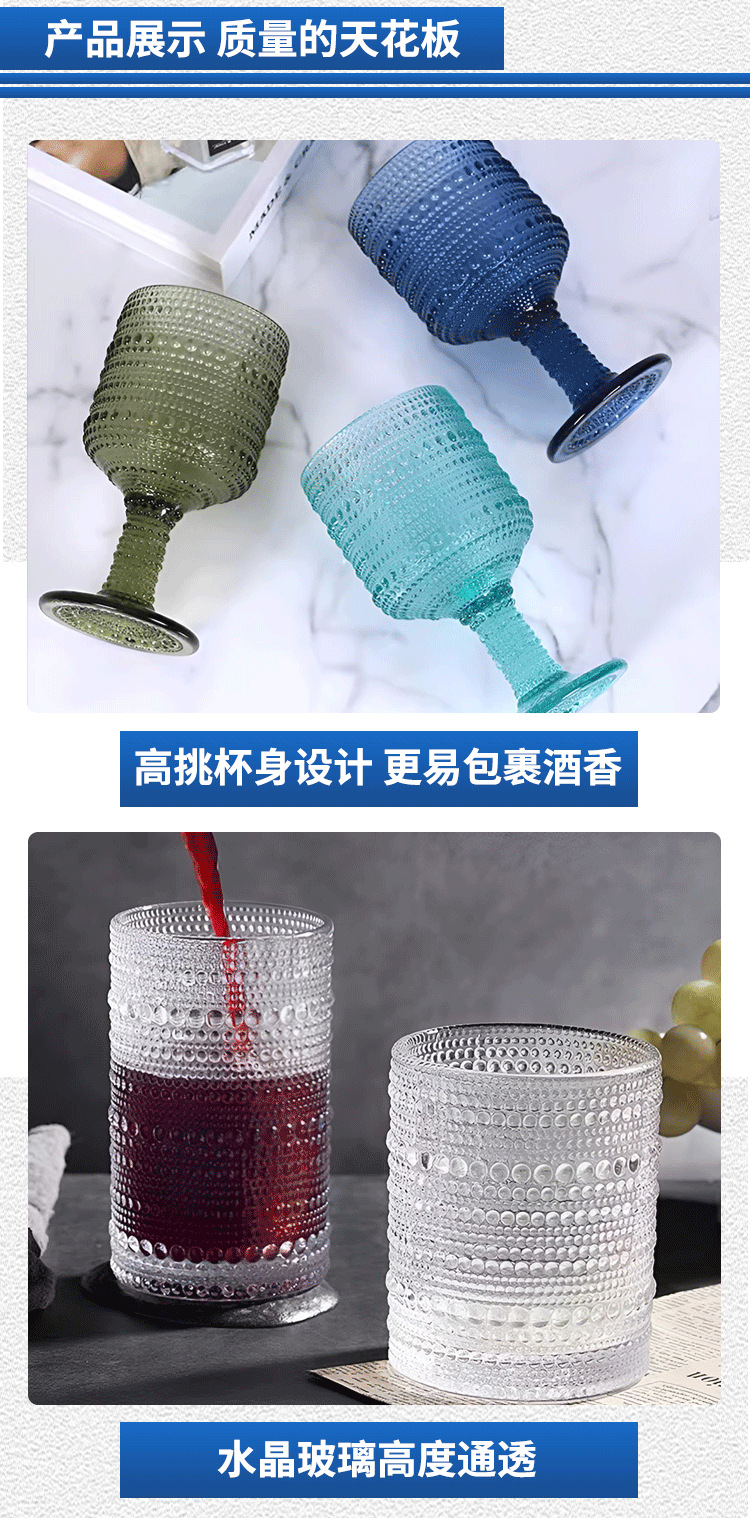 Copa de vino tinto retro Jinbaijia Copa de vidrio en relieve grueso de color Copa de jugo de banquete de bodas con cuentas de cristal francés