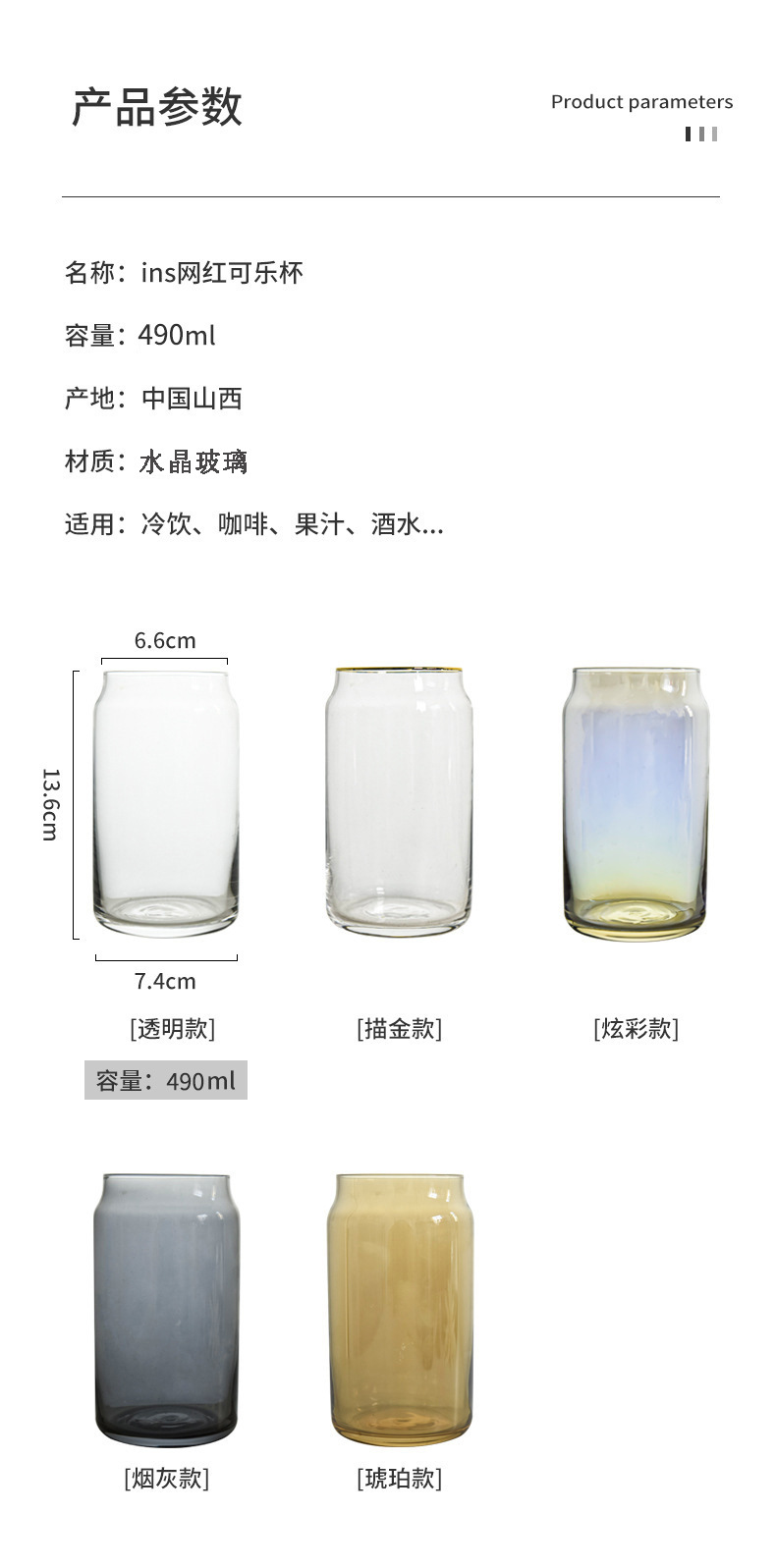 Simple ins taza de cola barra transparente jugo puede Red de vidrio bebida fría del hogar rojo taza de agua de alto aspecto