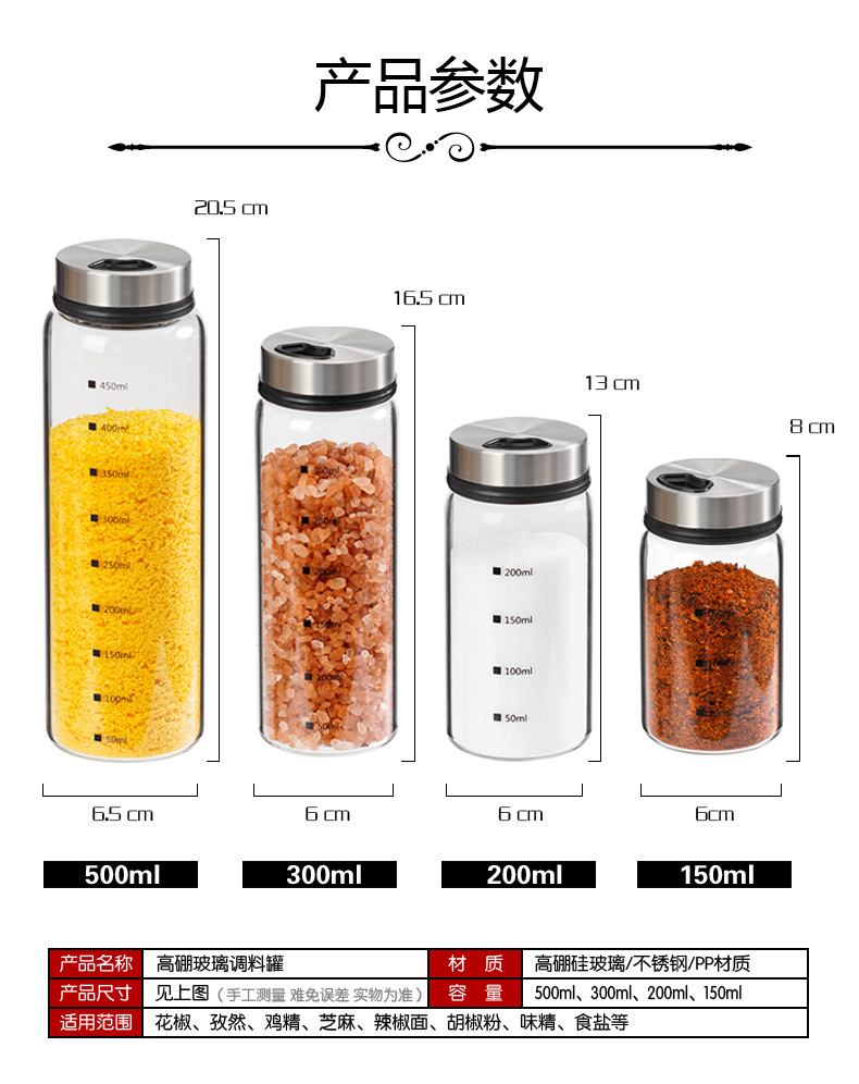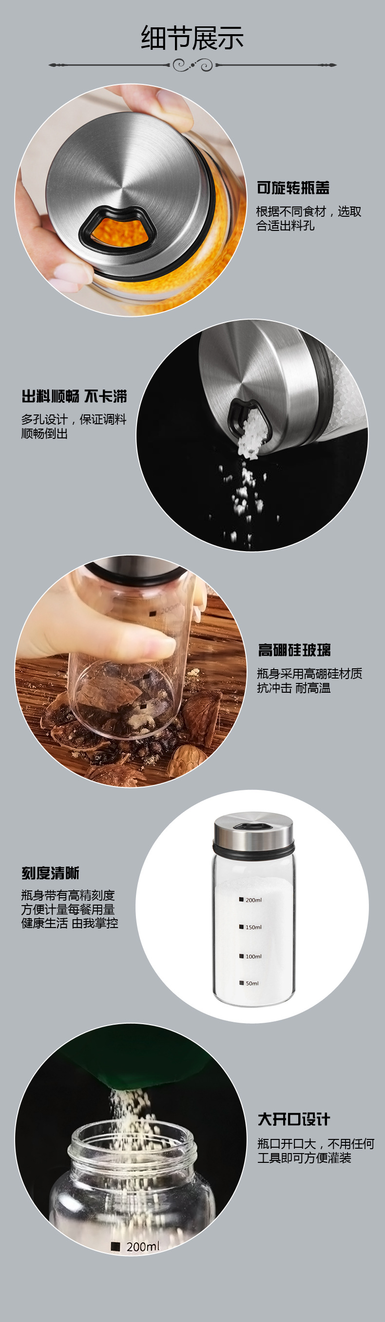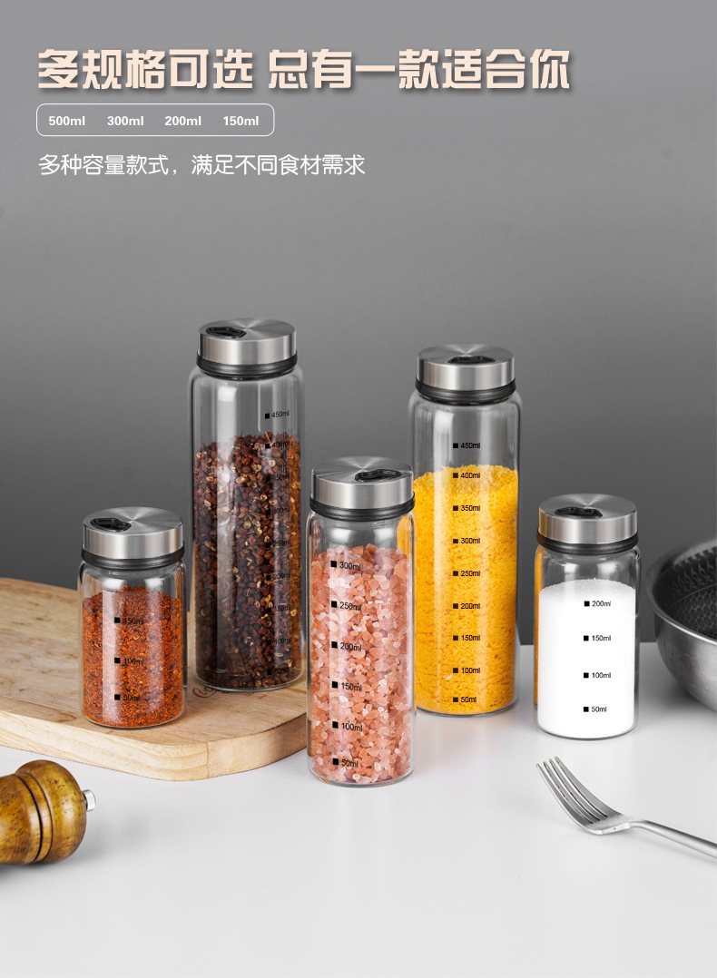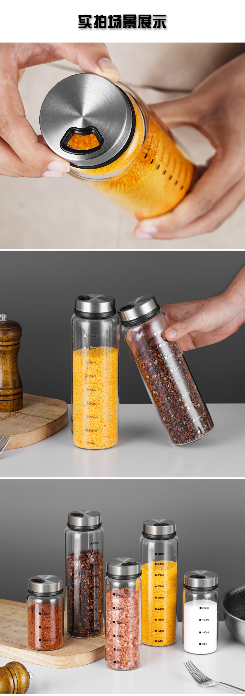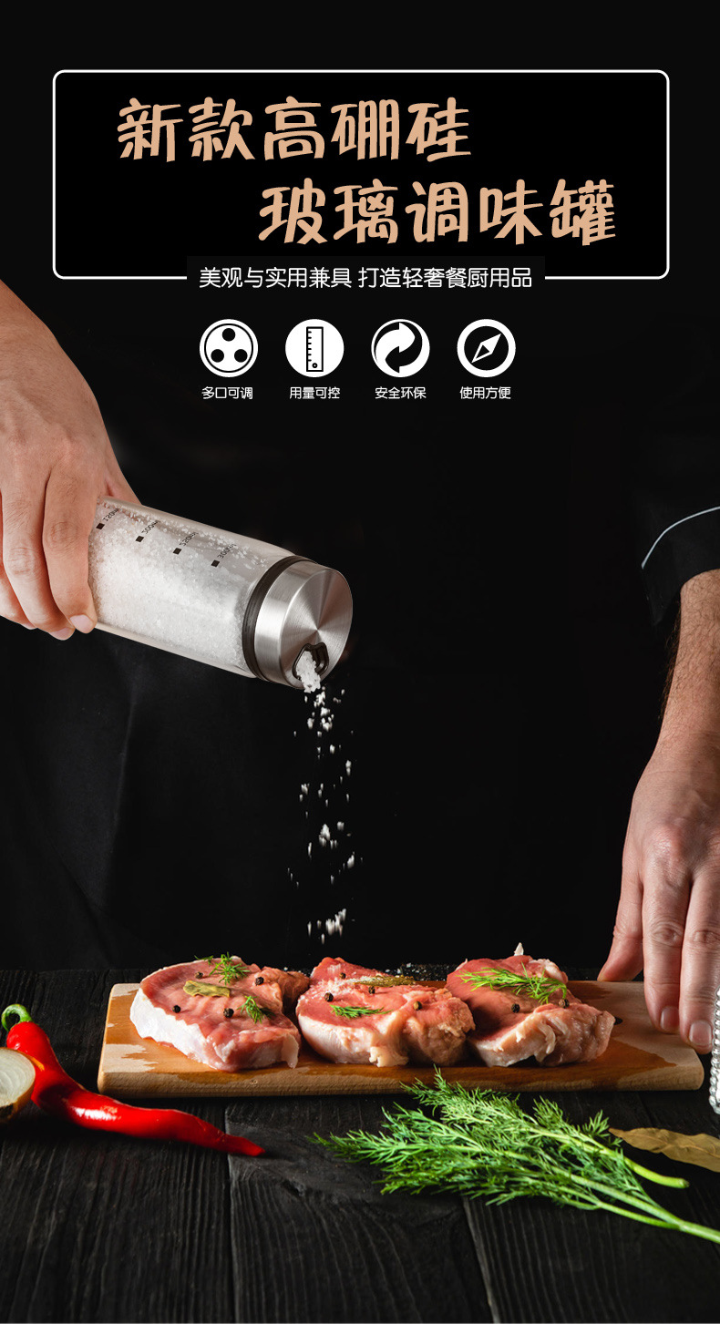 Esparcidor de vidrio hogar condimento caja combinación traje de Cocina Barbacoa Pimienta Sal tarro de condimento de acero inoxidable tarro