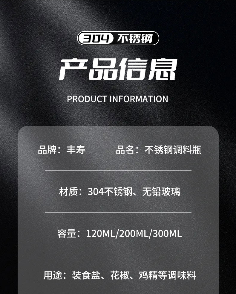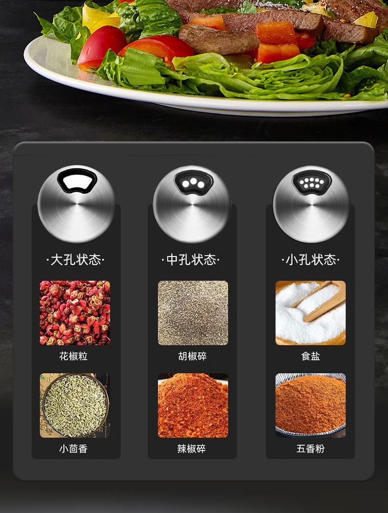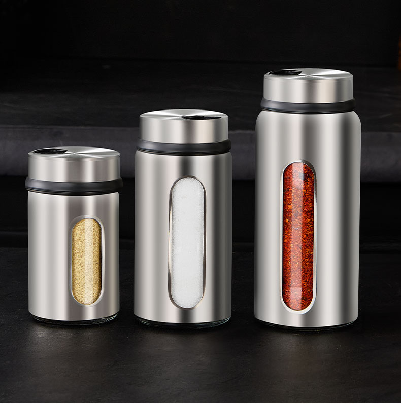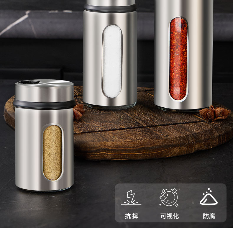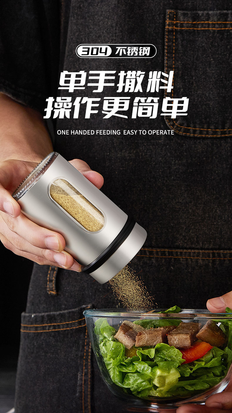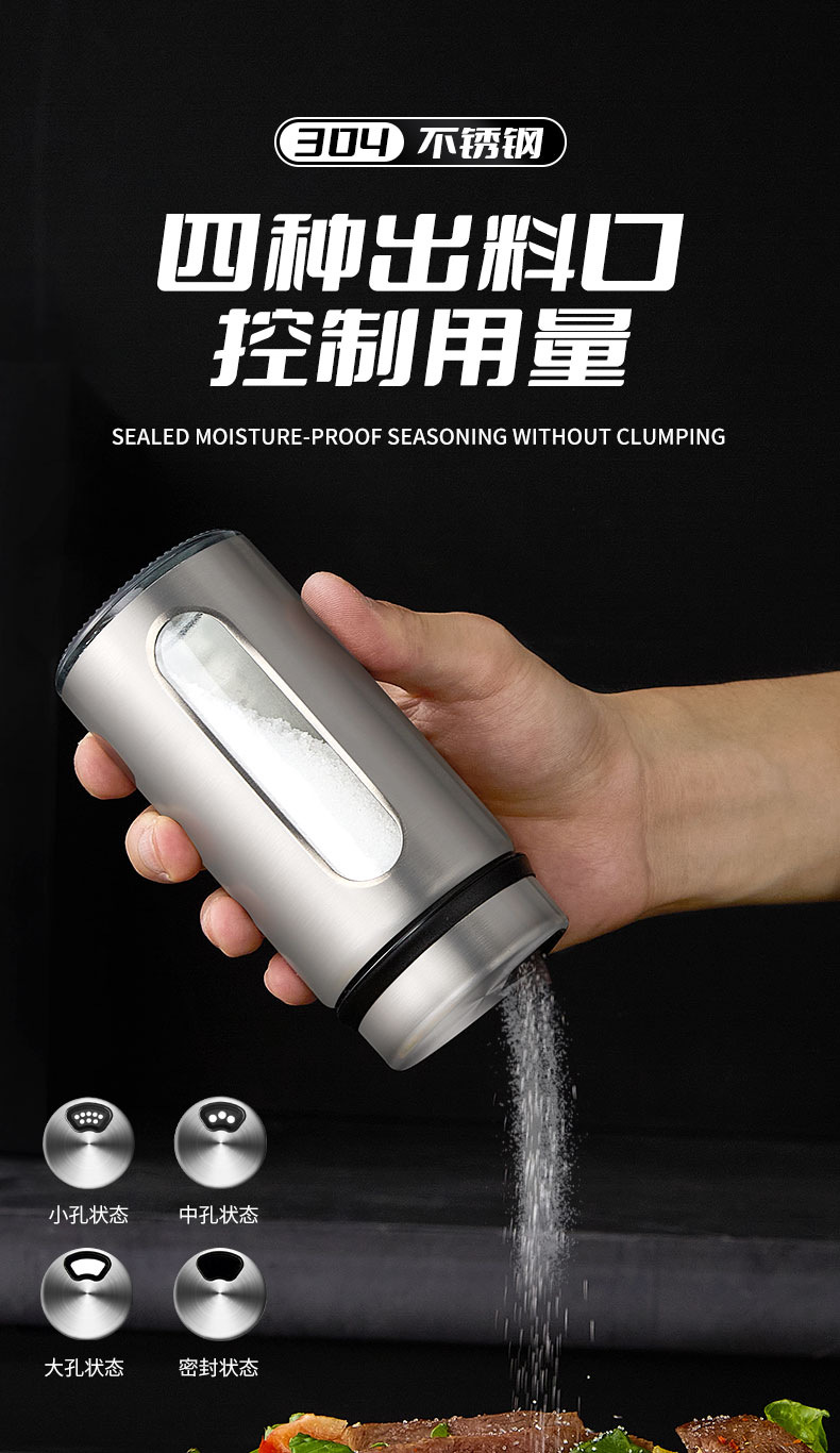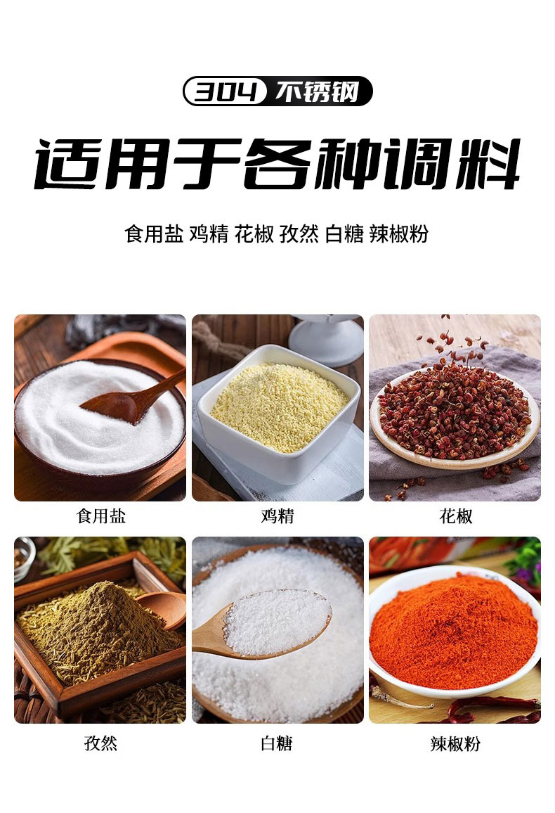 Tarro comercial de condimentos de acero inoxidable, botella de condimento, barbacoa doméstica, espolvorear, espolvorear, botella de material, cocina, tarro de sal MSG, juego de gama alta