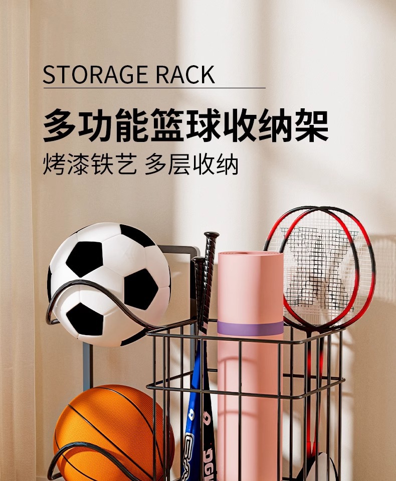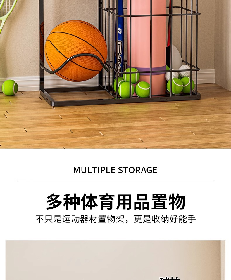 Estante de almacenamiento de estantes de yoga para dormitorios de estudiantes de equipos de ejercicios domésticos canasta de almacenamiento deportivo de dormitorio de invitados bádminton estante de almacenamiento