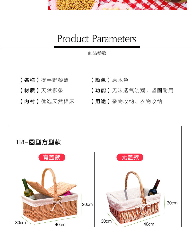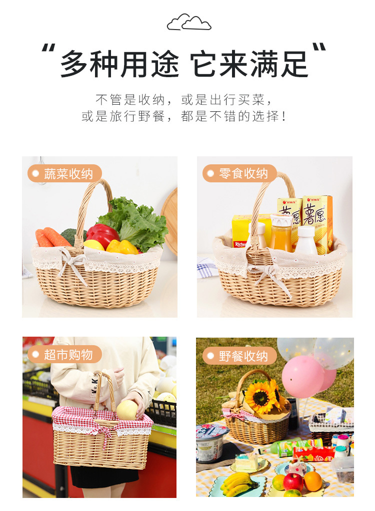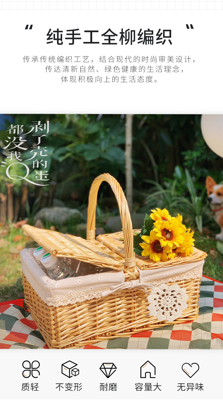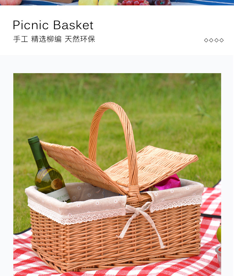 Cesta de almacenamiento de mimbre de mimbre de punto de fábrica cesta de picnic portátil portátil al aire libre cesta de regalo de fruta cuadrada con tapa