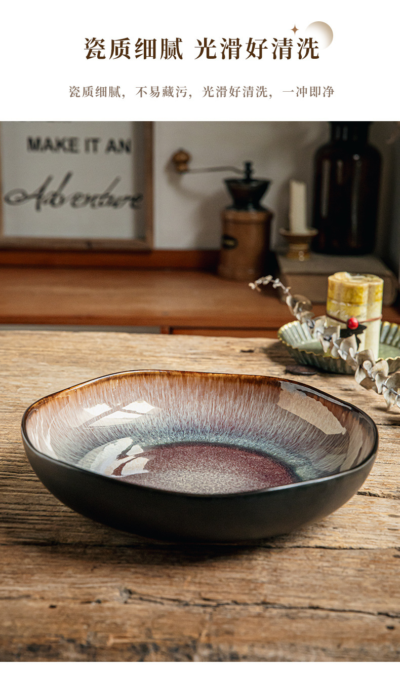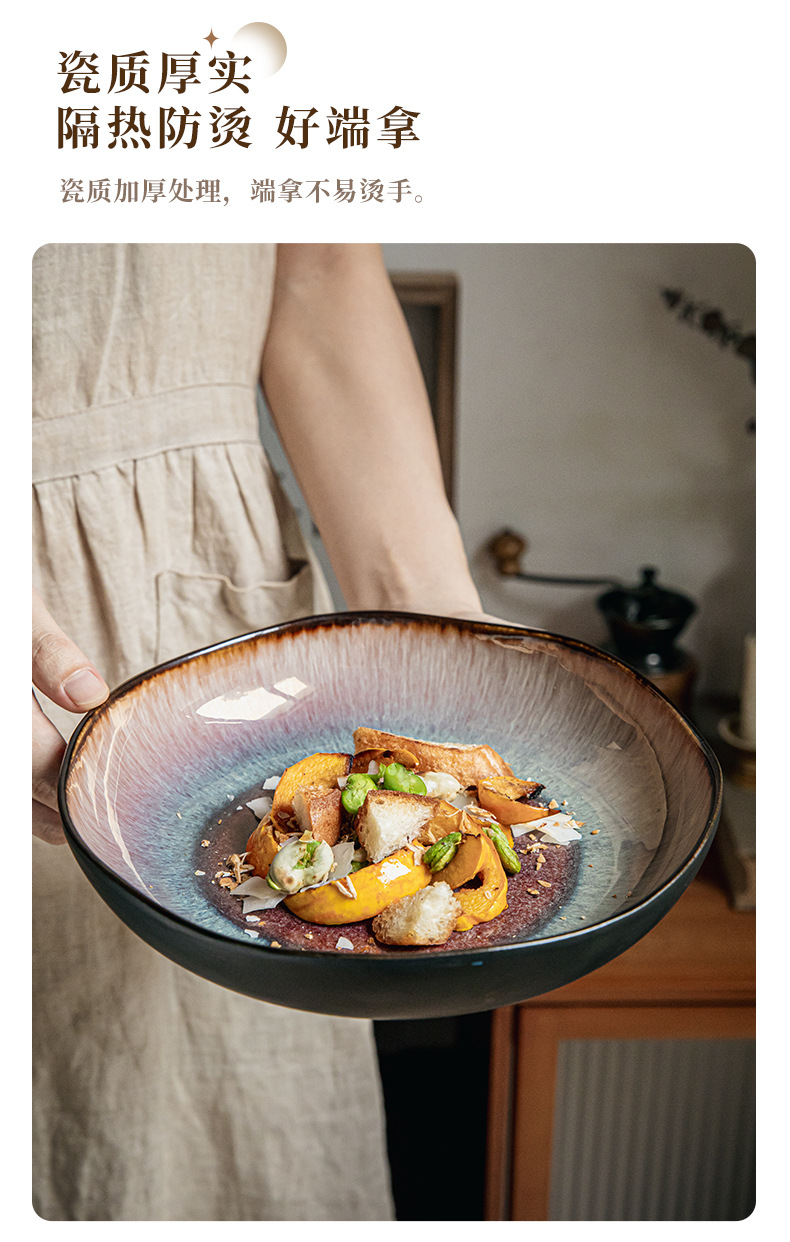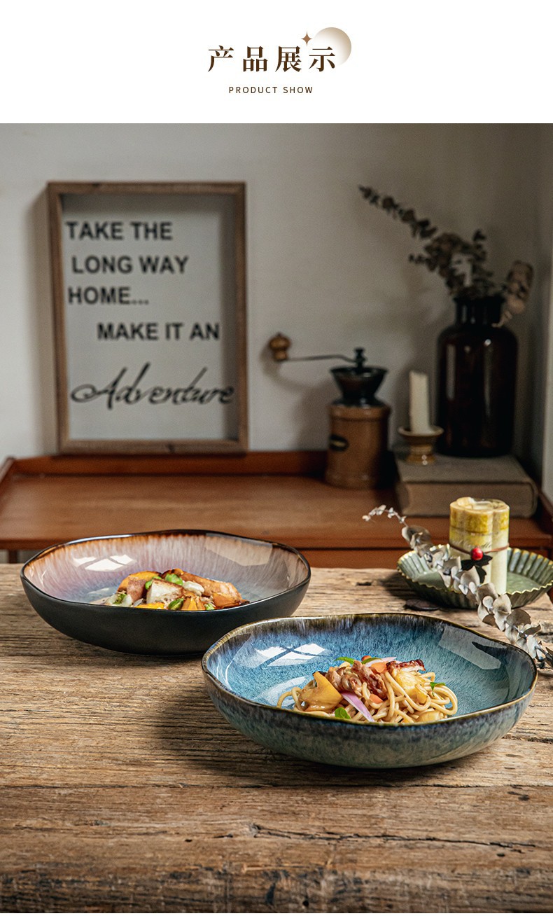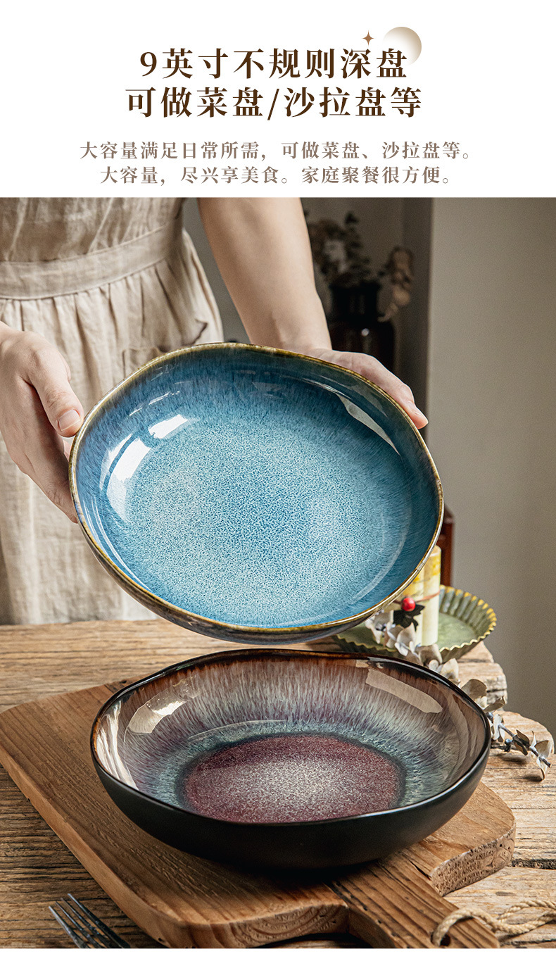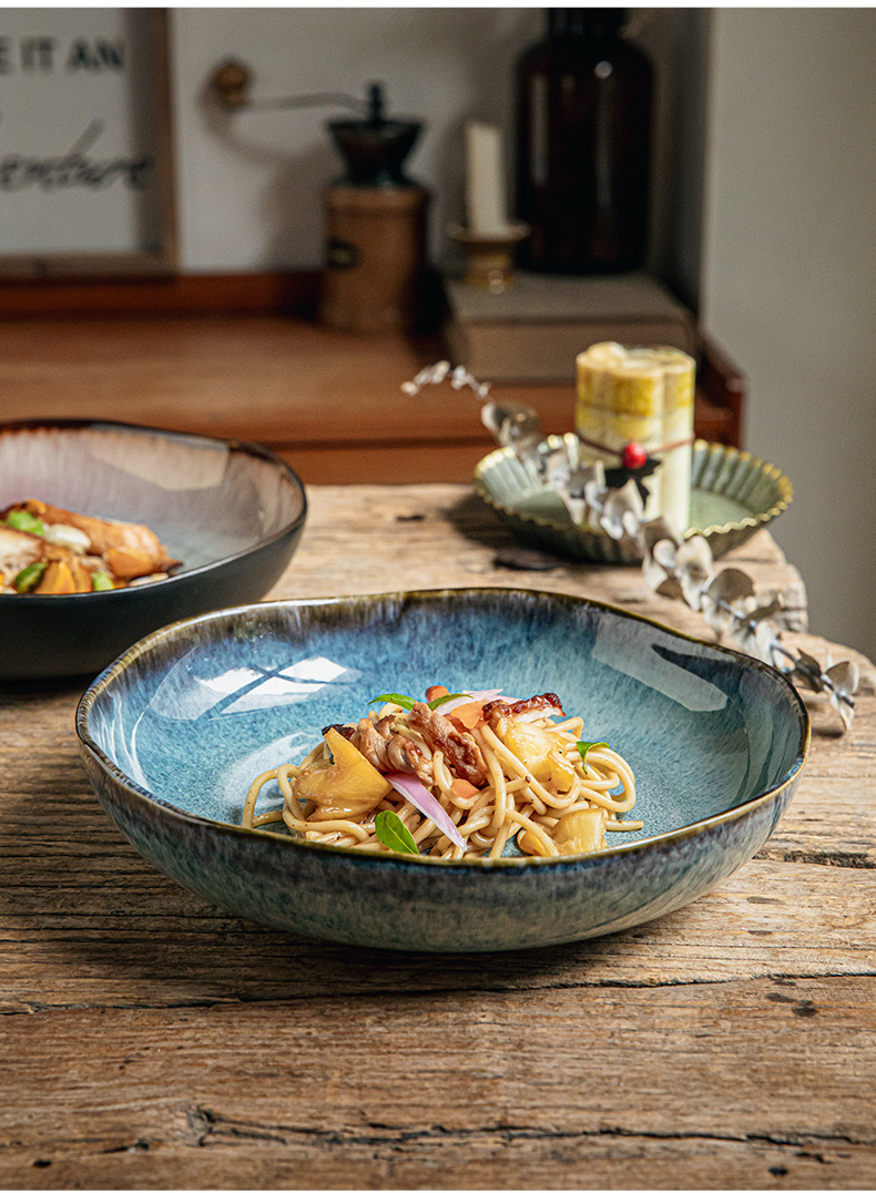 Yunmeng 9 pulgadas irregulares profundos retro lujo ligero platos de ensalada caseros platos de cerámica exportación transfronteriza