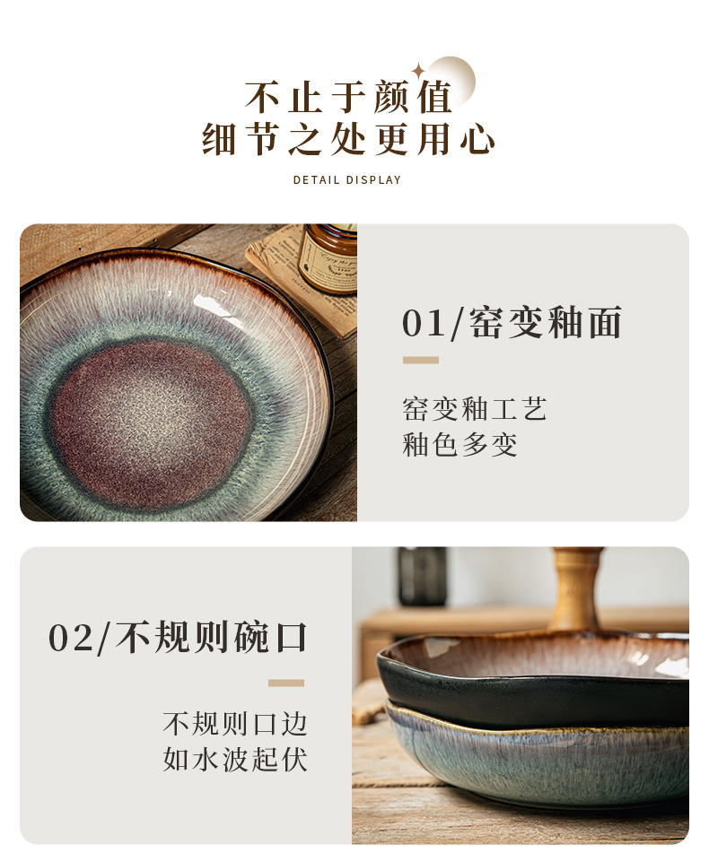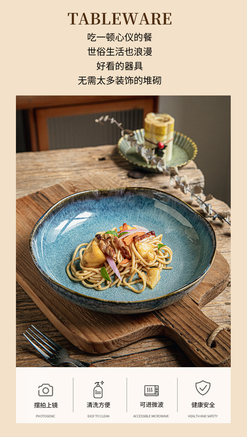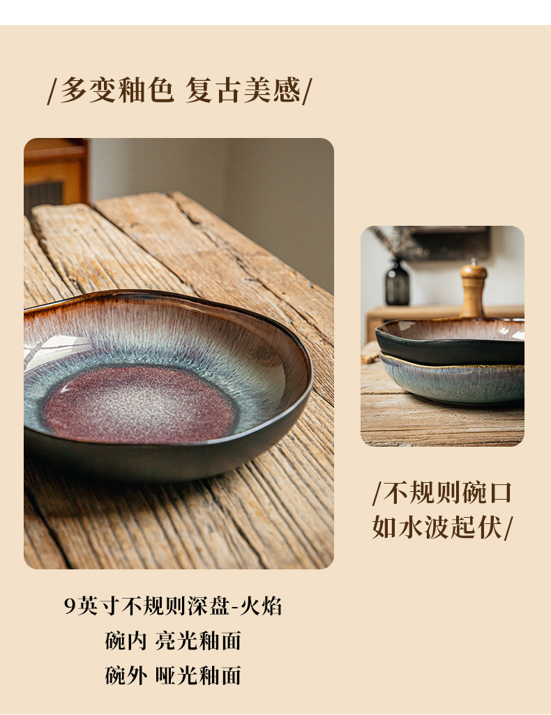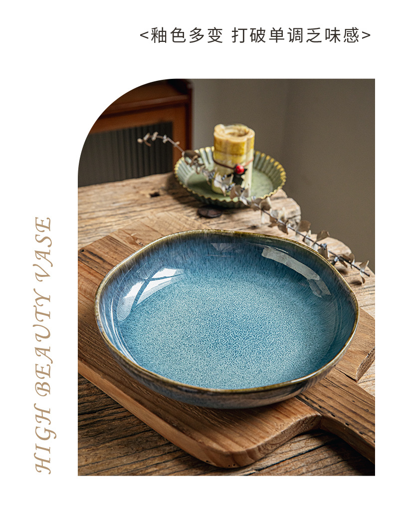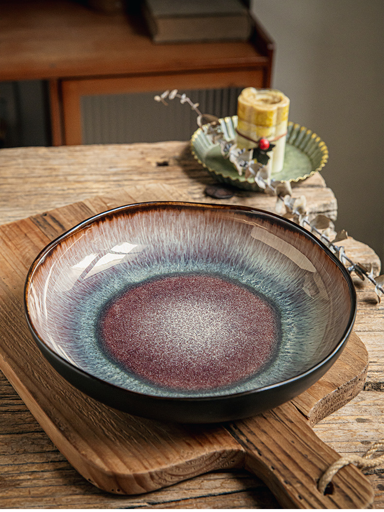 Yunmeng 9 pulgadas irregulares profundos retro lujo ligero platos de ensalada caseros platos de cerámica exportación transfronteriza