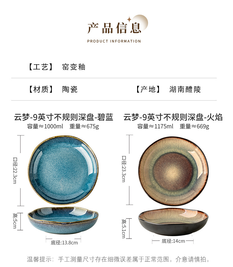 | Color | Yunmeng - disco profundo irregular de 9 pulgadas - llama, Yunmeng - disco profundo irregular de 9 pulgadas - azul Turquesa |