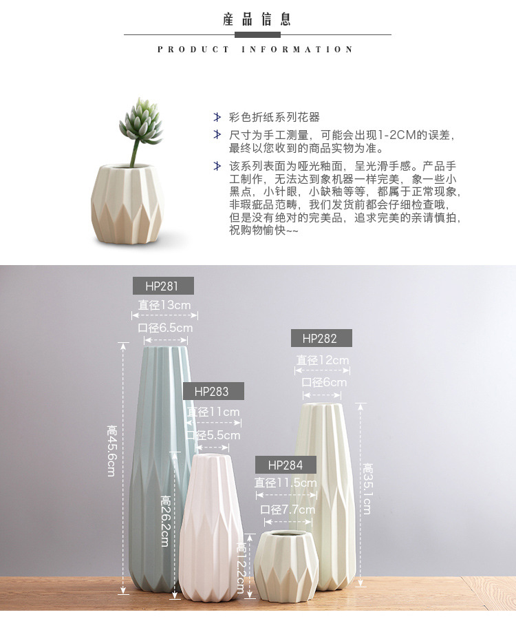Geométrico Origami colorido florero de cerámica creativa salón flor Nordic ins decoración del hogar al por mayor