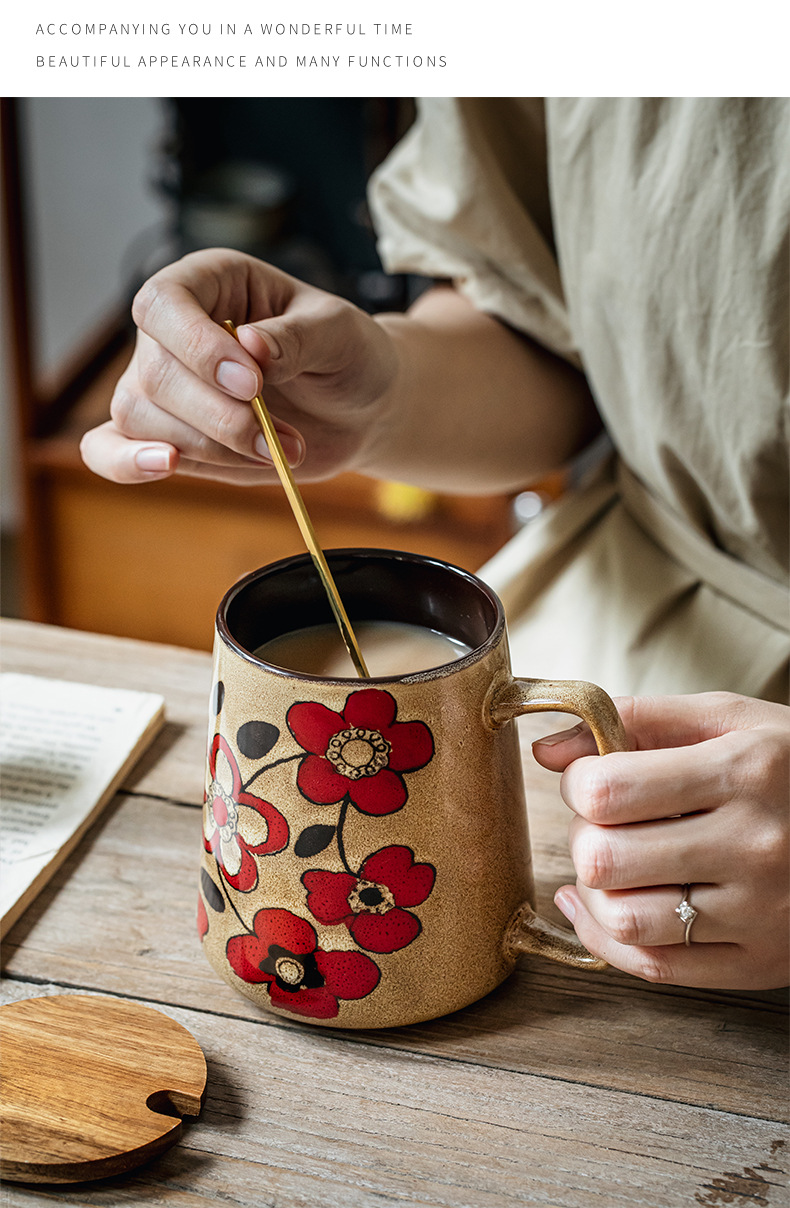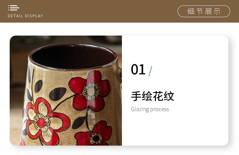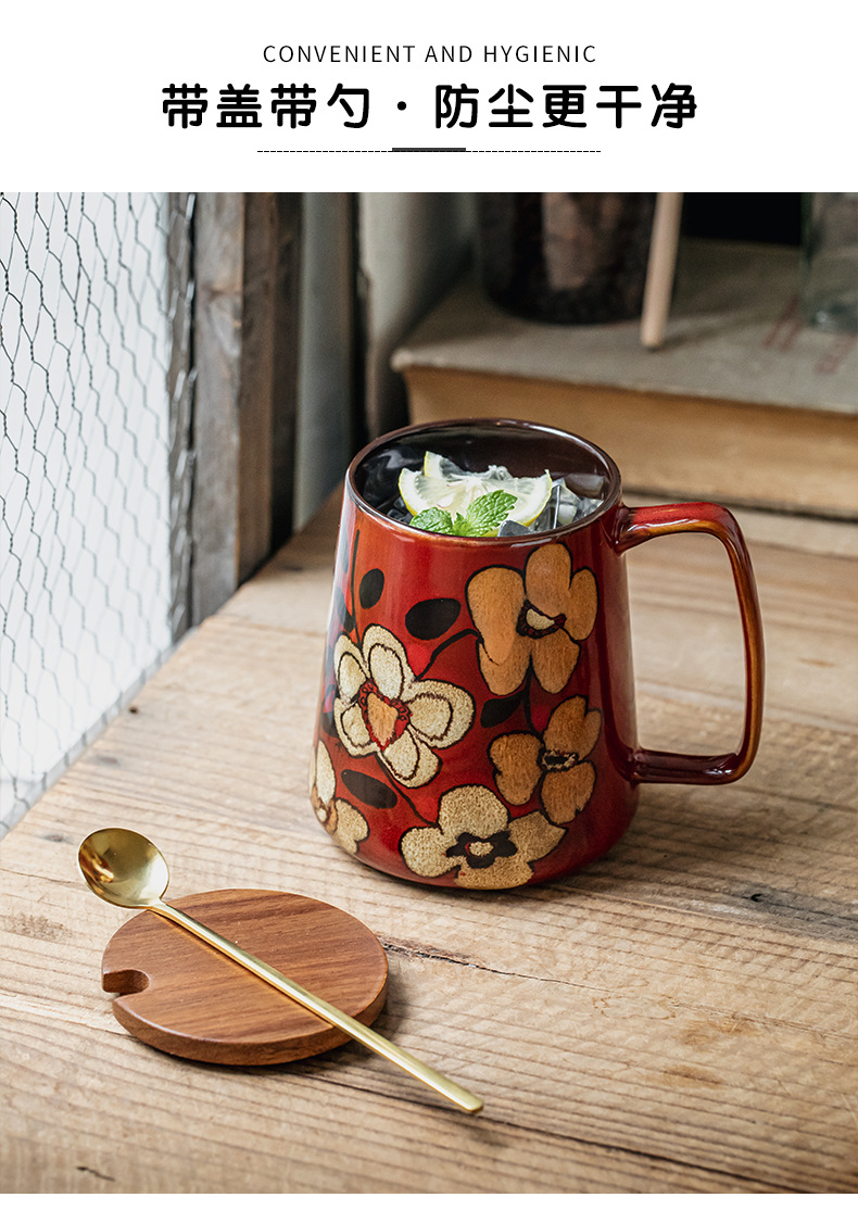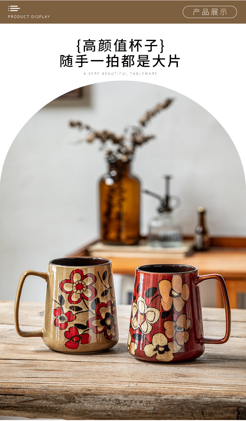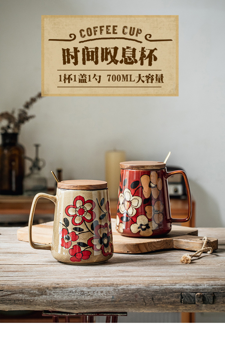 Exportación transfronteriza de diseño propio de 700ml taza de oficina china pintada a mano taza de cerámica