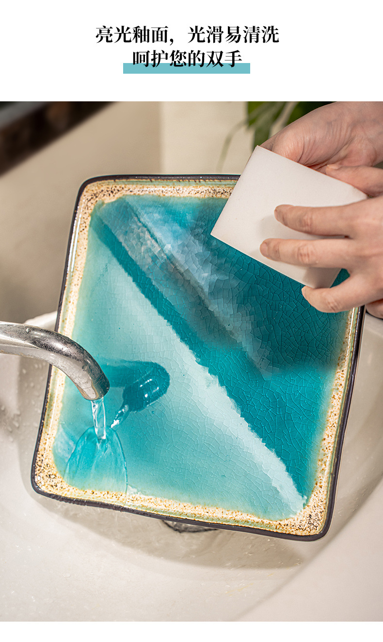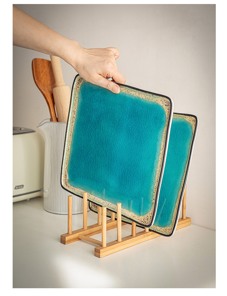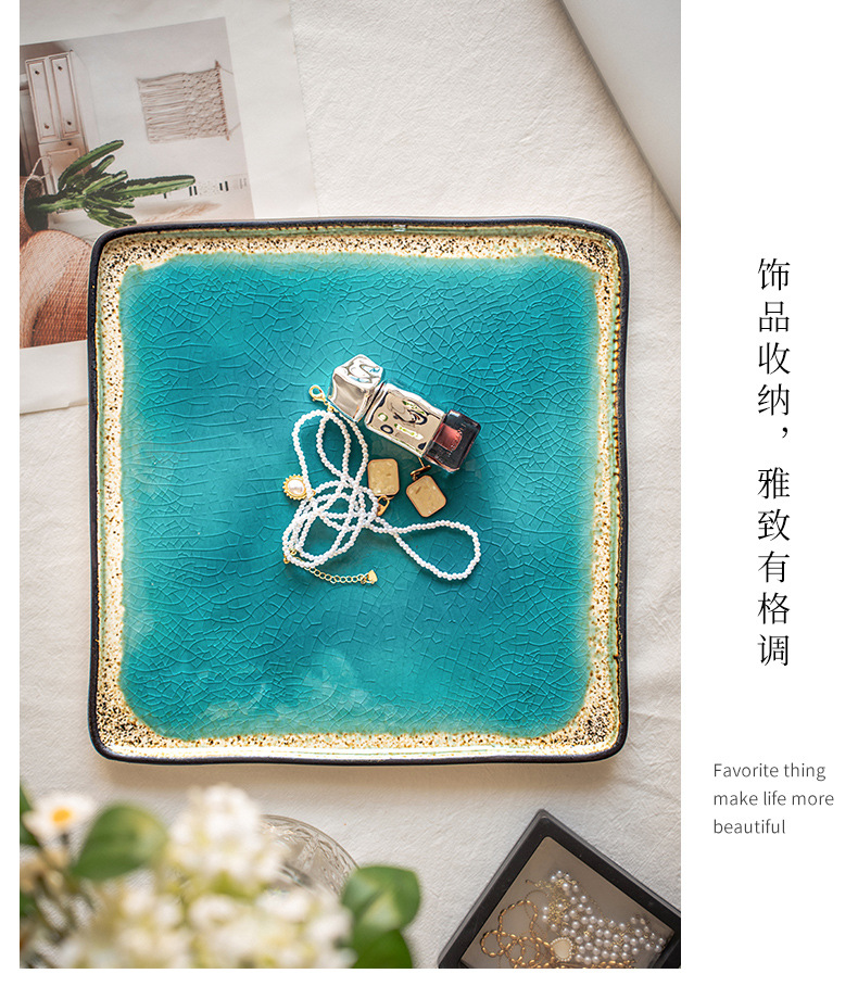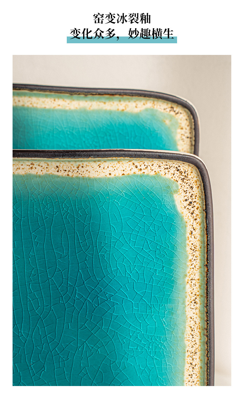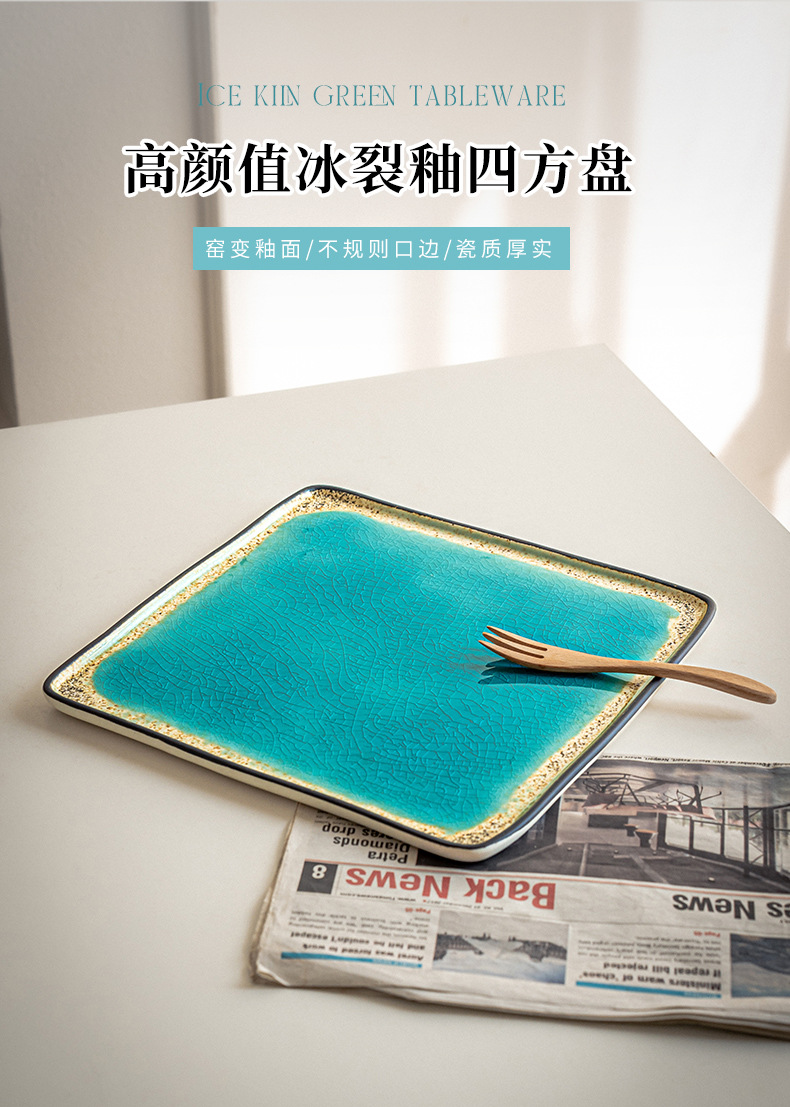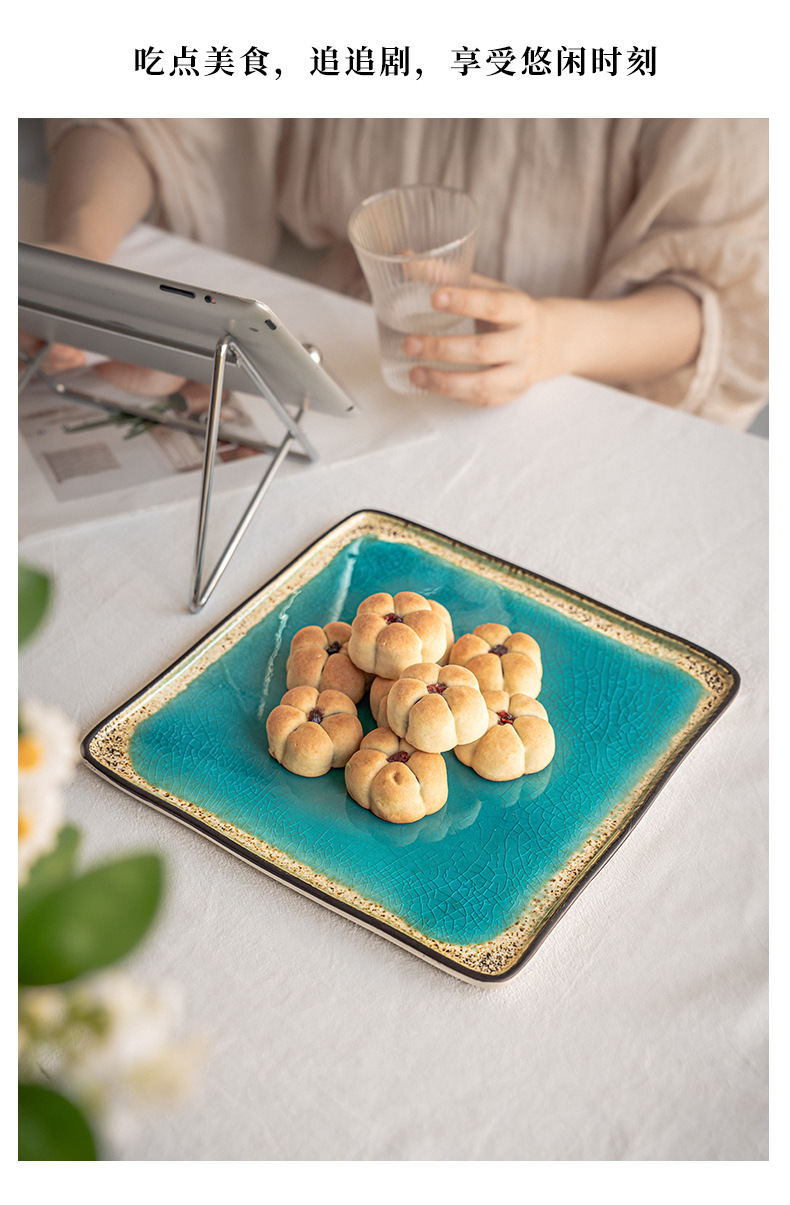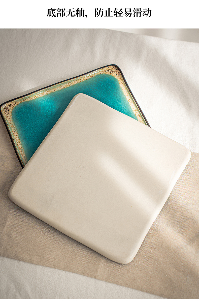 Plato azul marino de alto valor, plato cuadrado de cerámica, plato de platos caseros, plato de filete, exportación transfronteriza de cubiertos esmaltados por hielo