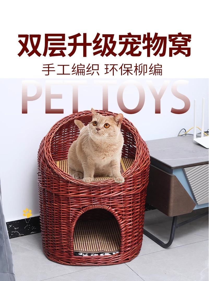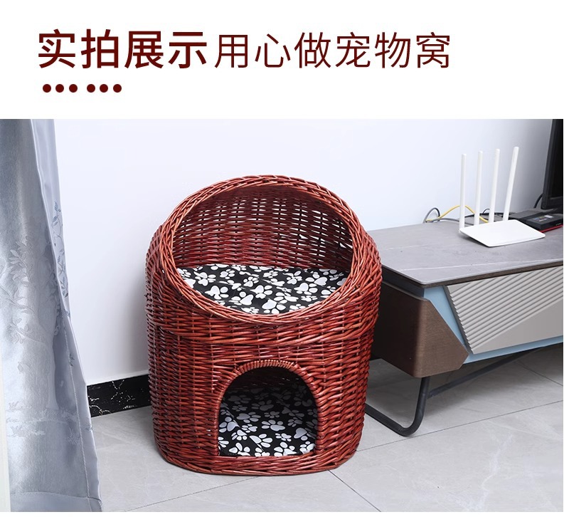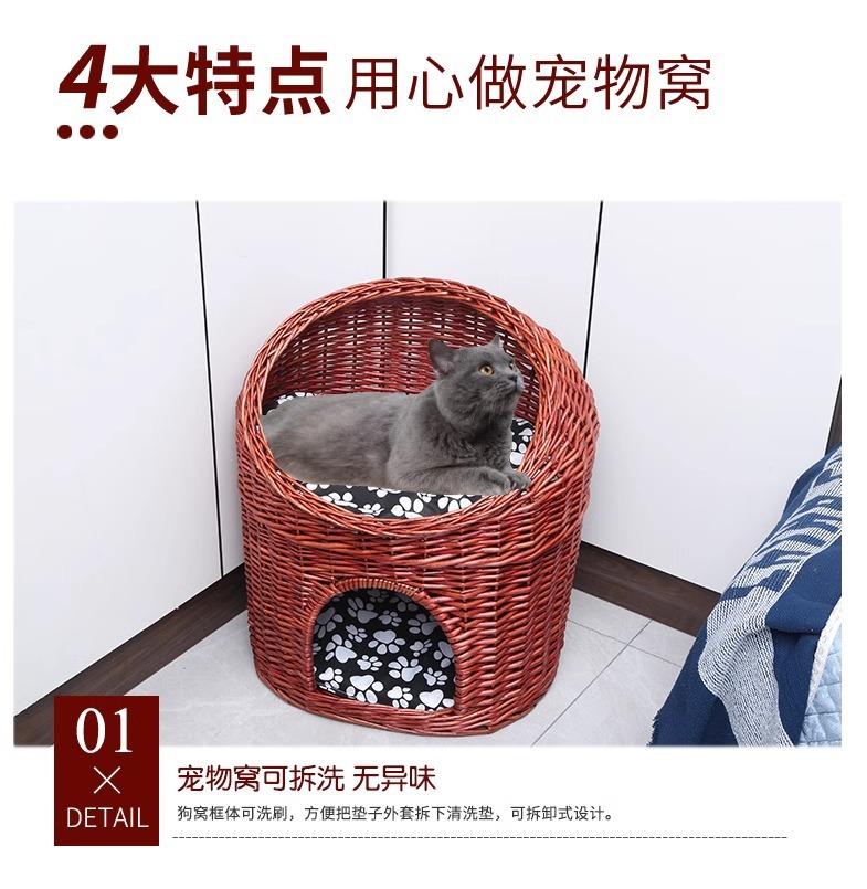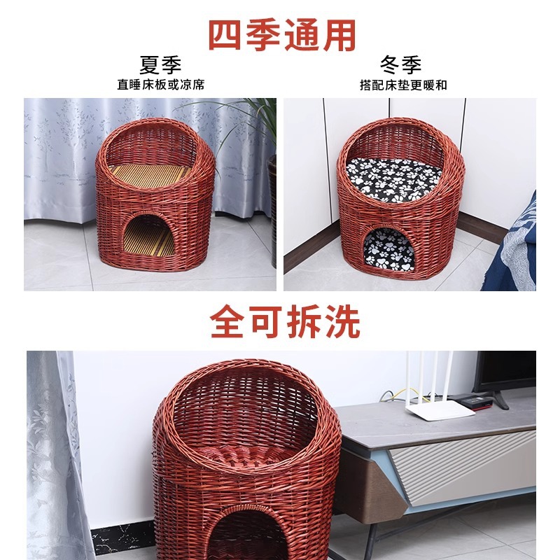 Casa de ratas tejida felina de sauce cuatro estaciones generales de verano desmontable felina perros pequeños y medianos Teddy tejido felina de mascotas