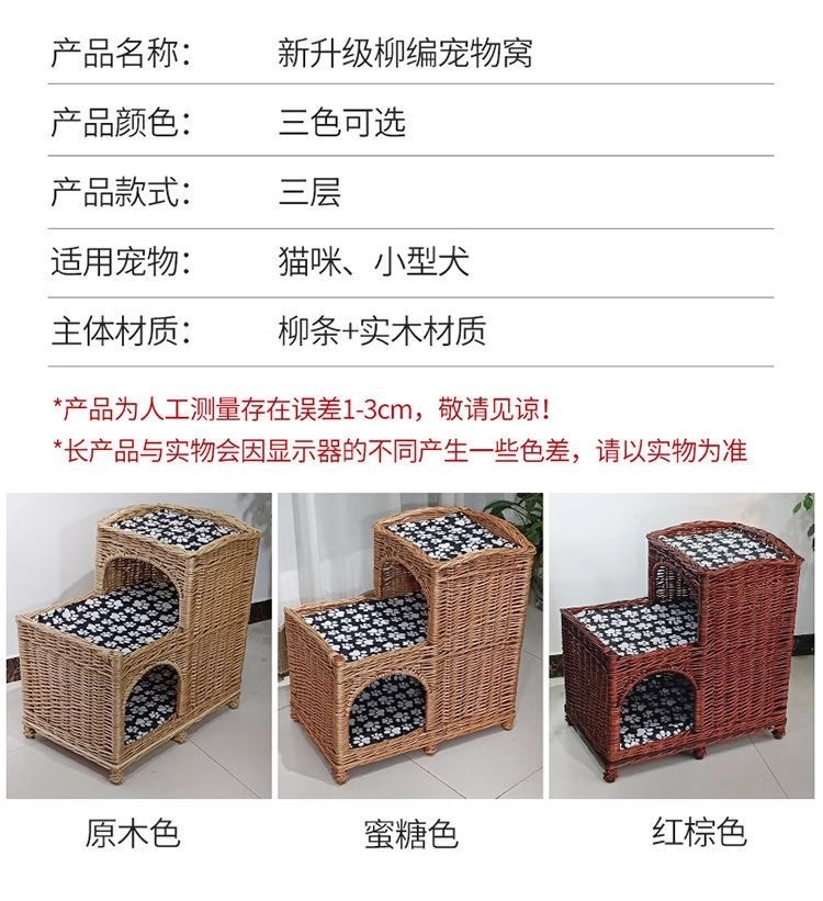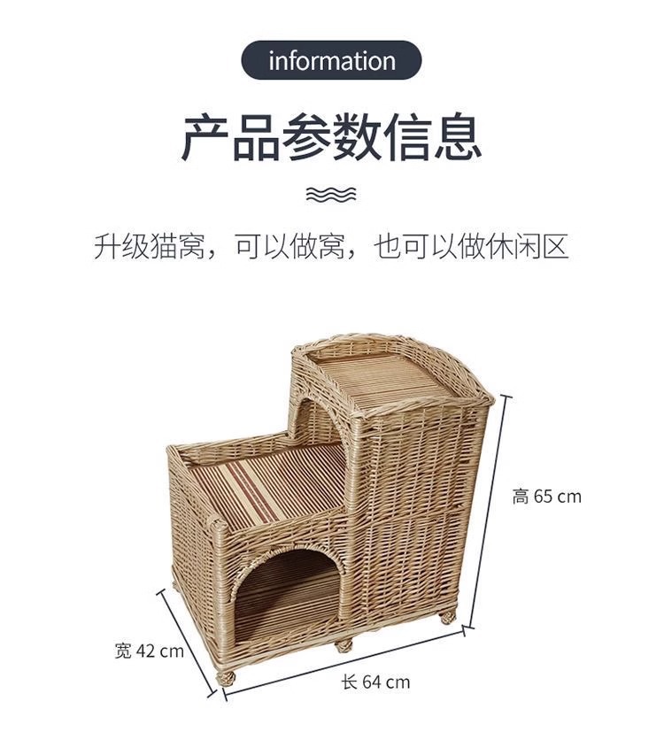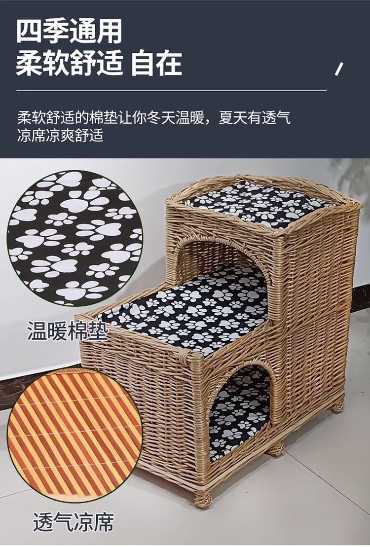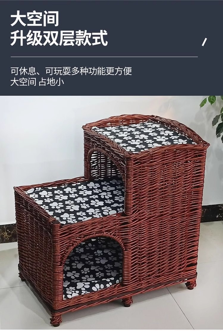 Casa de verano universal de cuatro estaciones de ratana trapezoidal tejida felina de cachorro tejida de sauce de doble capa desmontable y lavable para mascotas