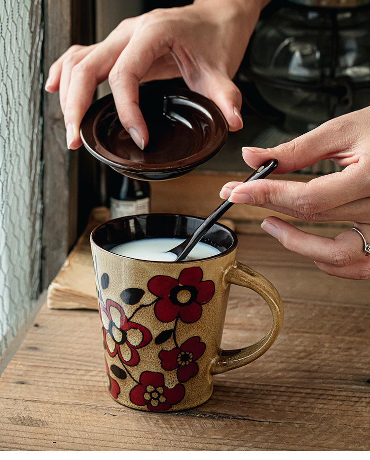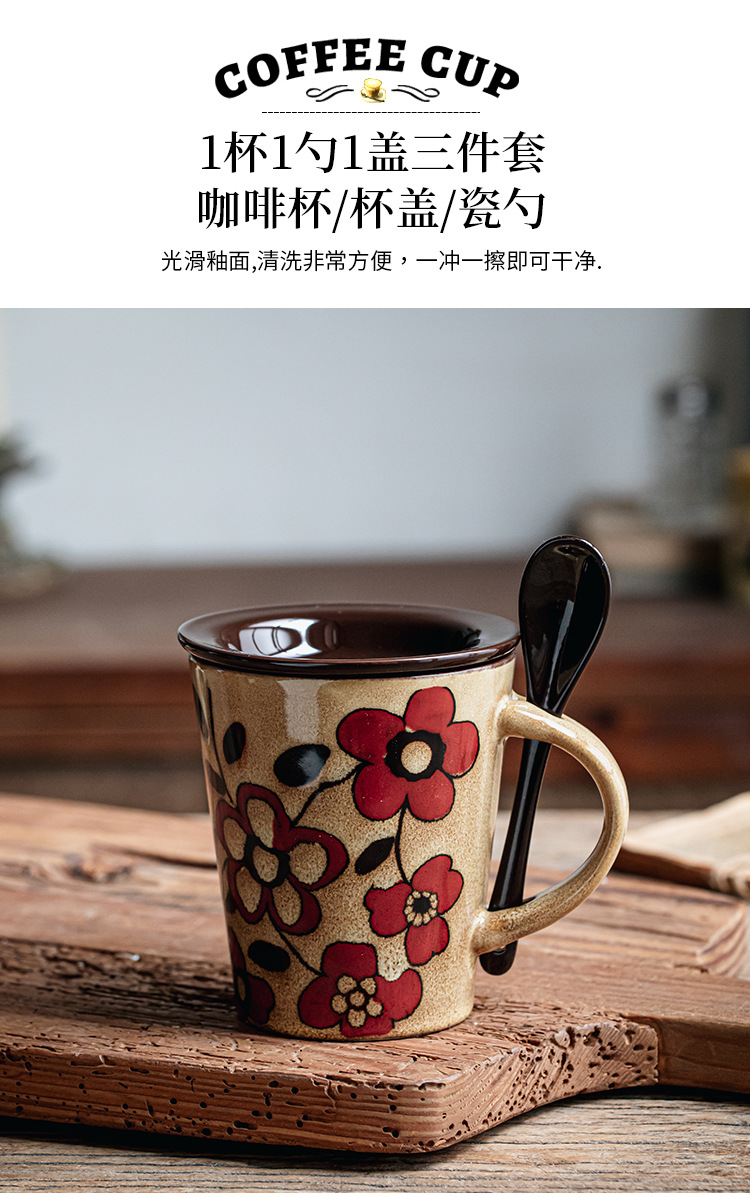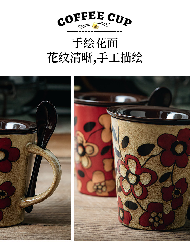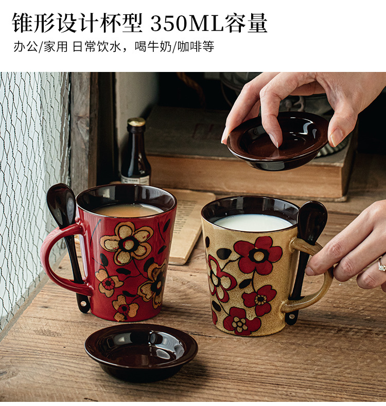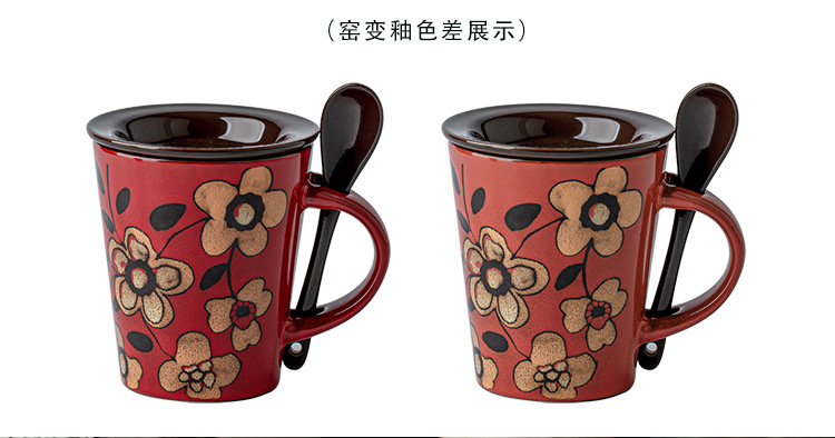 Taza de café de diseño original pintada a mano estilo nacional taza de cerámica con cuchara de tapa taza roja de alto valor de cara regalo de cumpleaños