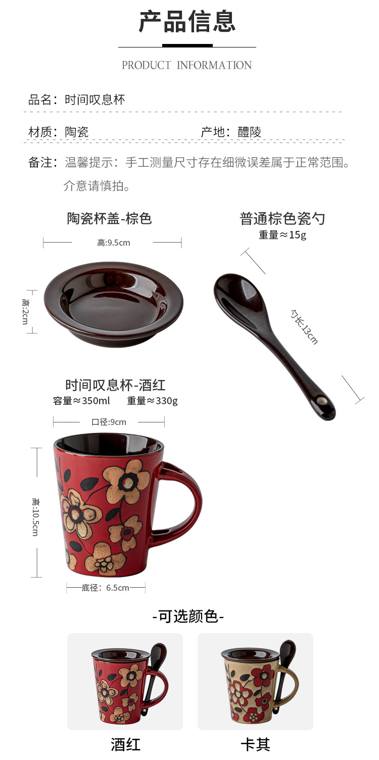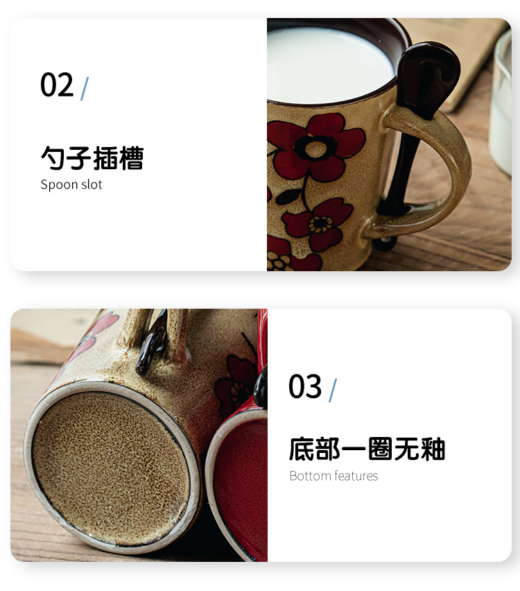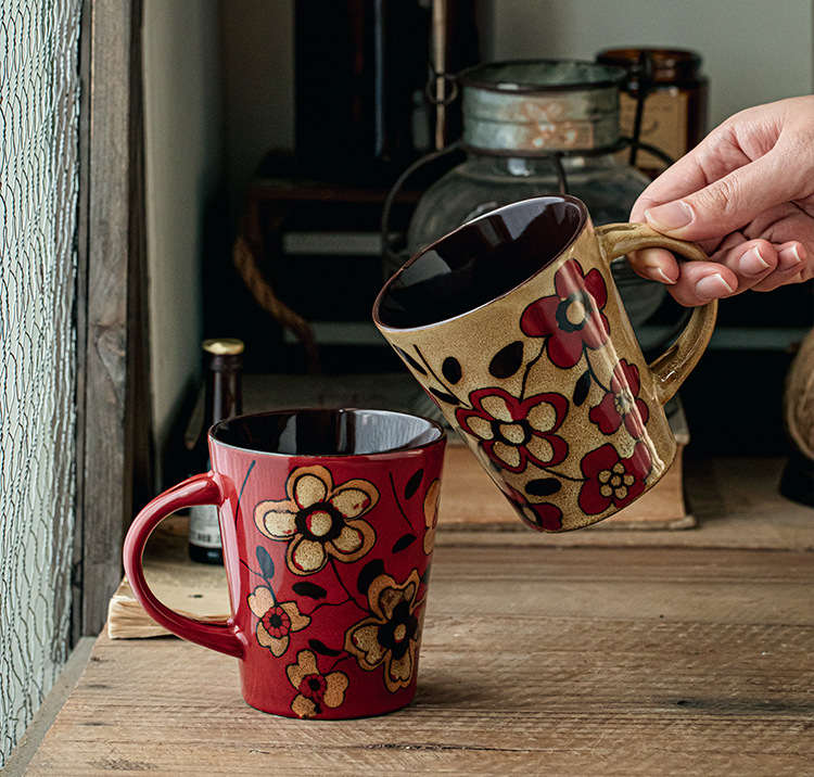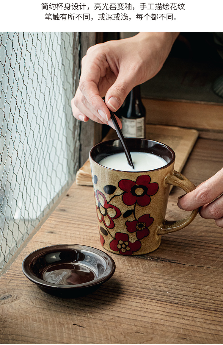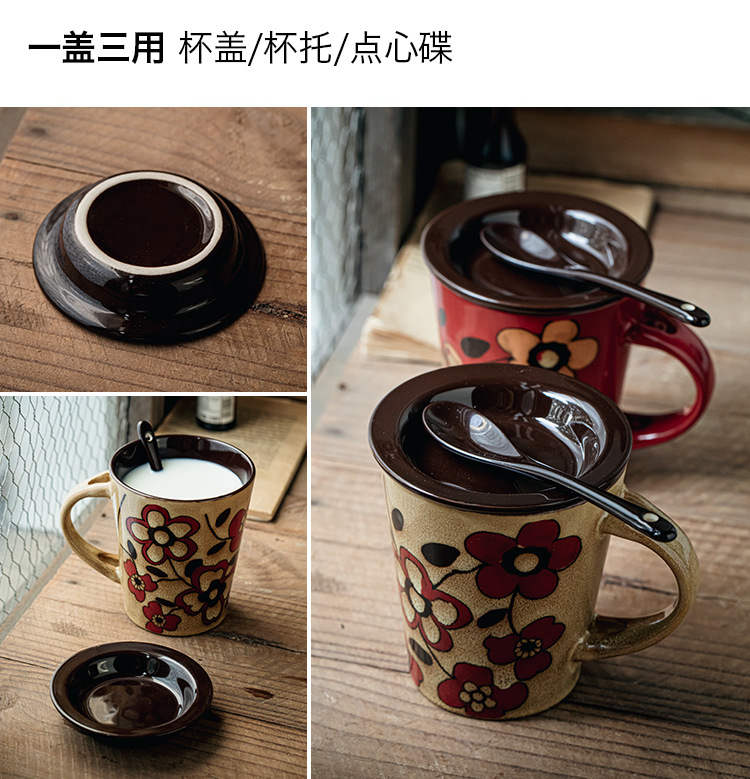 Taza de café de diseño original pintada a mano estilo nacional taza de cerámica con cuchara de tapa taza roja de alto valor de cara regalo de cumpleaños