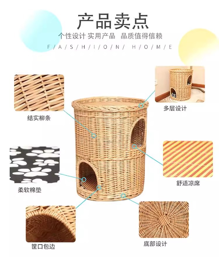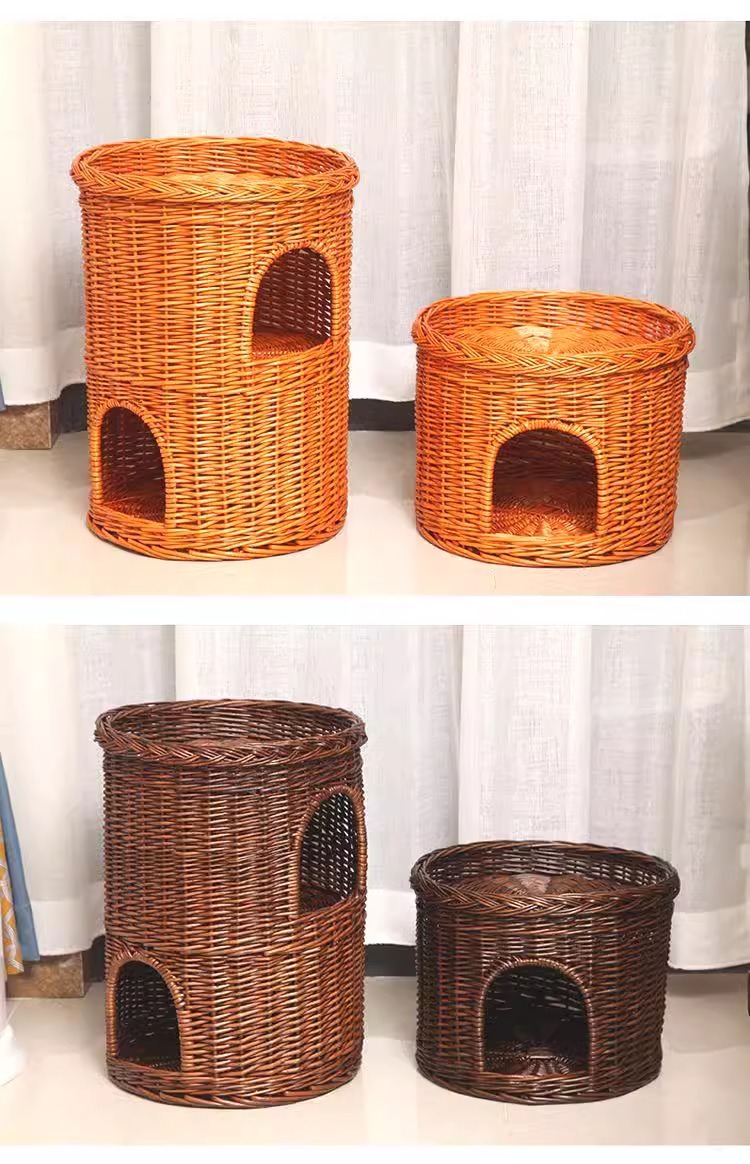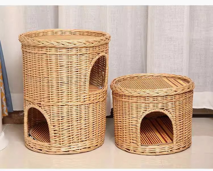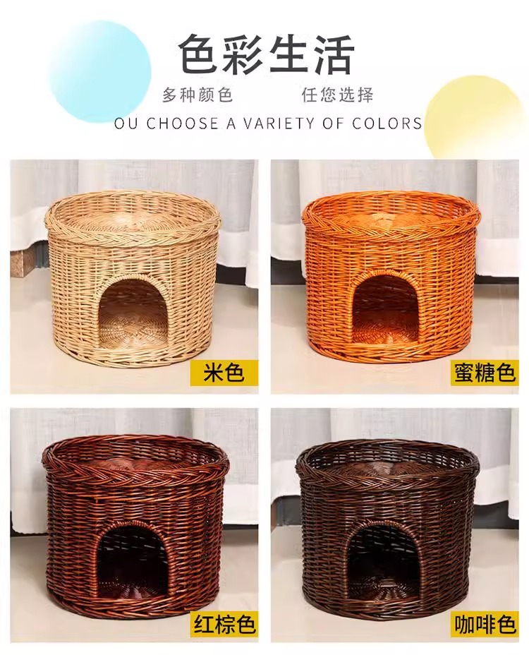 Nido de gato de caña caliente felino de cuatro estaciones desmontable general casa de gato villa pequeña perro de casa de gato felino de sauce estera
