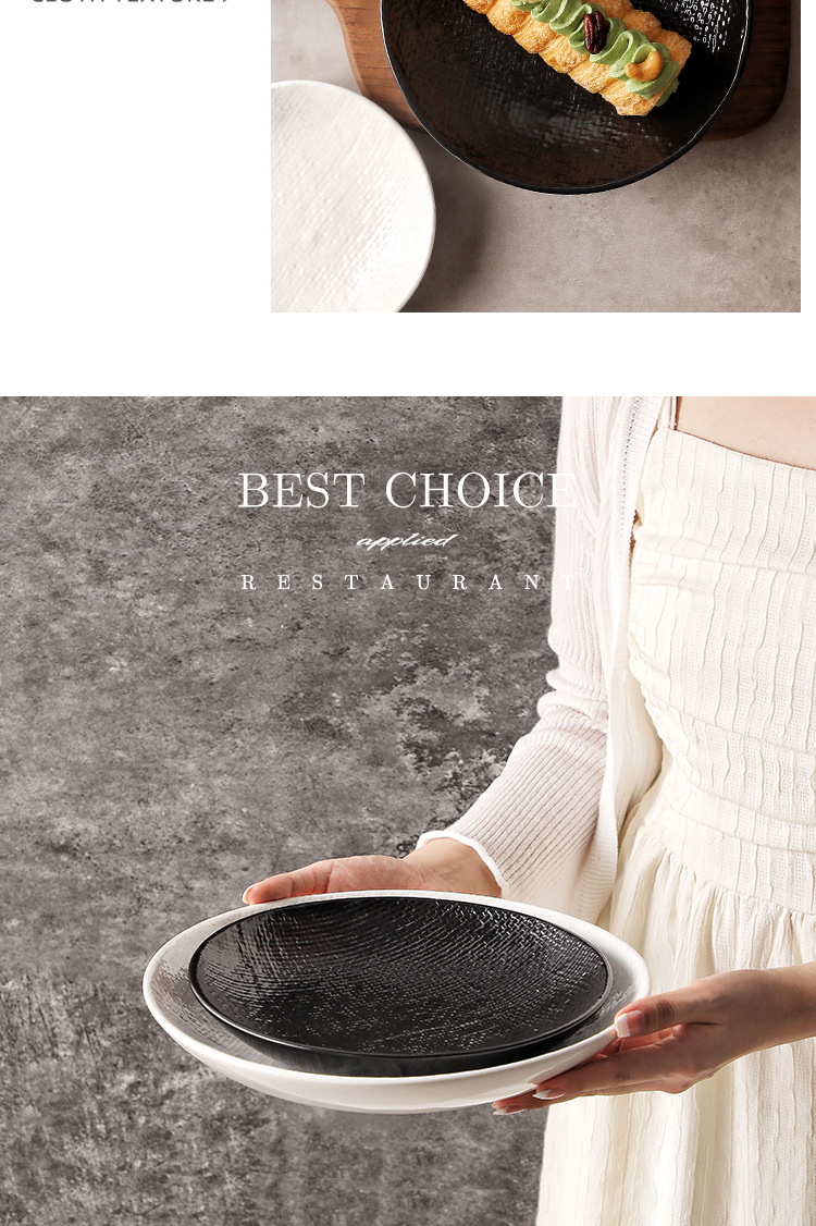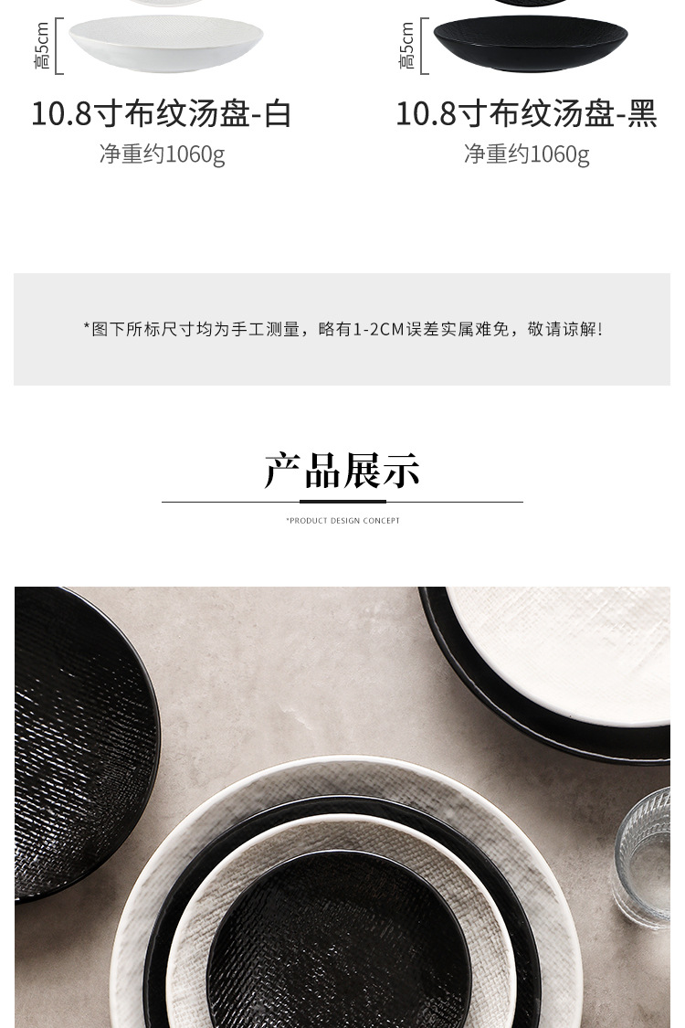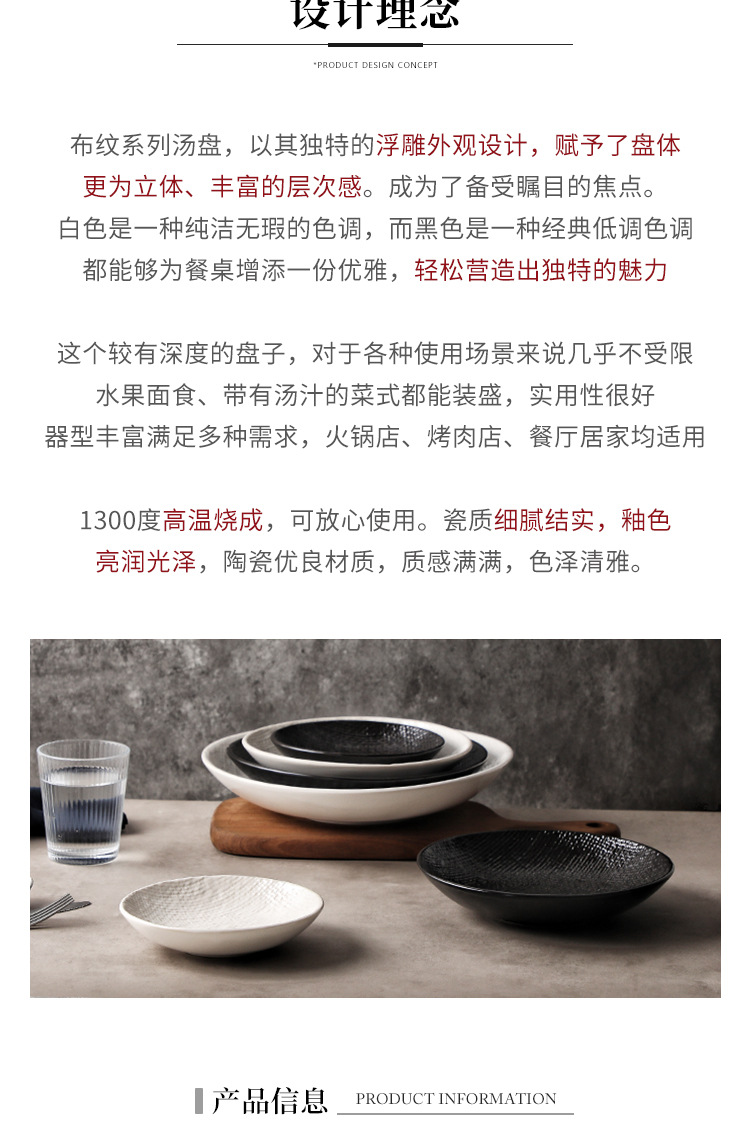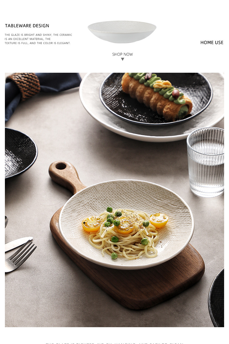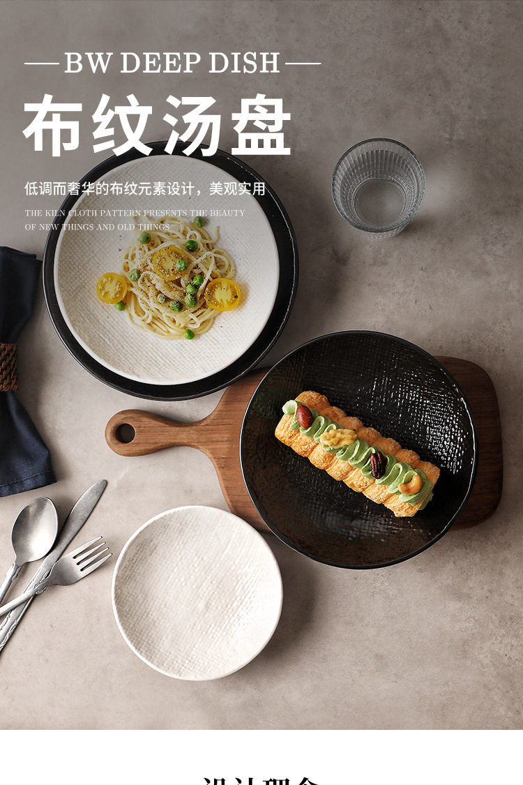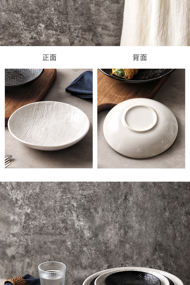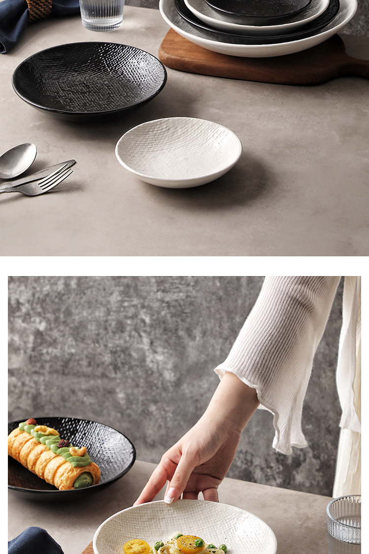 Plato profundo redondo en relieve de tela, plato de ensalada, plato de sopa occidental, plato de frutas retrógradas caseras, plato de platos de alto valor facial