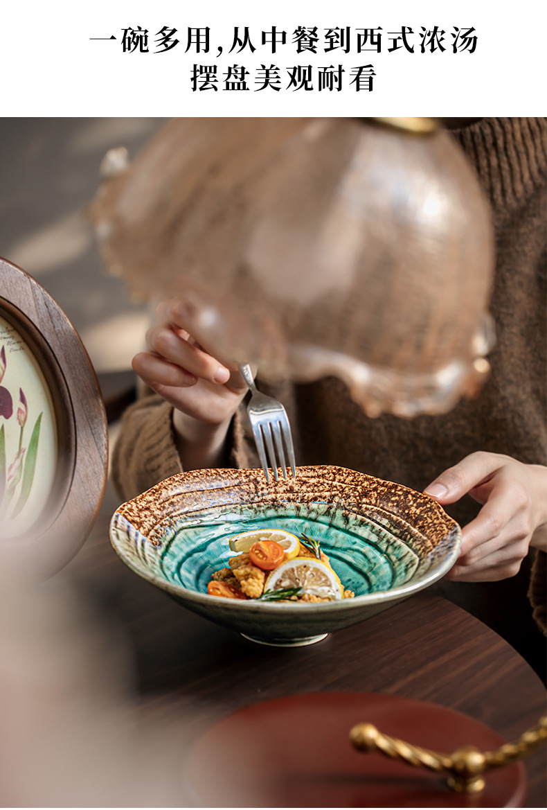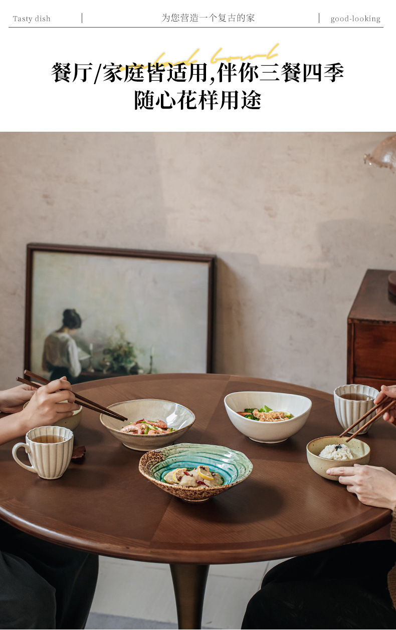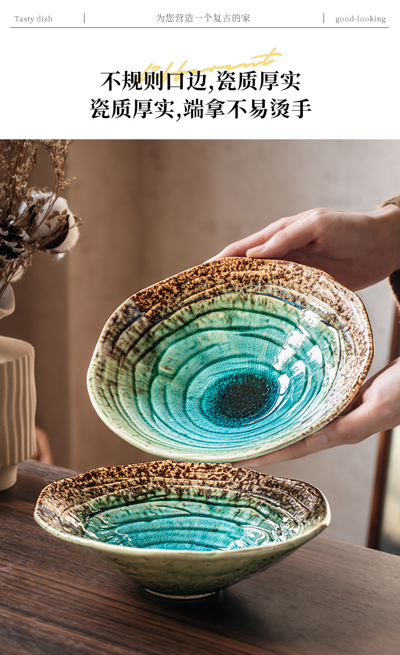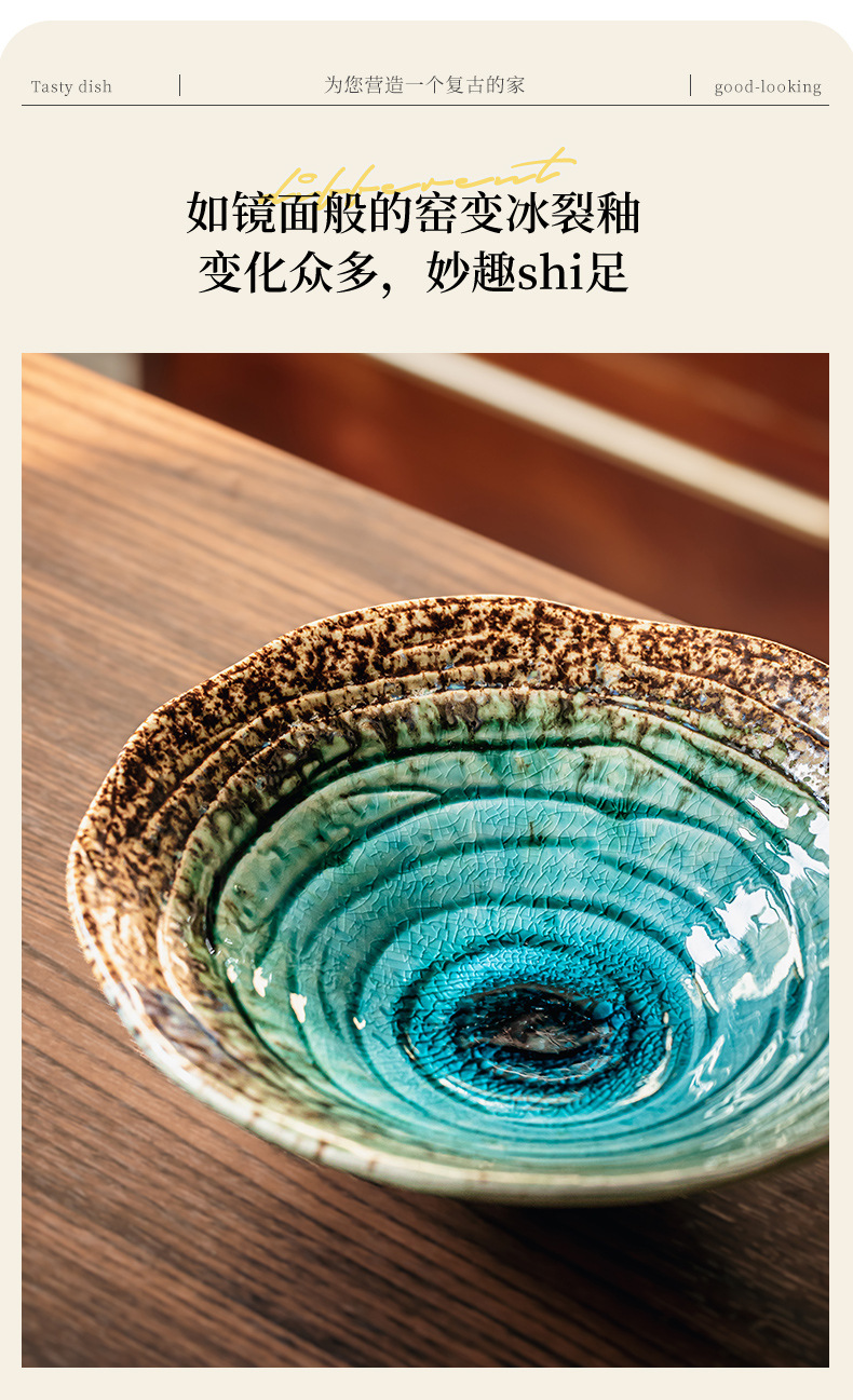 Bonito hielo agrietado nuevo tazón de 8 pulgadas de arroz azul de cerámica tazón de ensalada tazón de fideos exportación transfronteriza